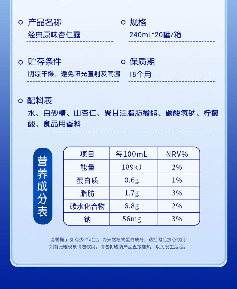 露露杏仁露经典款240ml*20罐植物蛋白饮料健康饮料年货送礼【送礼袋】