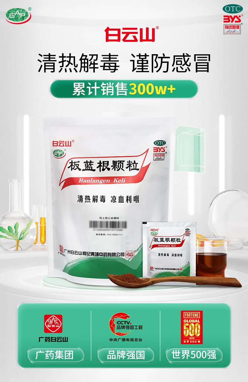 白云山 板蓝根颗粒10g*20袋 感冒药 感冒咳嗽 抗病毒用药 清热解毒 急性扁桃体炎 咽喉肿痛 凉血利咽