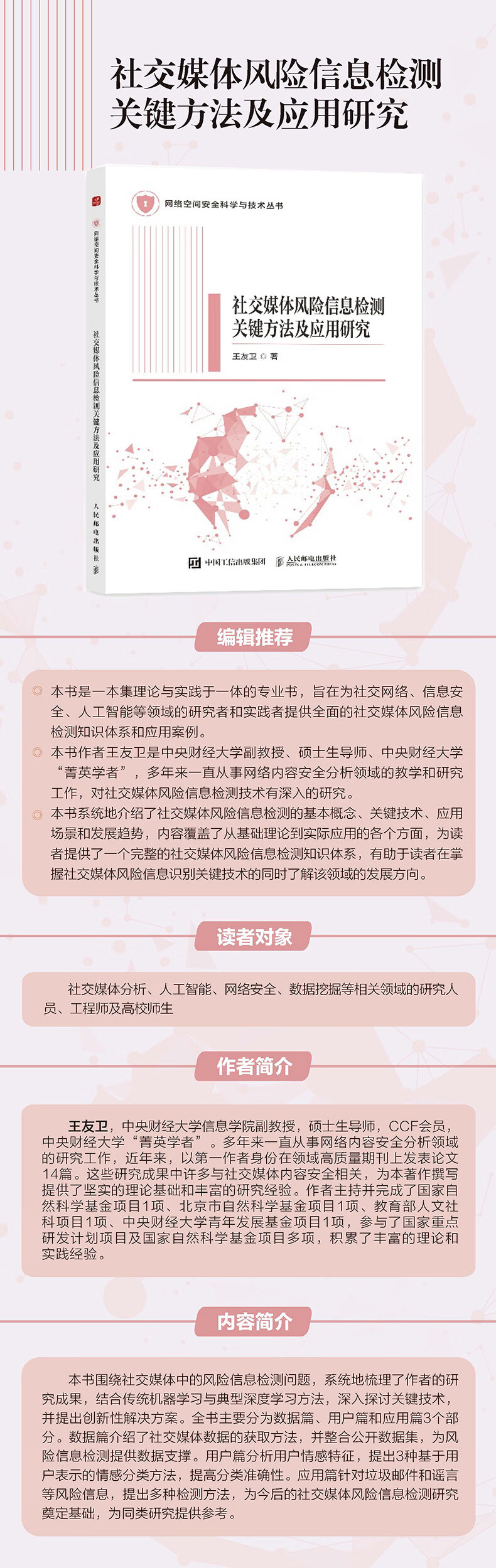 社交媒体风险信息检测关键方法及应用研究王友卫网络与通信人民邮电出版社新华书店正版