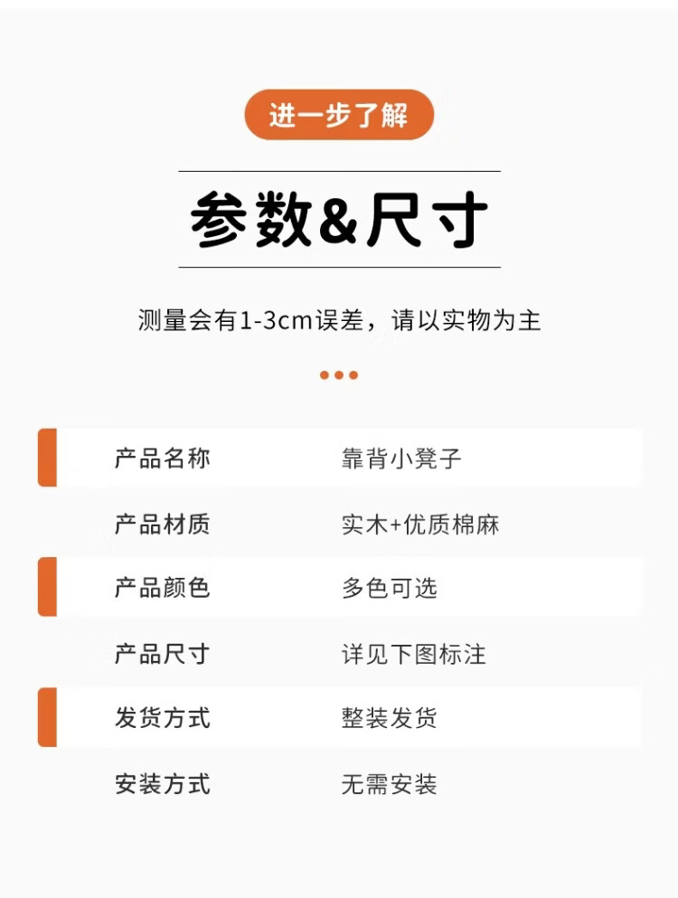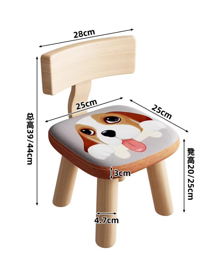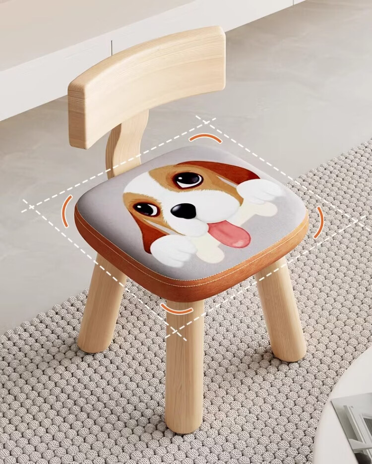 尔思家小凳子家用矮凳子儿童靠背椅加厚结实方凳实木小型板凳软包高级感 44cm高-藏青色-可拆洗设计