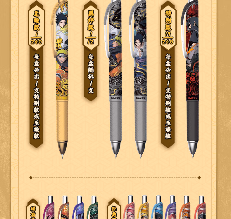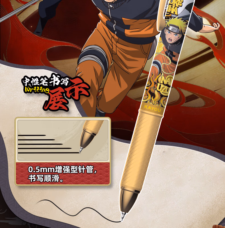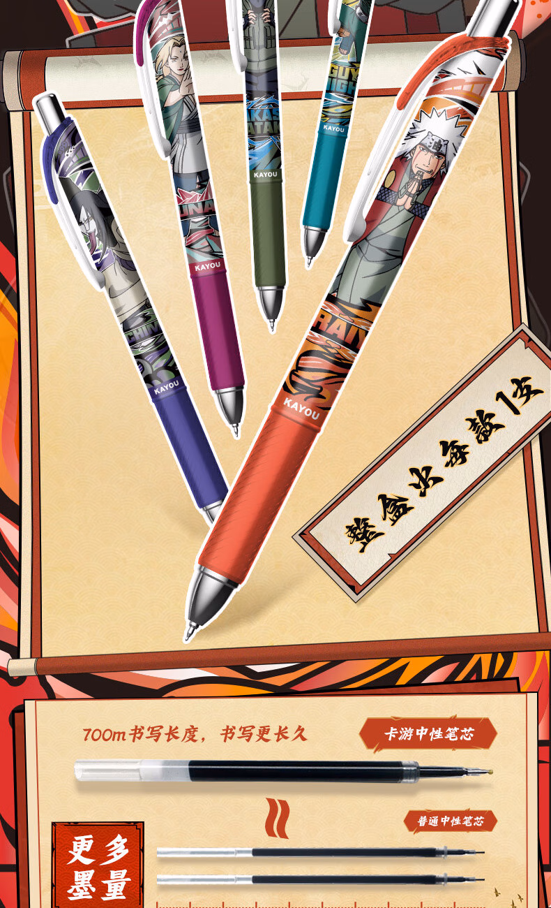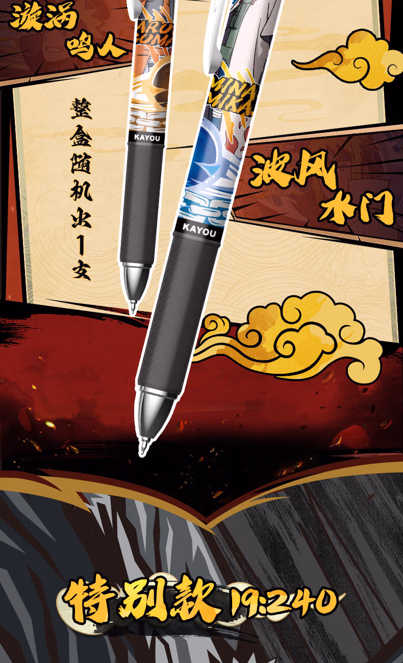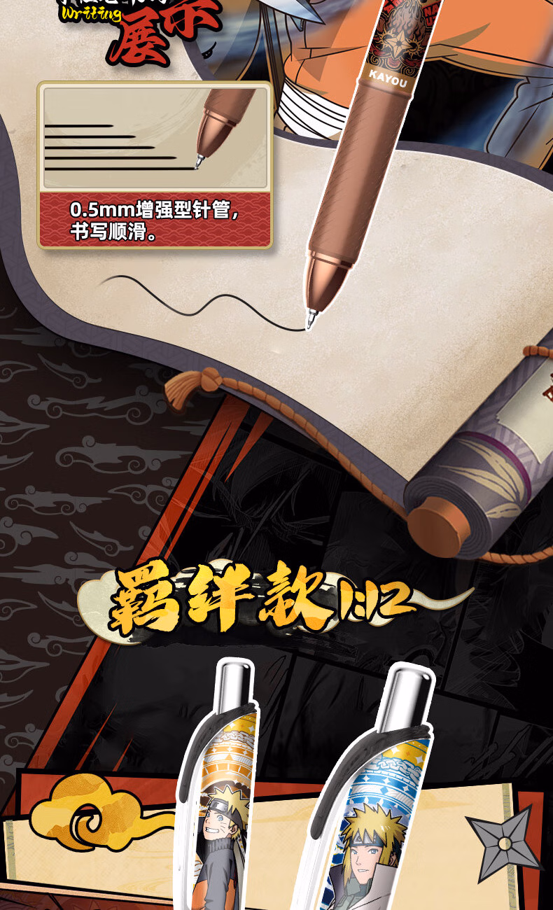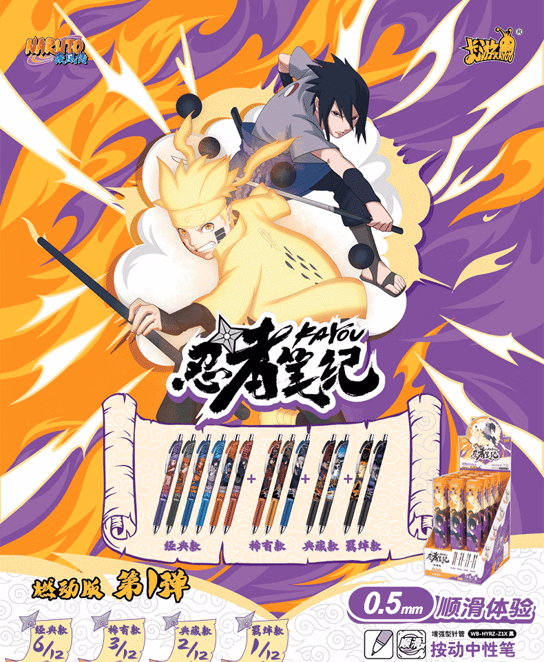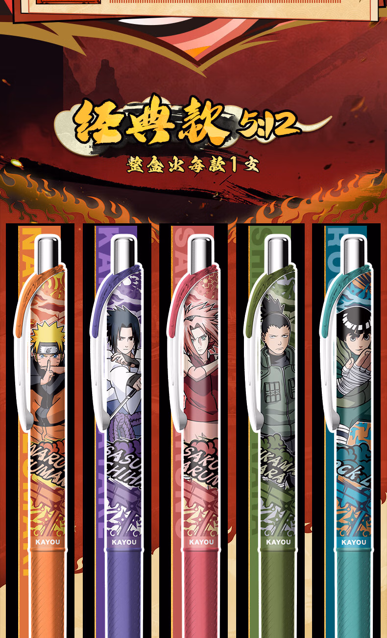 卡游火影忍者中性笔第5弹盲盒笔燃动版黑色按动笔签字笔新年礼物 火影忍道版【第1弹】整盒12支