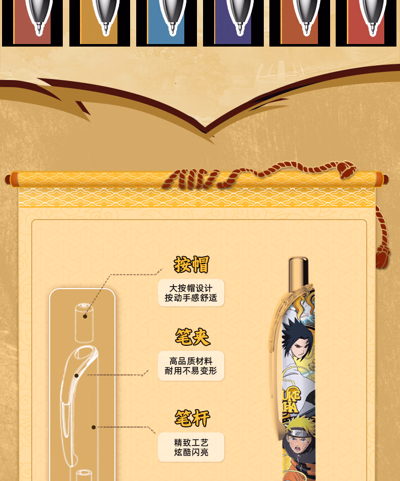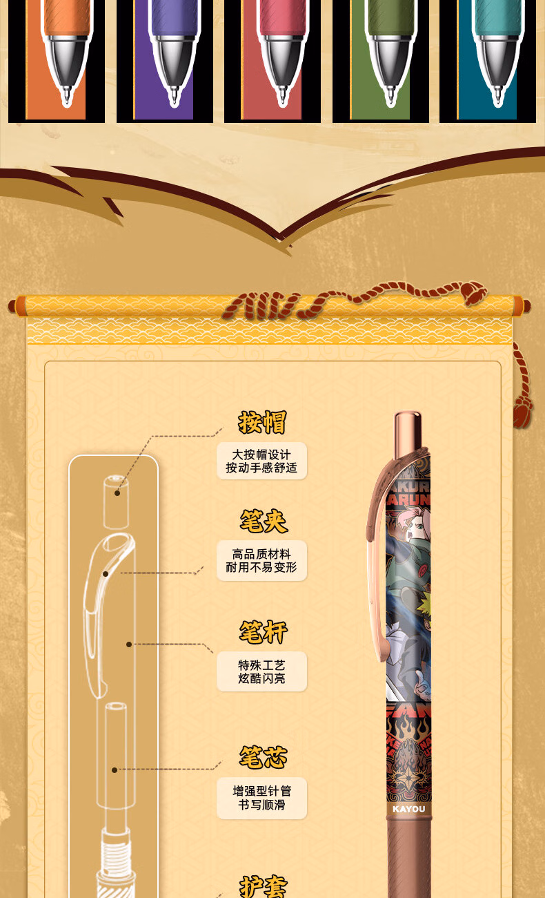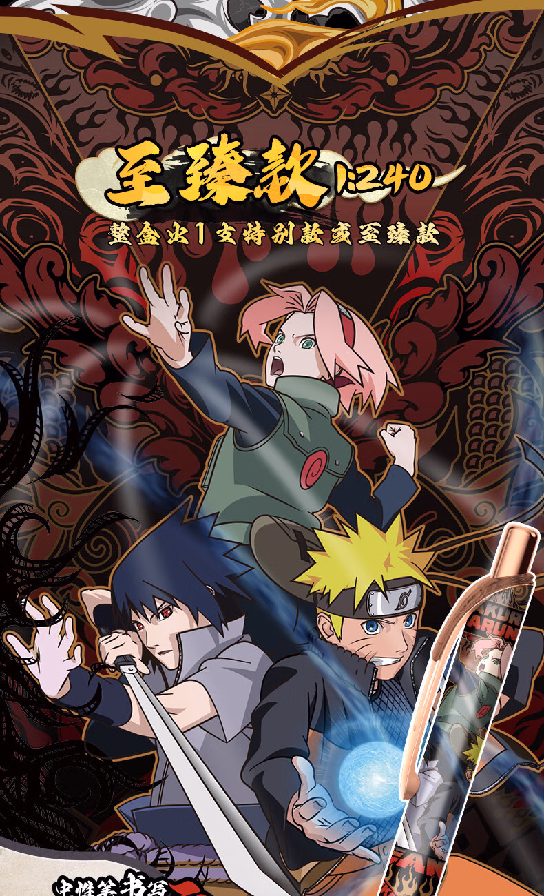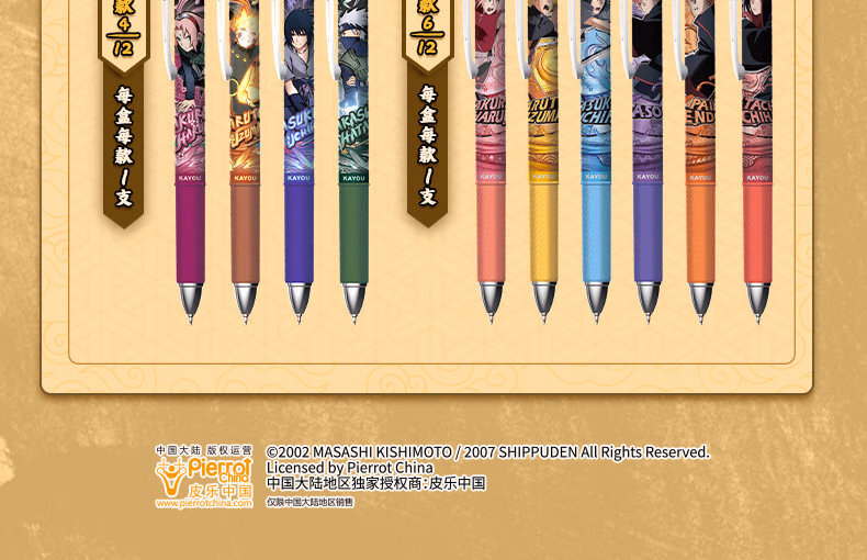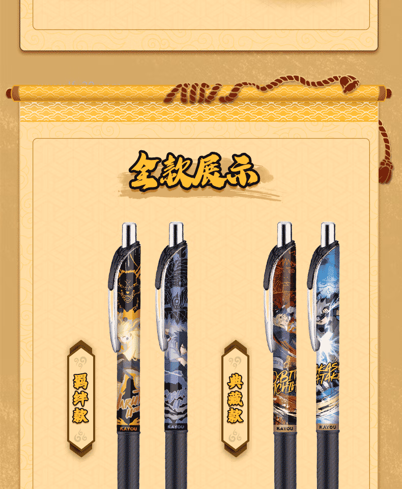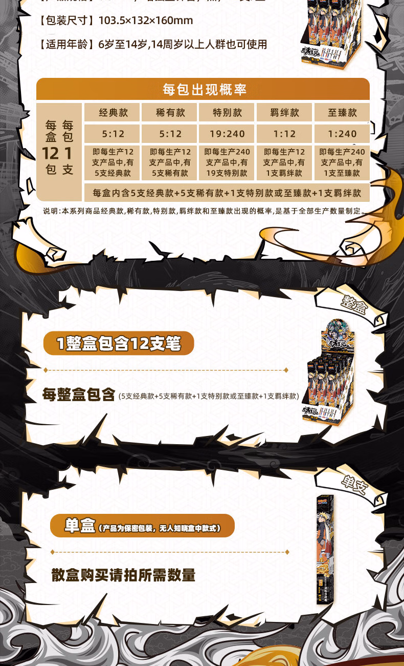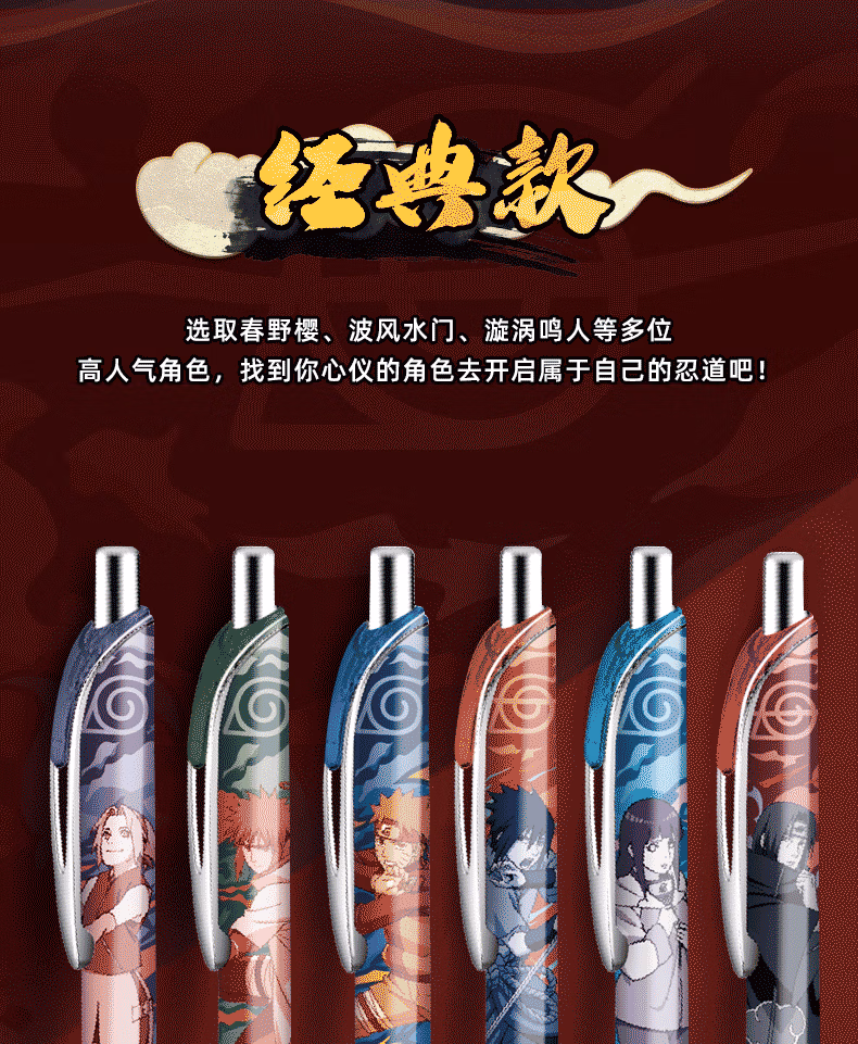 卡游火影忍者中性笔第5弹盲盒笔燃动版黑色按动笔签字笔新年礼物 火影忍道版【第1弹】整盒12支