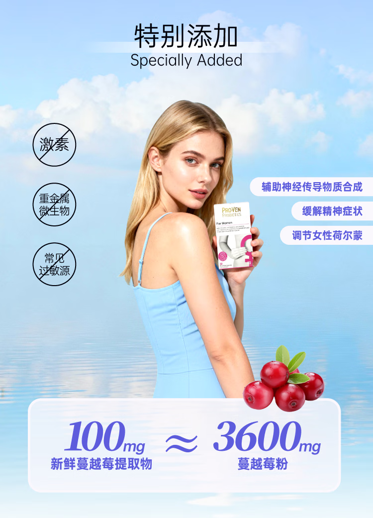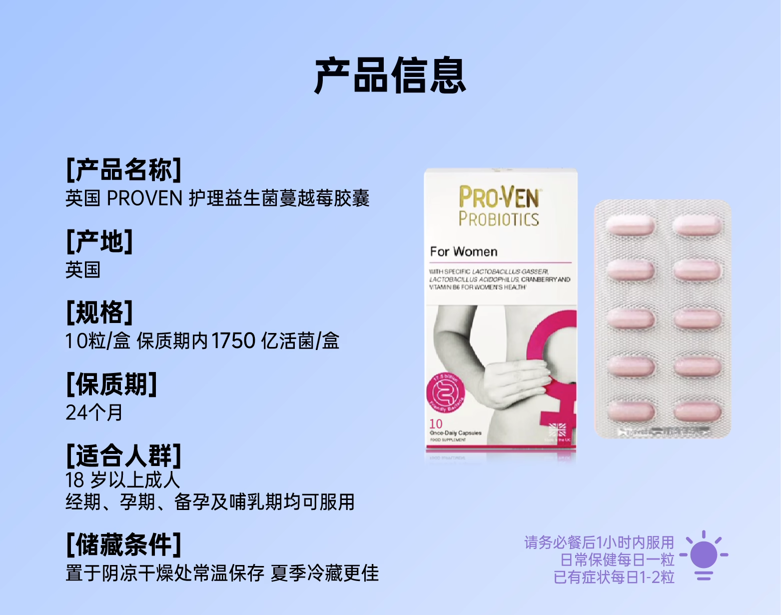 Pro-VenProVen蔓越莓女性益生菌口服胶囊乳酸杆菌 花园护理妇科健康 10粒 蔓越莓女性益生菌10粒/盒
