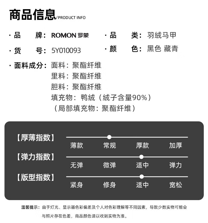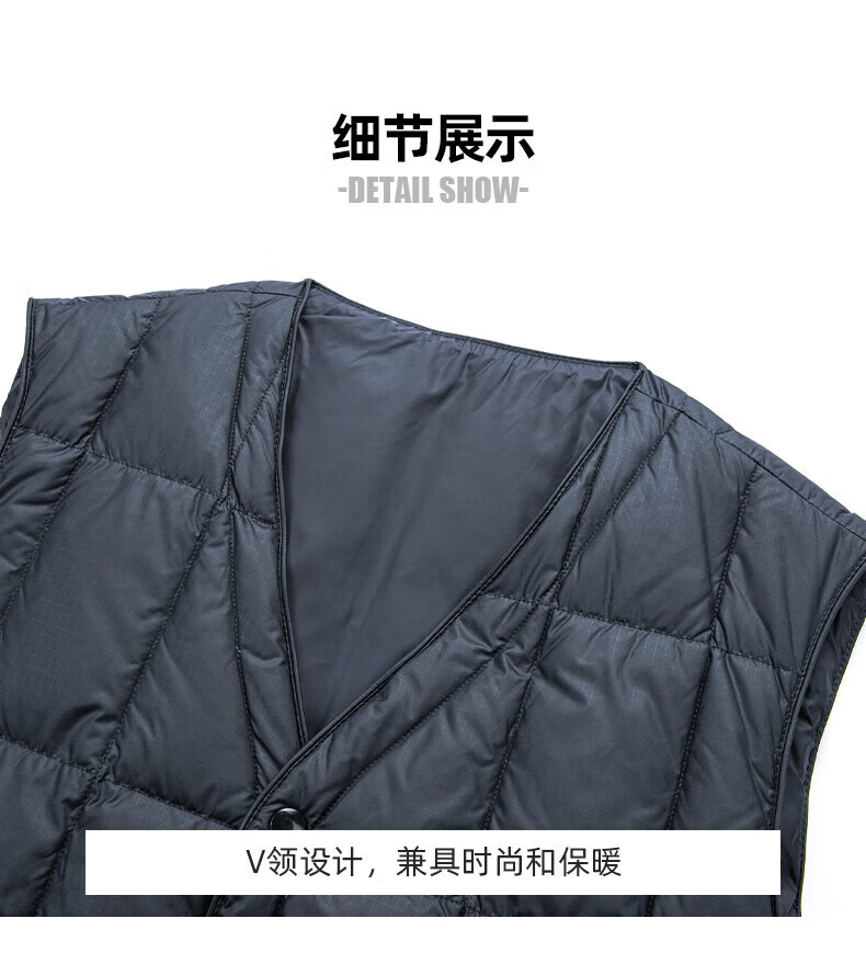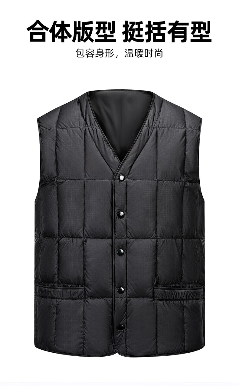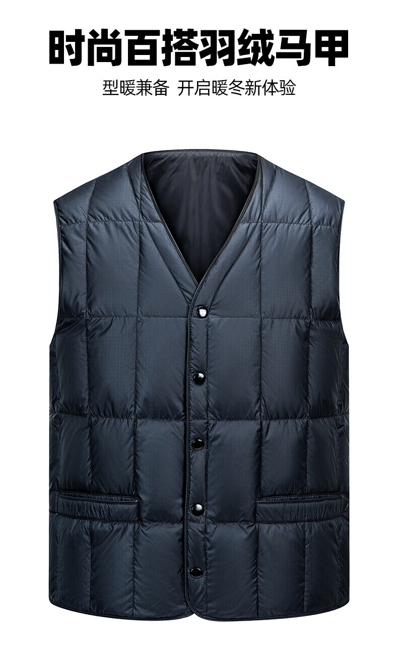 罗蒙(ROMON)羽绒马甲男秋冬新款轻薄爸爸装羽绒内胆马甲无袖外套男 藏青色 L (175) 【建议120-140斤】