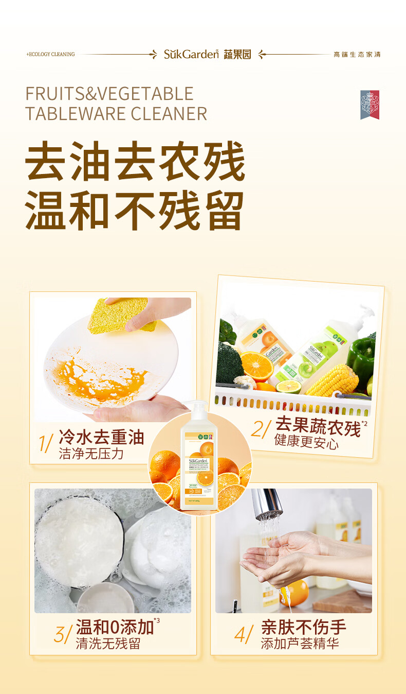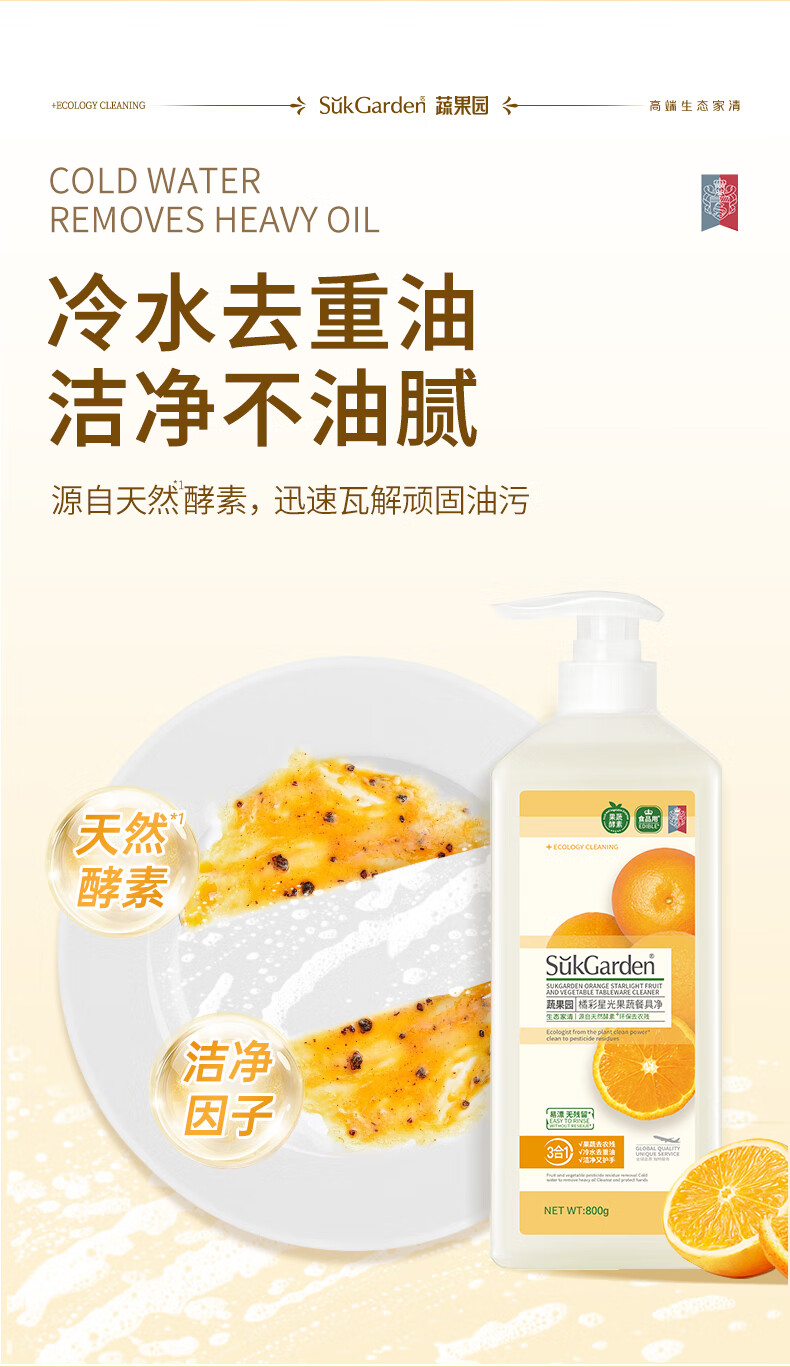 ZYUO【日本】果蔬食品级洗洁精洗碗液去油洗涤剂家用大桶不伤手洗涤灵 新升级橘皮酵素一瓶 800ML【体验装】