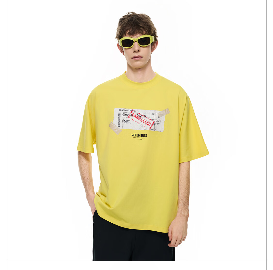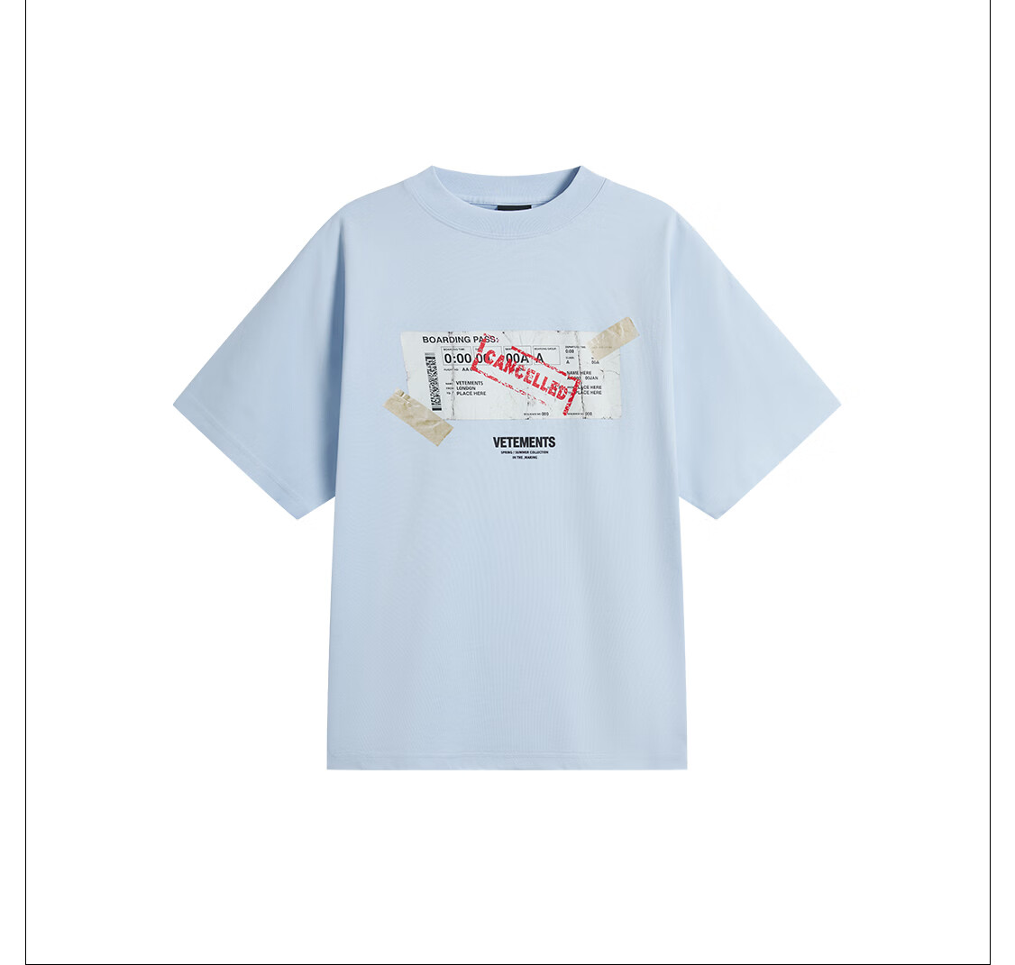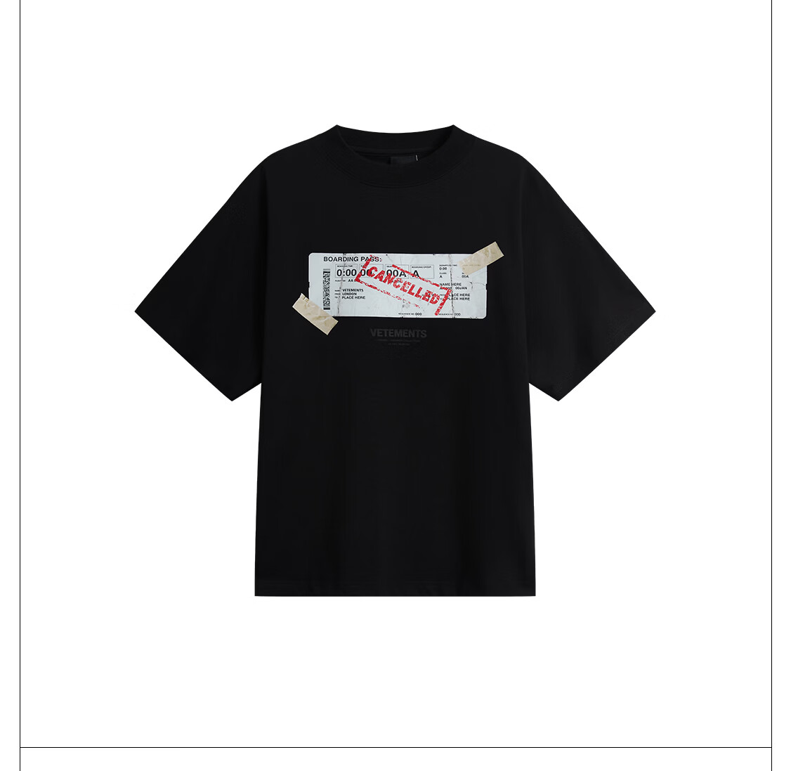 VETEMENTS未完成旅途 In The Making撕裂票根印花短袖t恤休闲轻奢高档半袖 黑色 XL