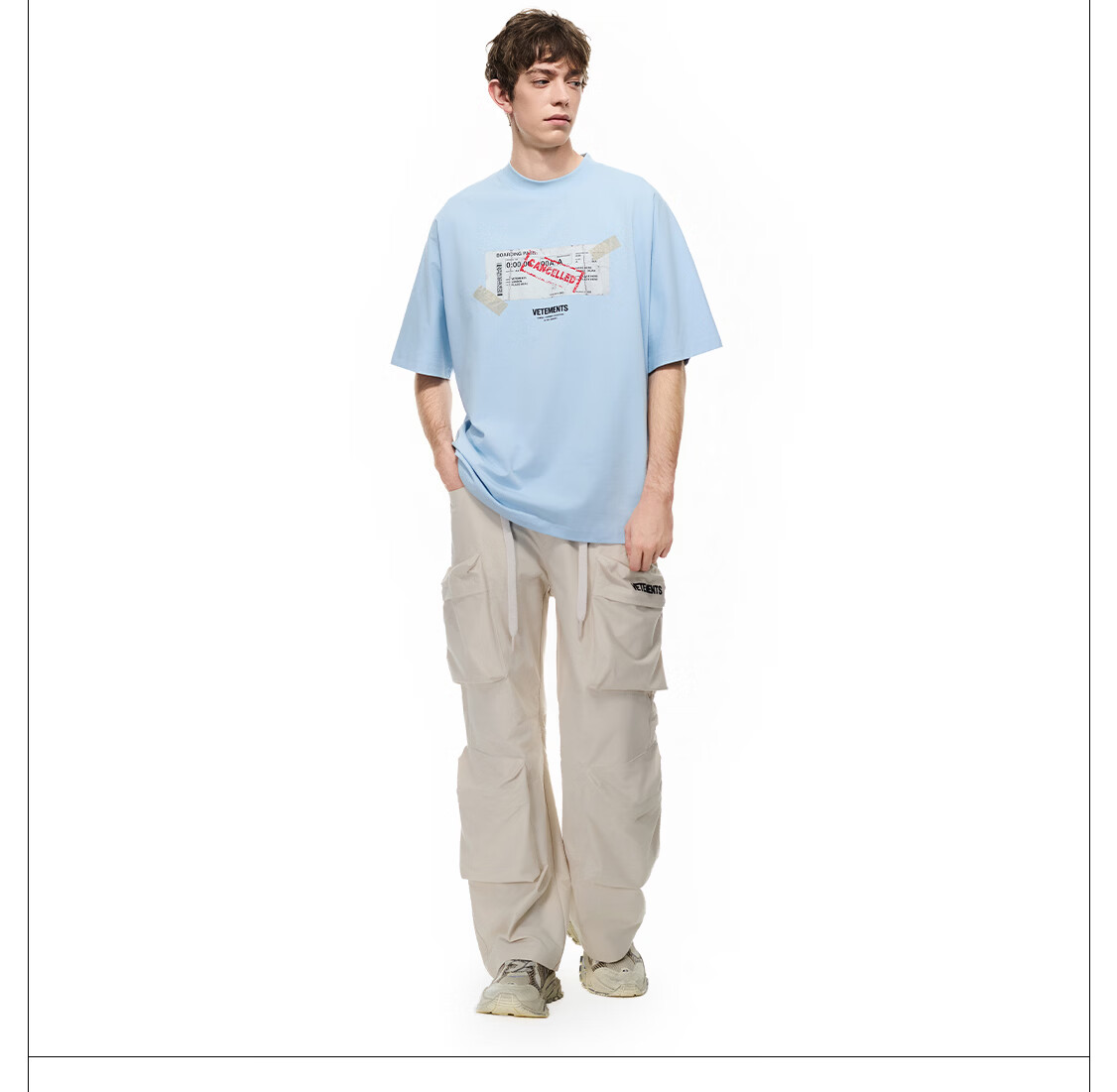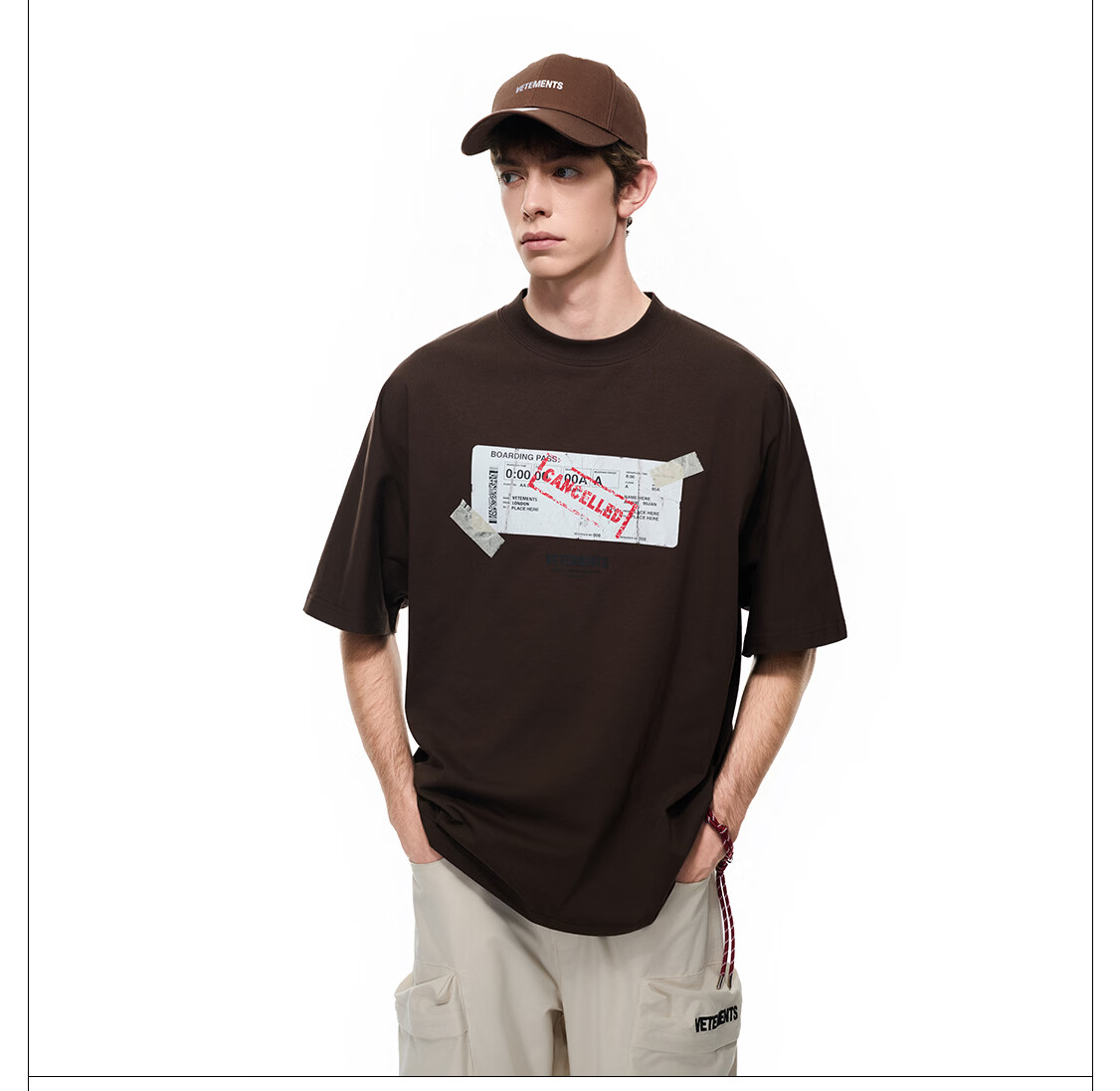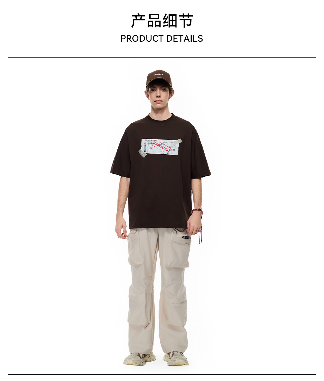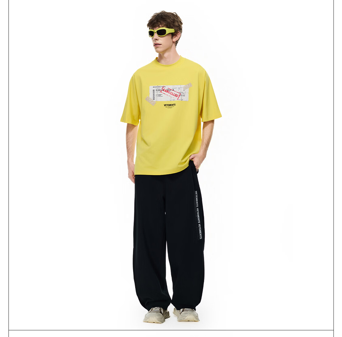 VETEMENTS未完成旅途 In The Making撕裂票根印花短袖t恤休闲轻奢高档半袖 黑色 XL