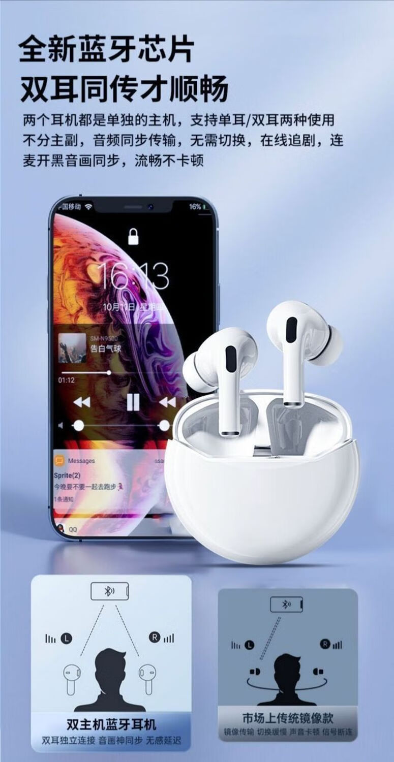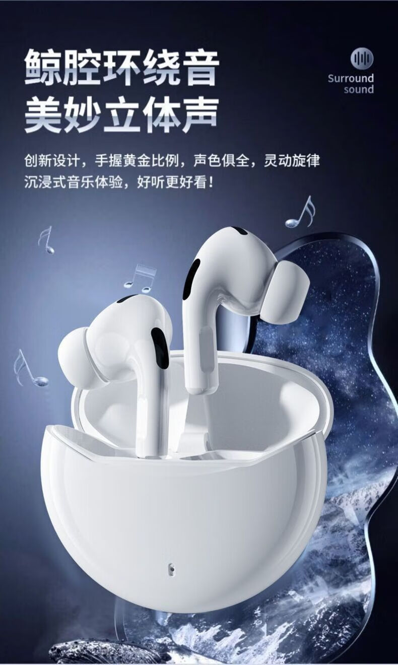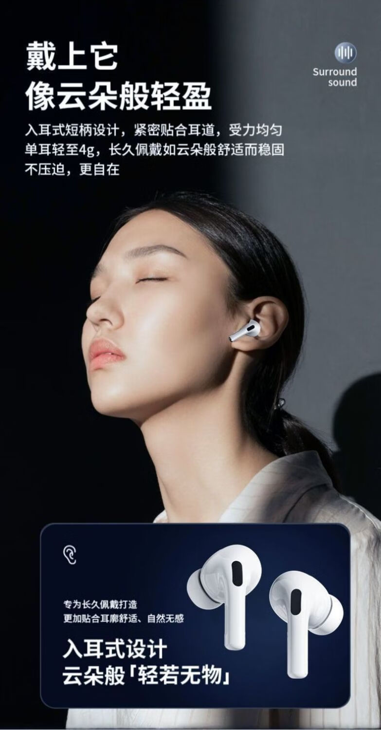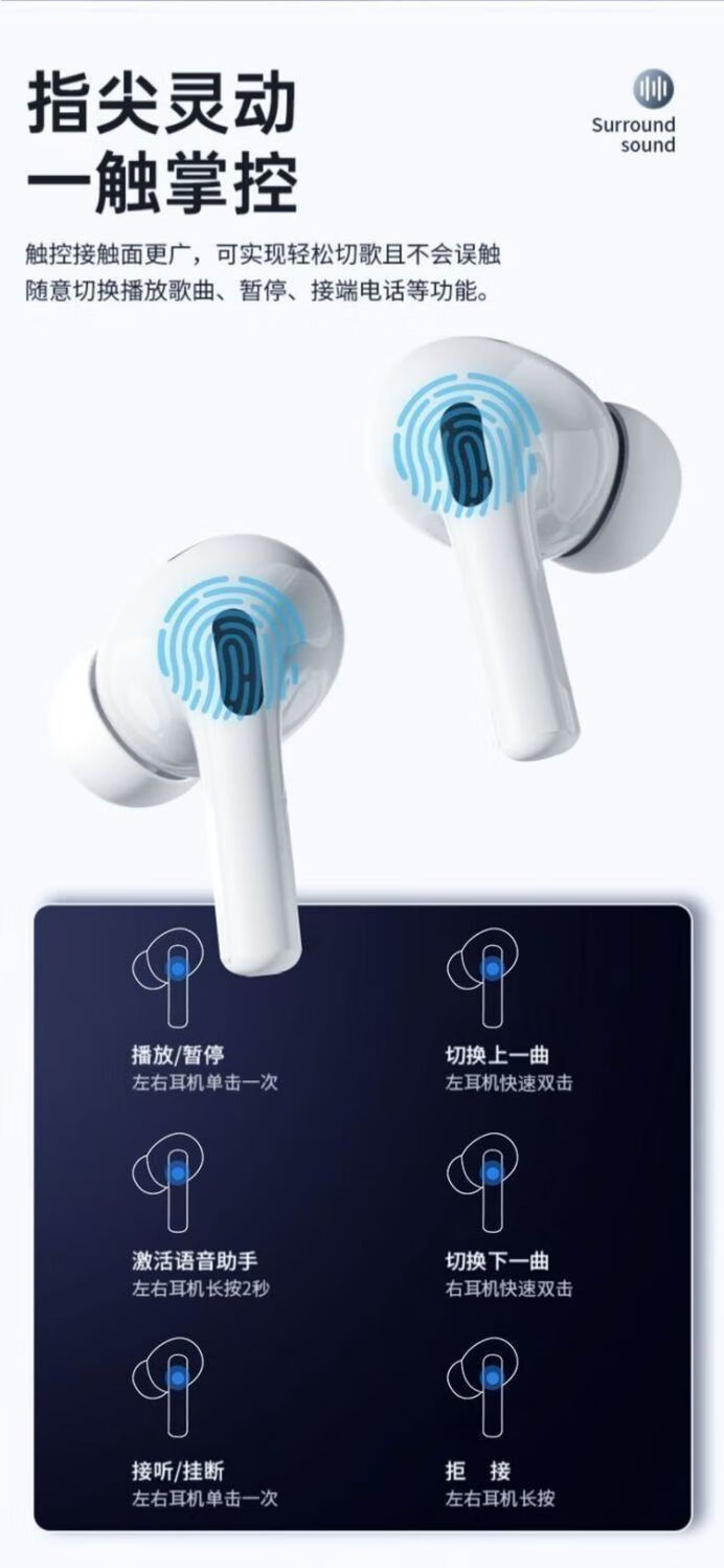 奇联蓝牙耳机入耳式无线通话降噪超长续航高音质音乐游戏低延迟运动跑步睡眠男女生适用苹果oppo华为 白色|长续航