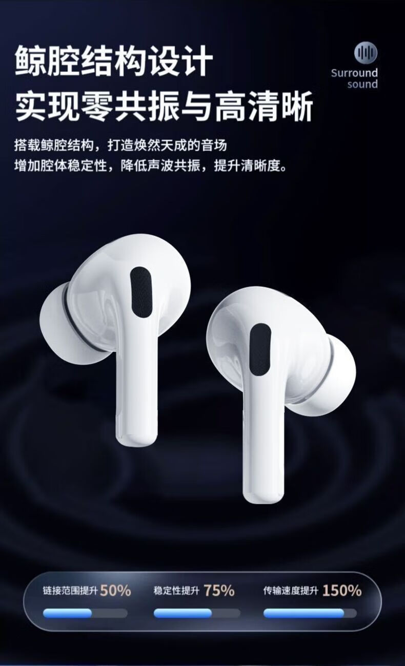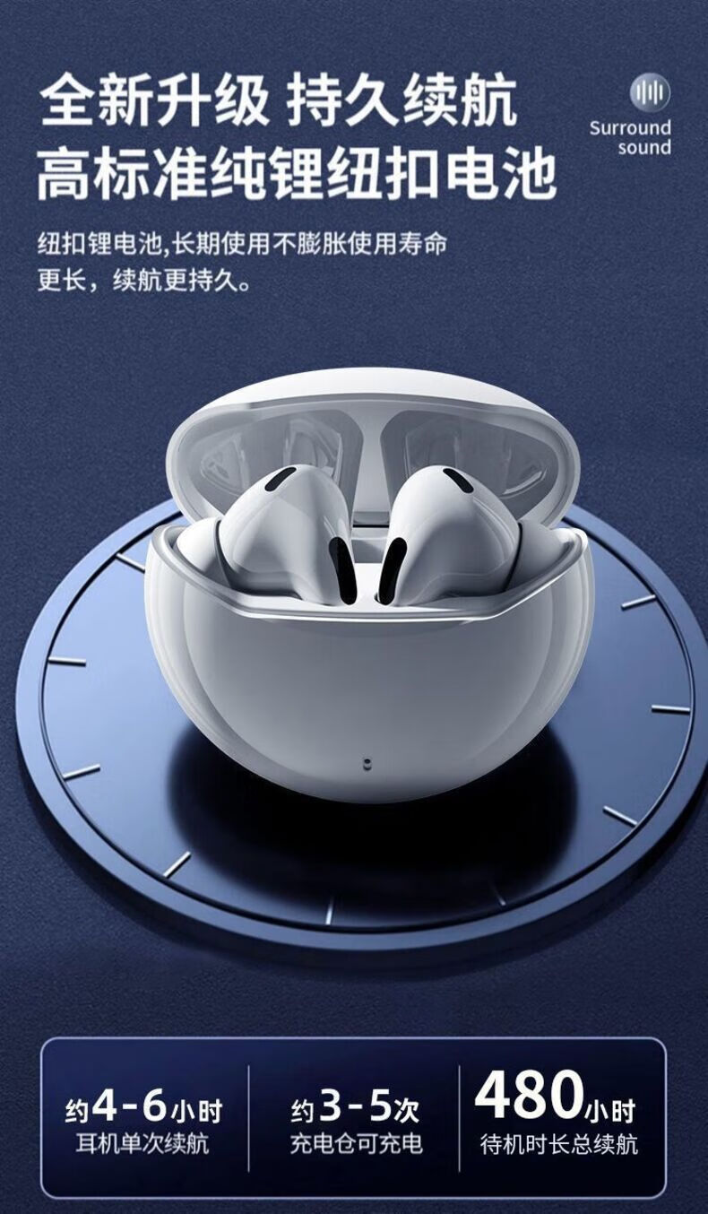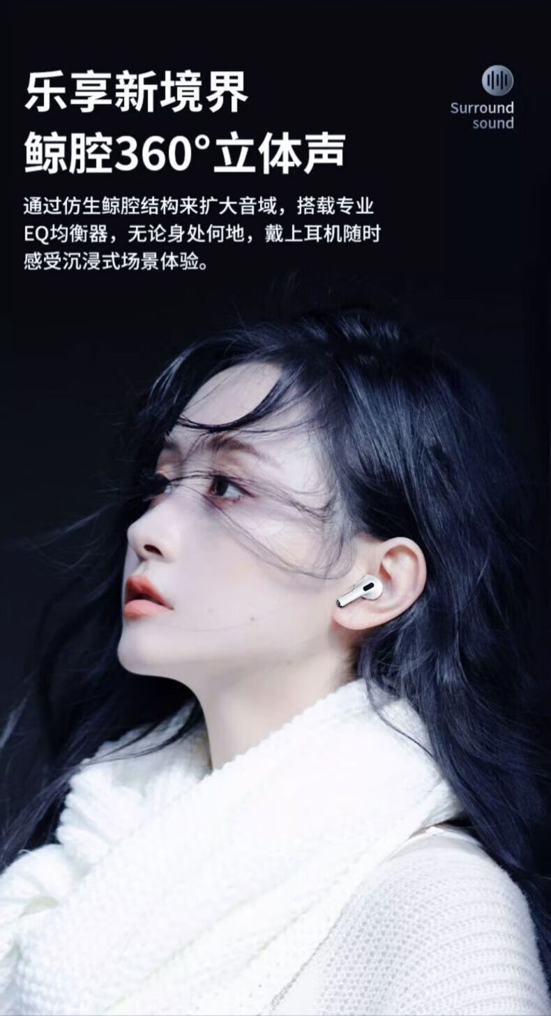 奇联蓝牙耳机入耳式无线通话降噪超长续航高音质音乐游戏低延迟运动跑步睡眠男女生适用苹果oppo华为 白色|长续航