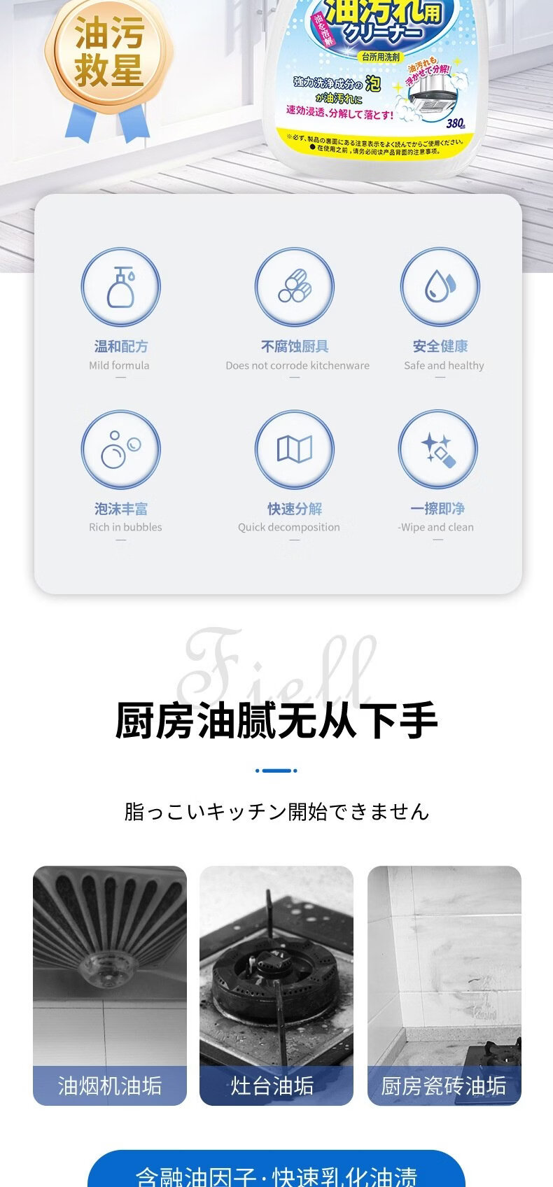 全耀厨房油污清洁剂油污净油烟机清洗剂油污清洁剂去油污厨房油烟净 油污清洁剂 380ml