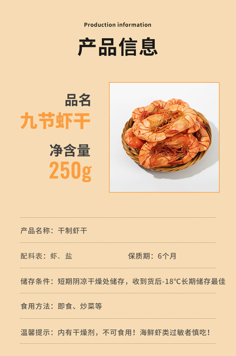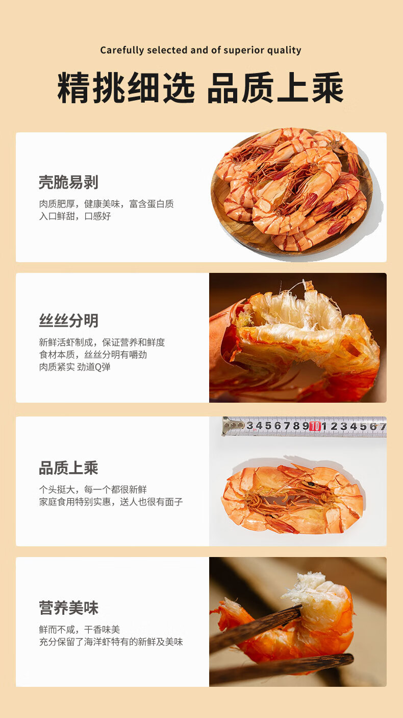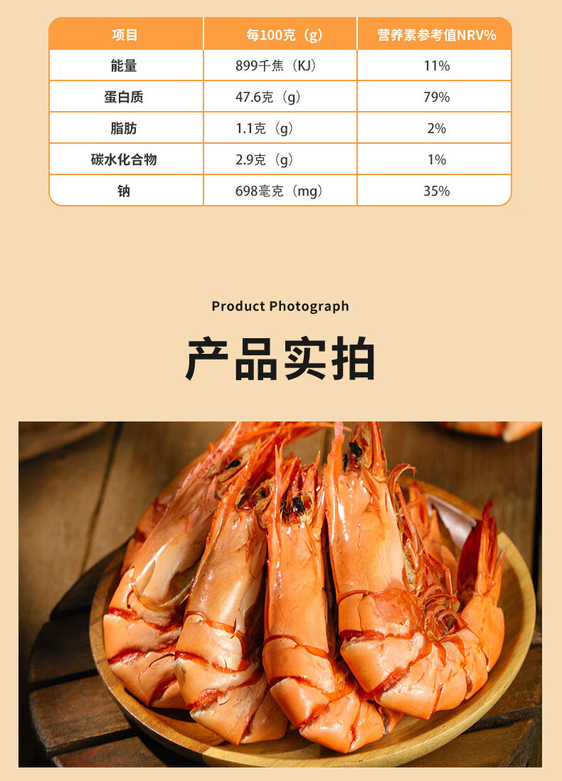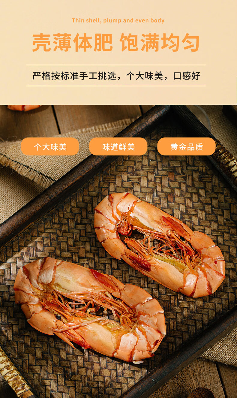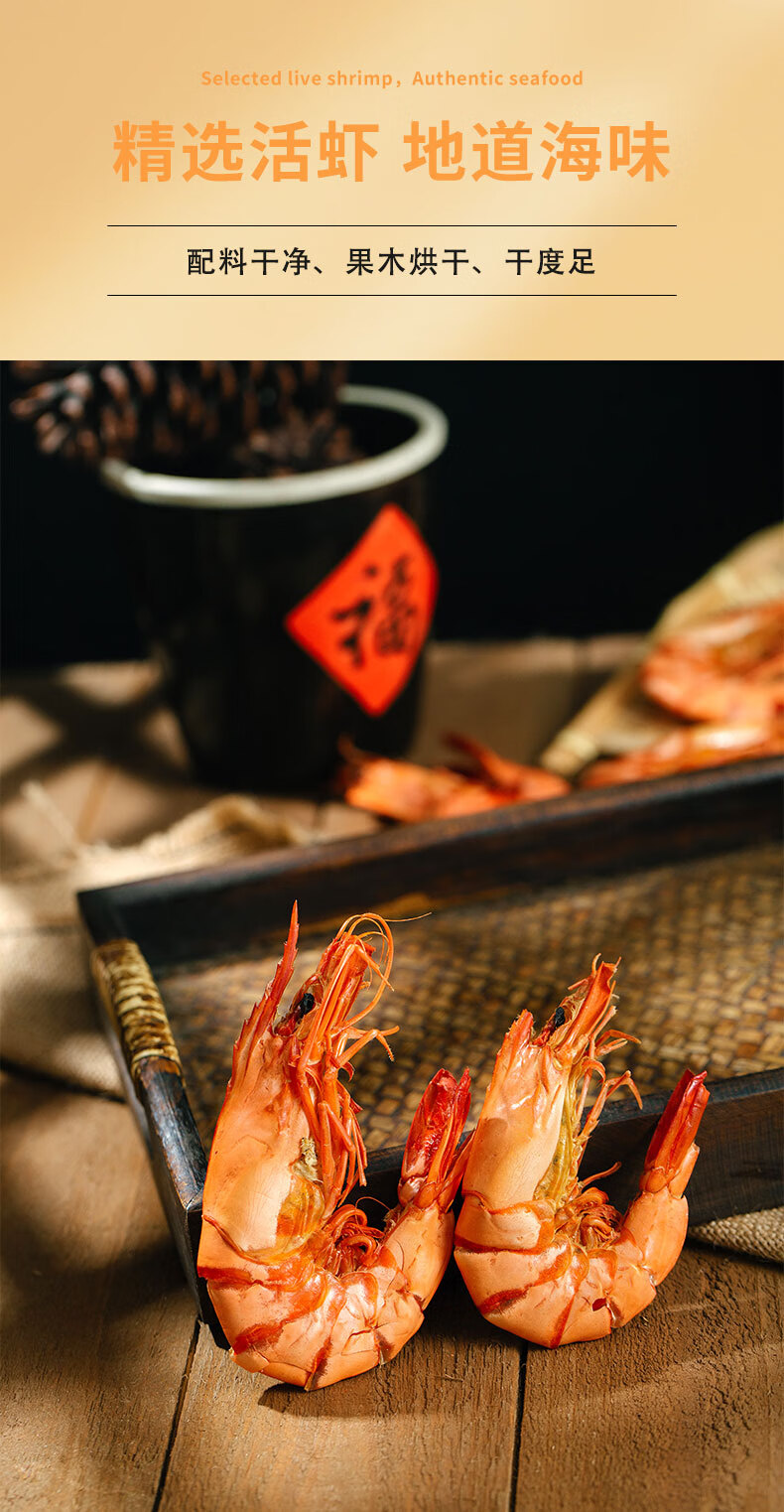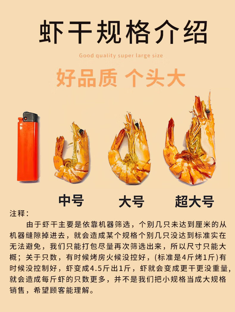 斑节虾干九节虾干即食大号特大烤竹节虾斑节虾水产干货对虾干 中号45对左右 500g(净重)