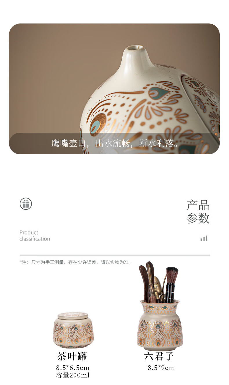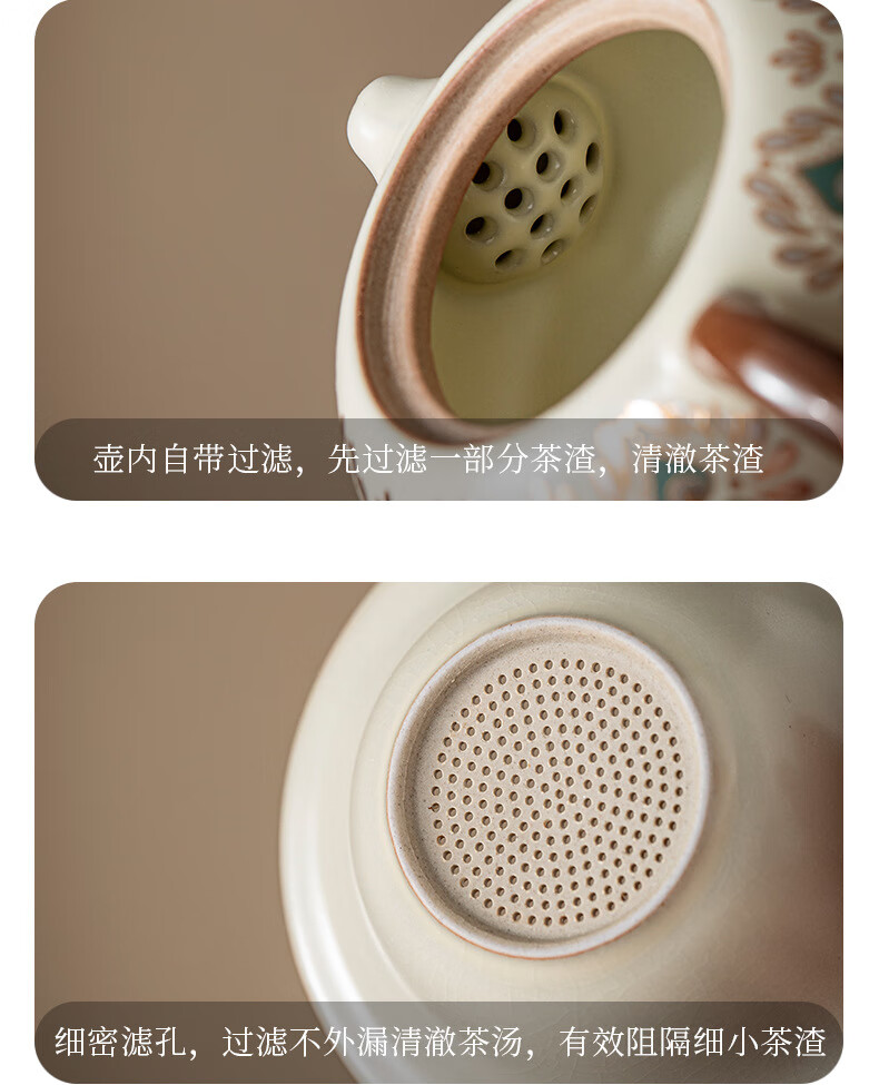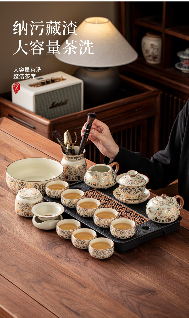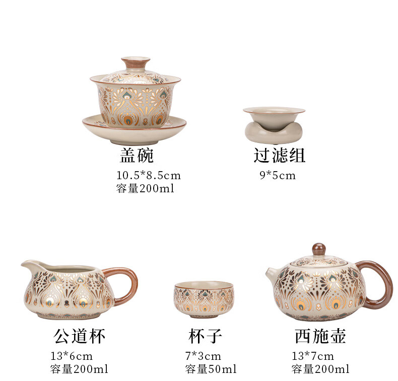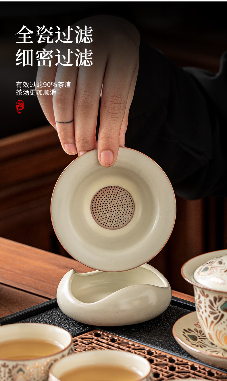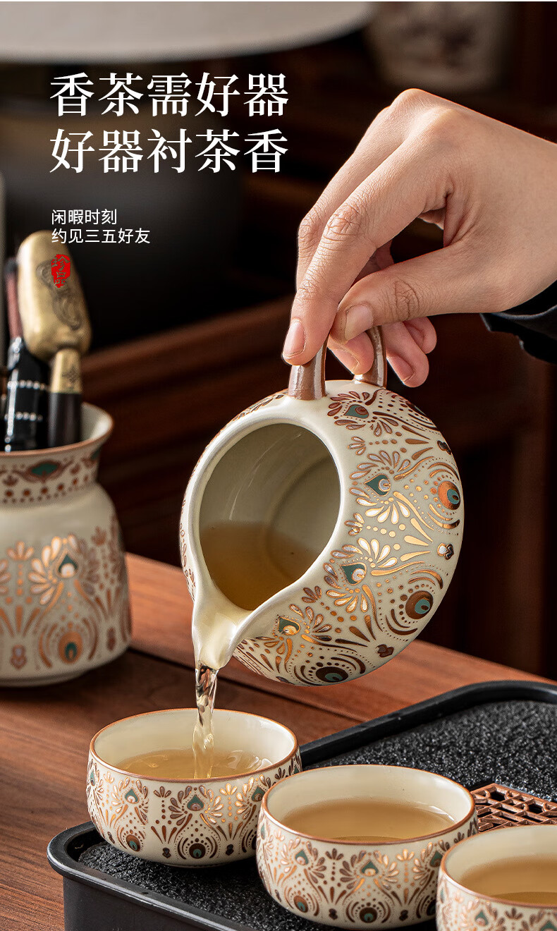 文枝敦煌汝窑功夫茶具套装家用办公室高档盖碗茶杯整套新年节日送礼品 古韵敦煌提梁壶9件套+礼盒