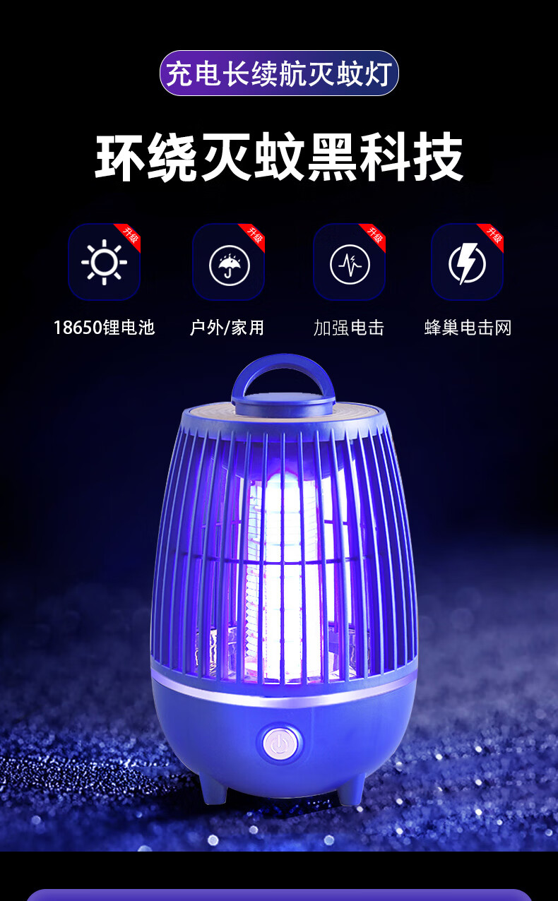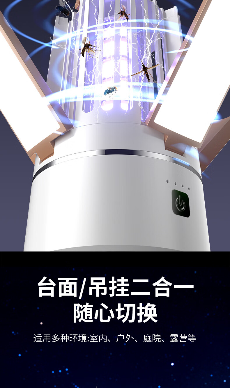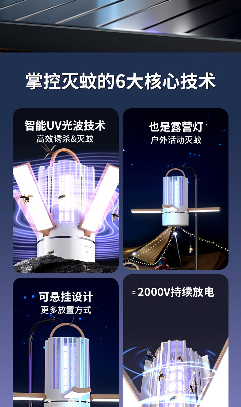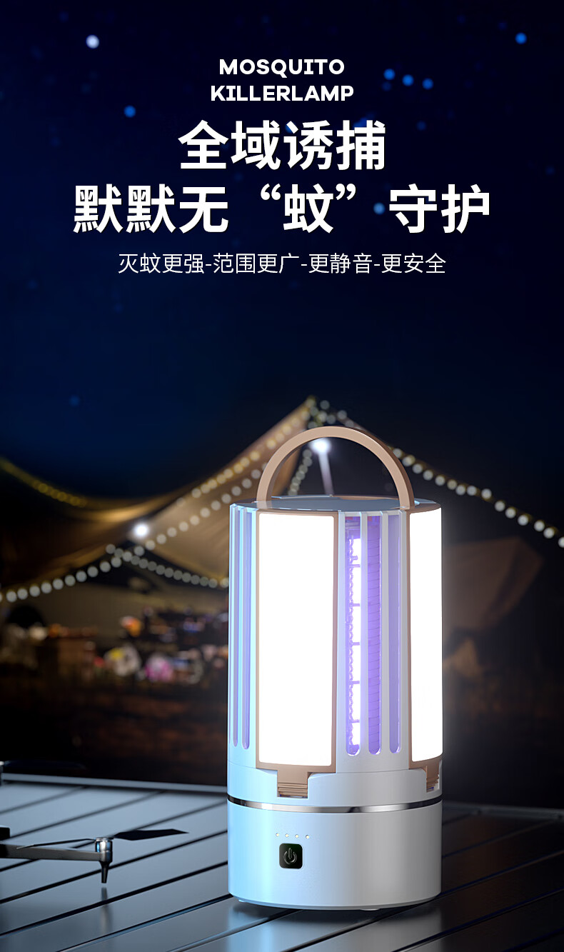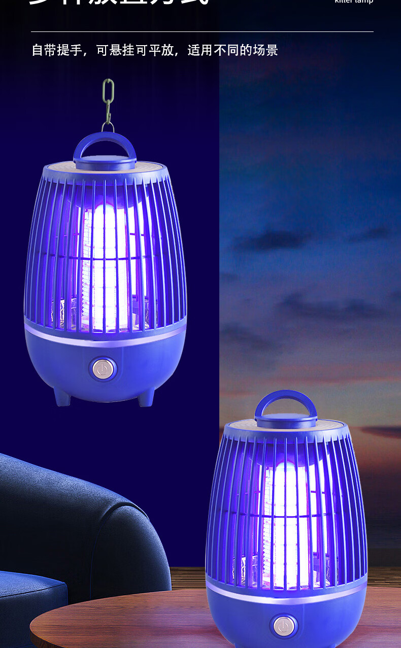 度斯露营灯户外可充电多功能灭蚊灯除蚊营地折叠帐篷可照明悬挂灯 露营室内灭蚊【充电式1200毫安+蓝色款配置】