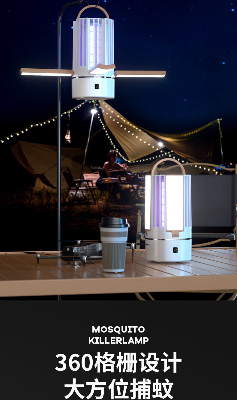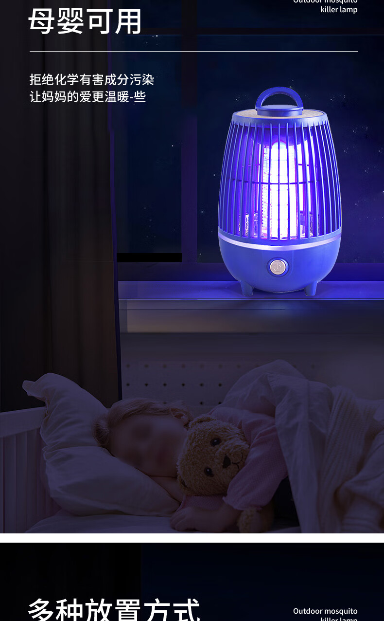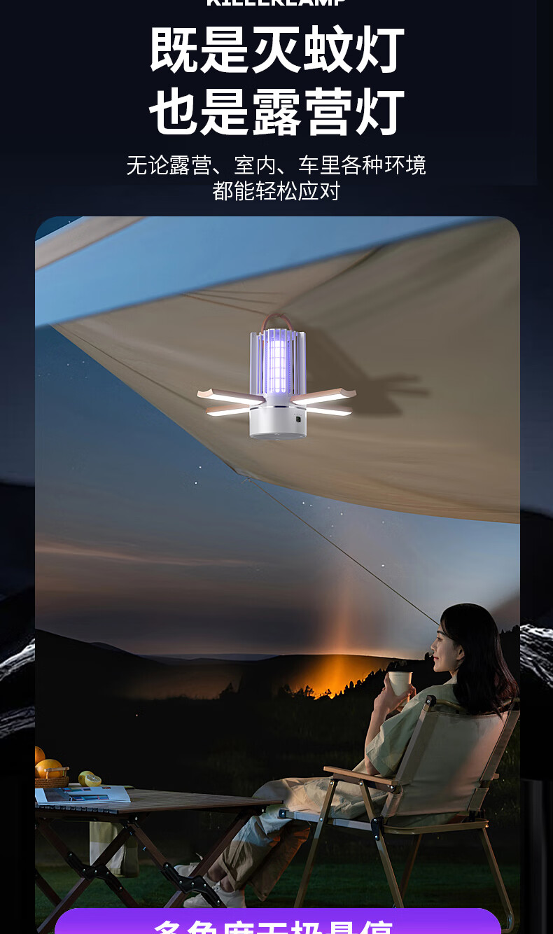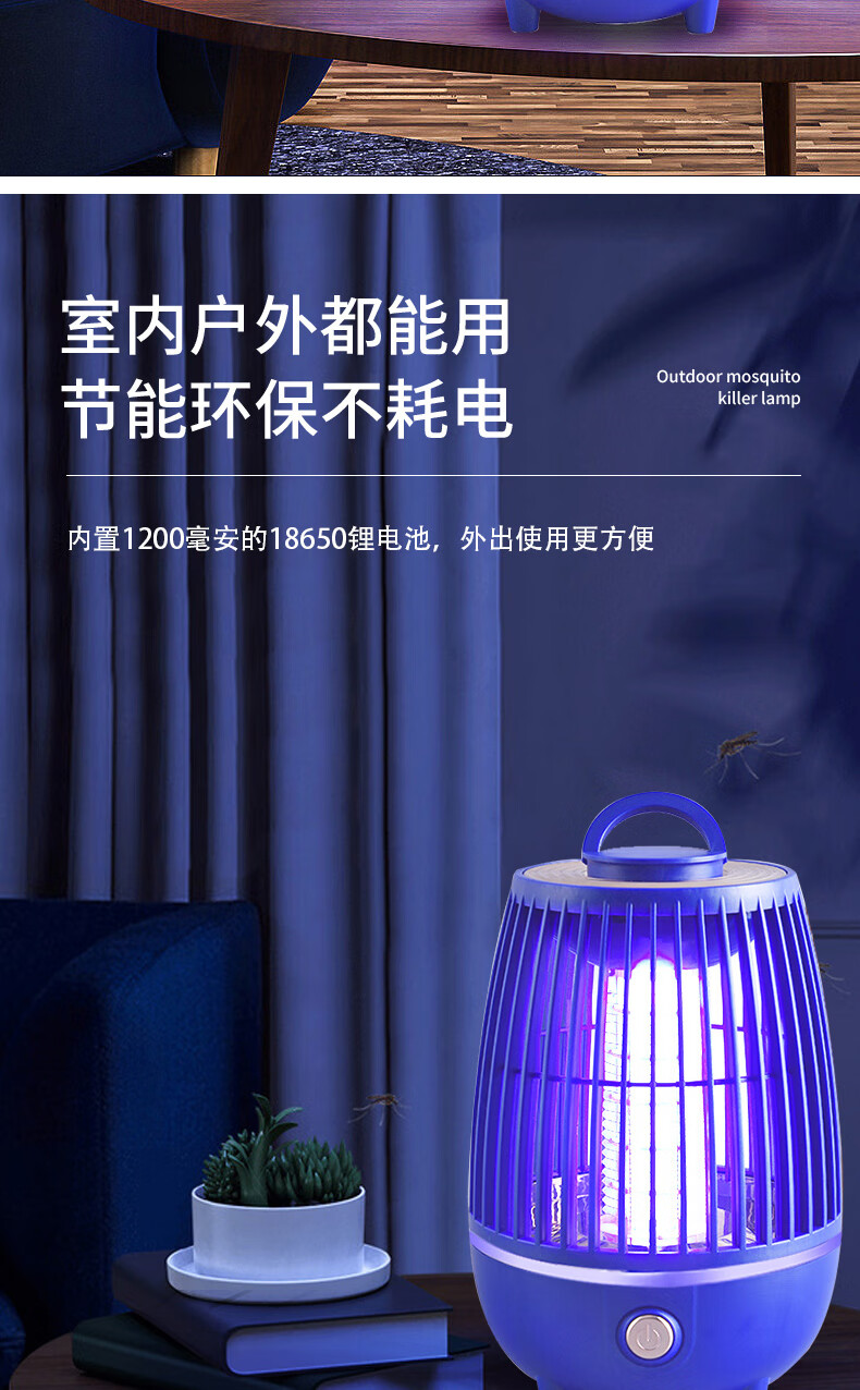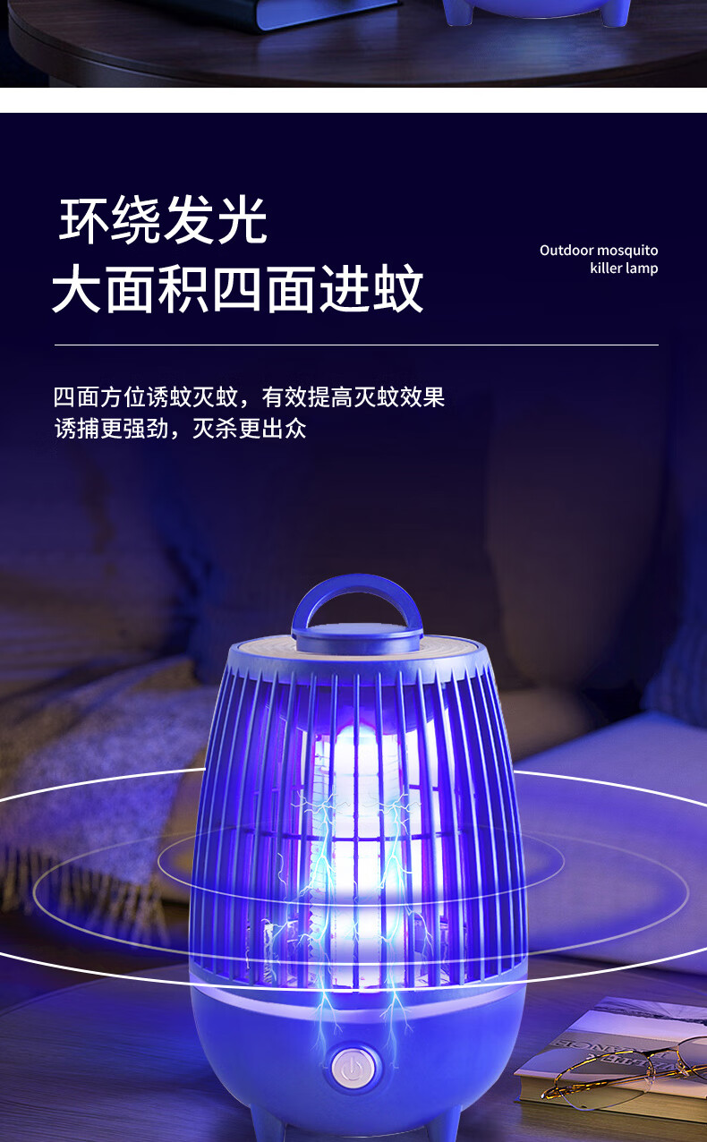 度斯露营灯户外可充电多功能灭蚊灯除蚊营地折叠帐篷可照明悬挂灯 露营室内灭蚊【充电式1200毫安+蓝色款配置】