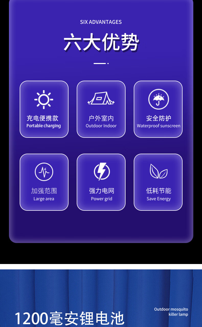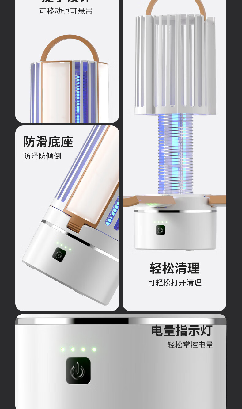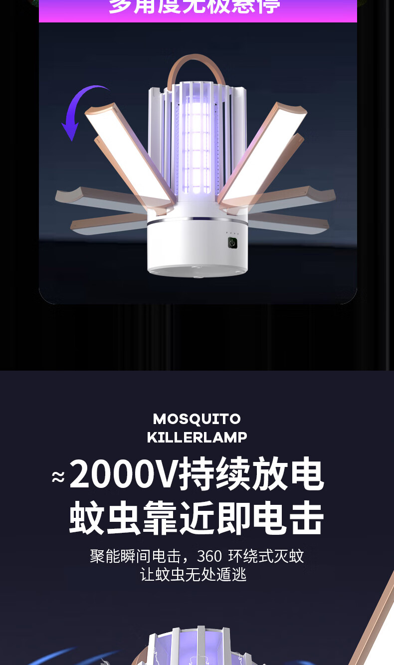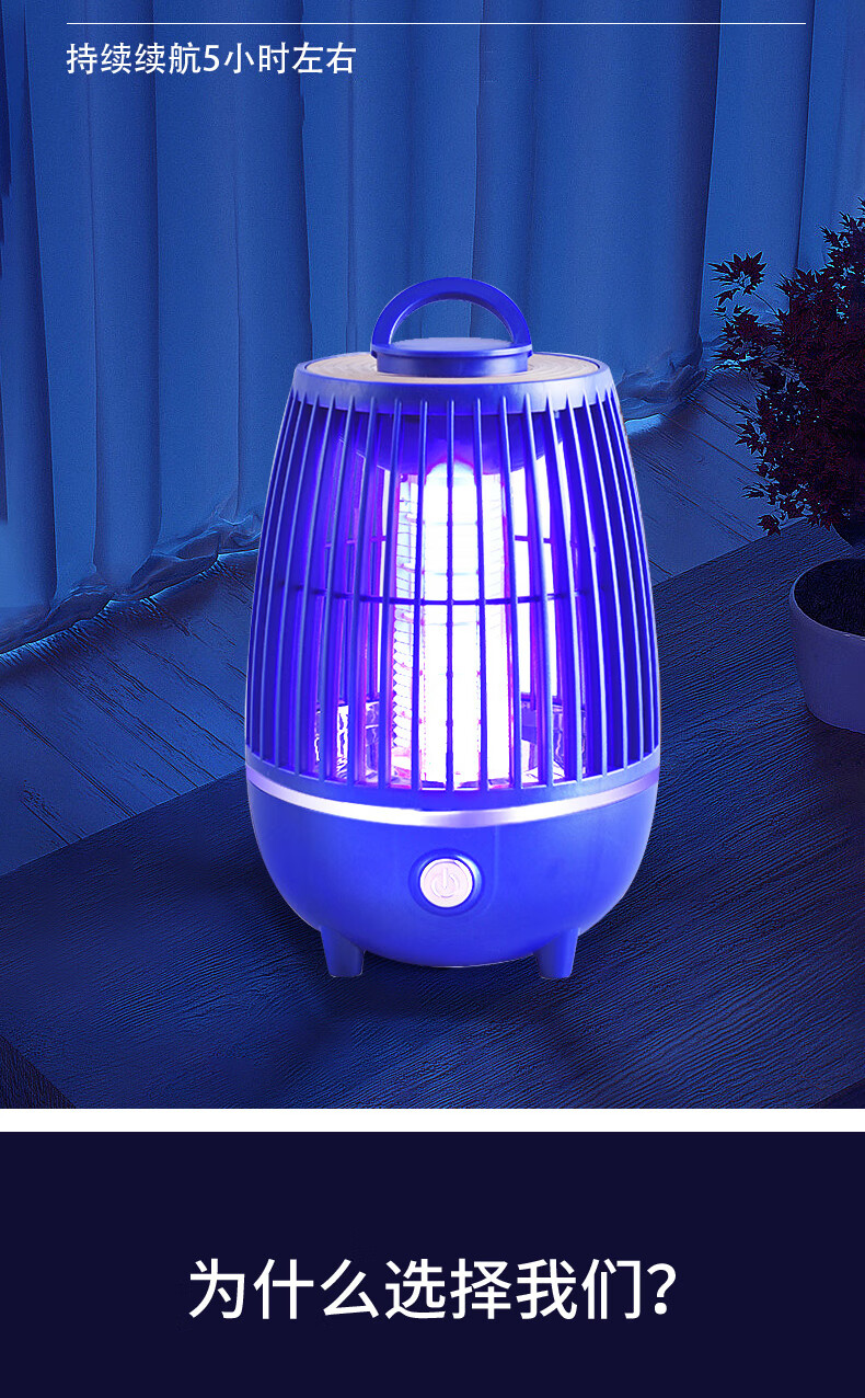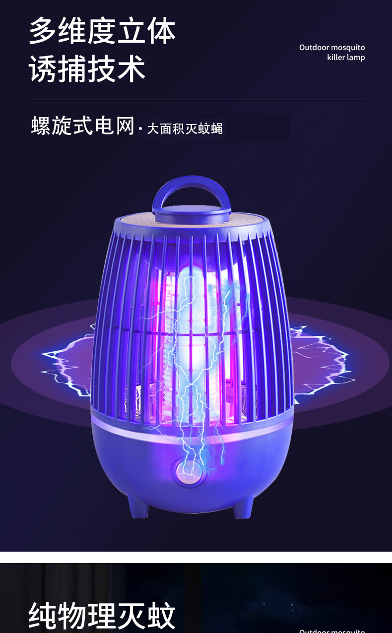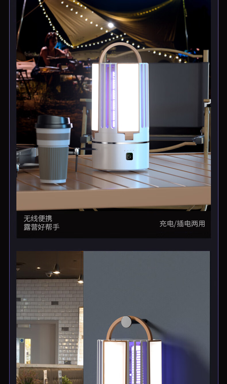 度斯露营灯户外可充电多功能灭蚊灯除蚊营地折叠帐篷可照明悬挂灯 露营室内灭蚊【充电式1200毫安+蓝色款配置】
