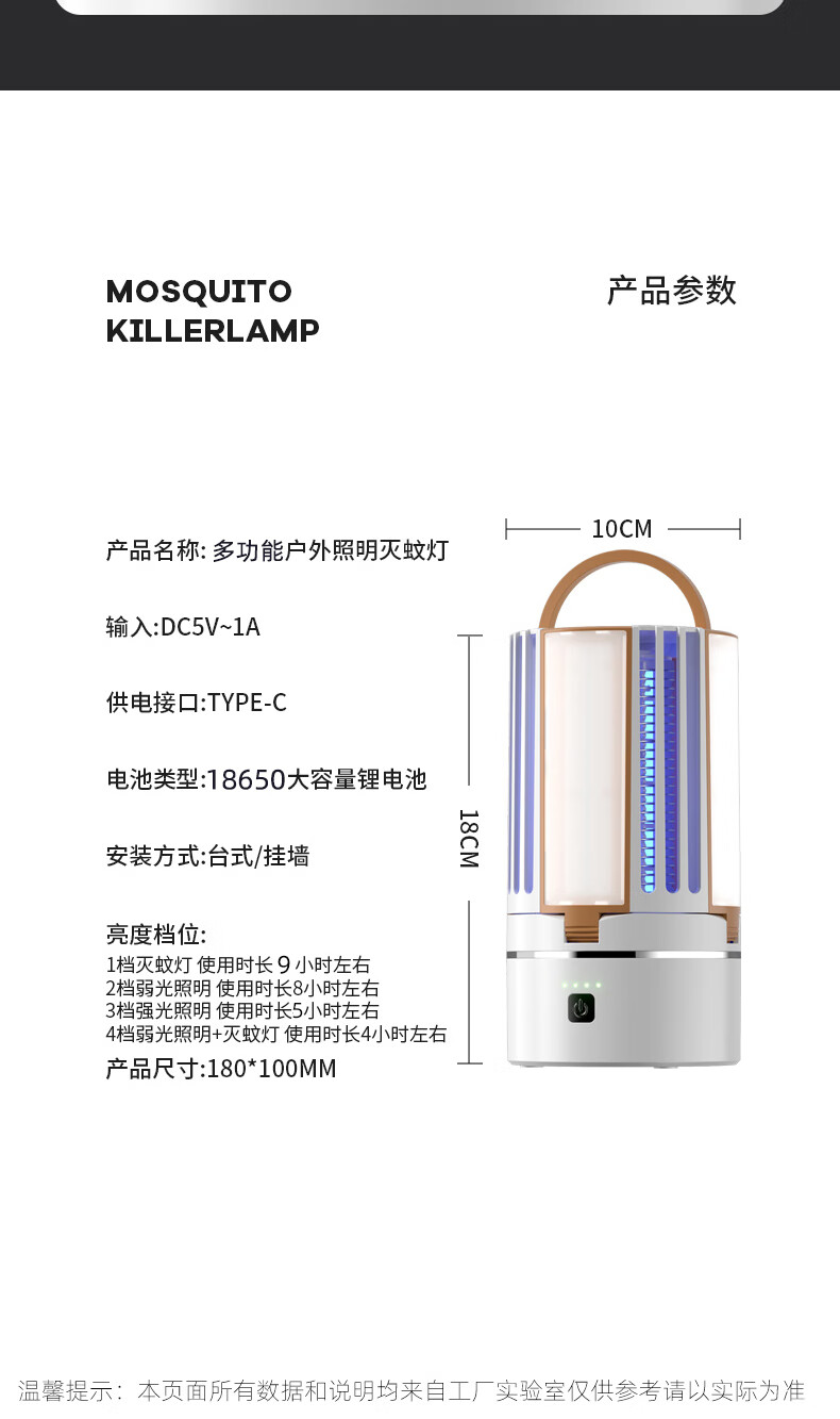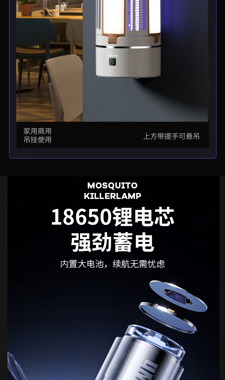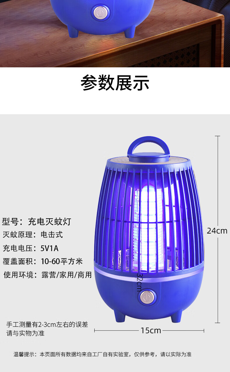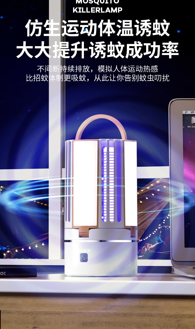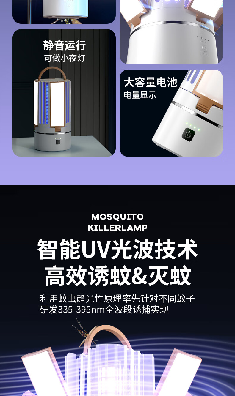 度斯露营灯户外可充电多功能灭蚊灯除蚊营地折叠帐篷可照明悬挂灯 露营室内灭蚊【充电式1200毫安+蓝色款配置】