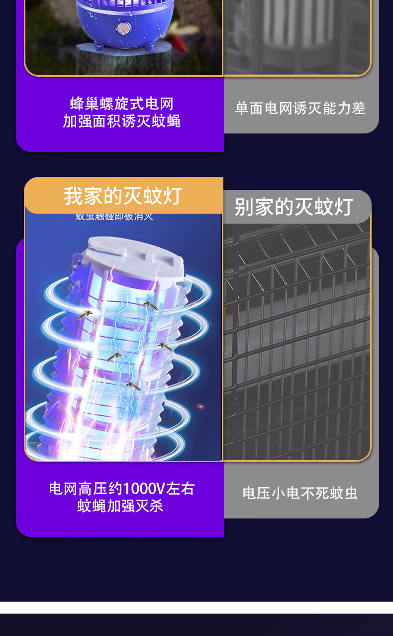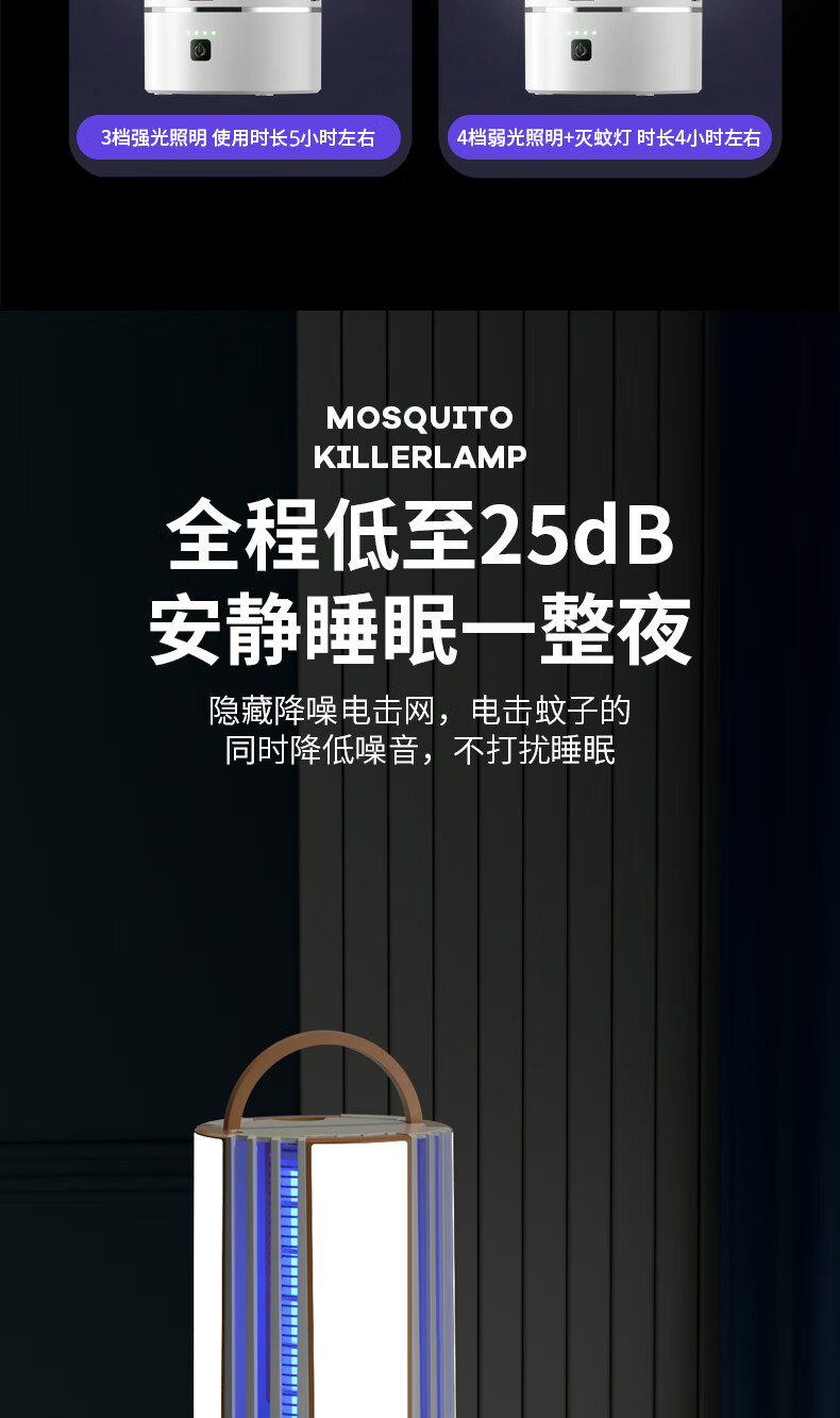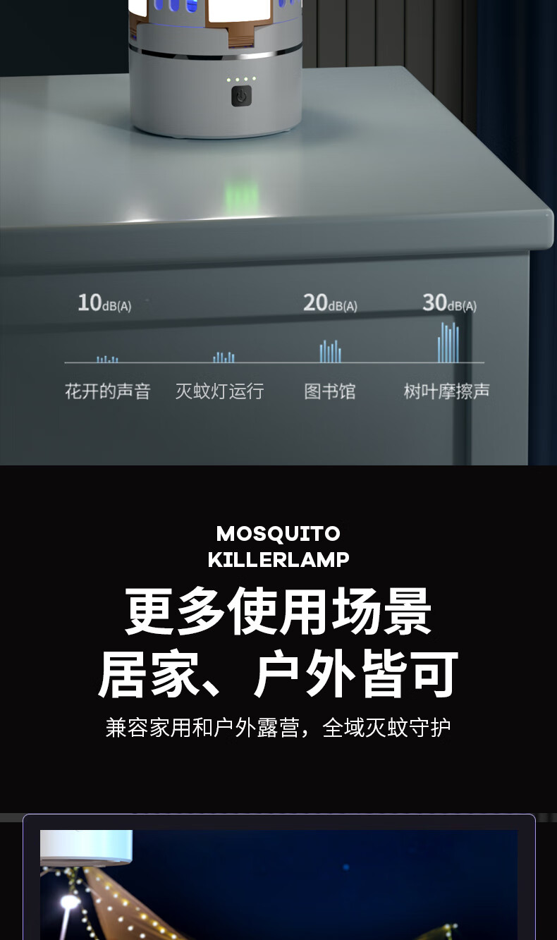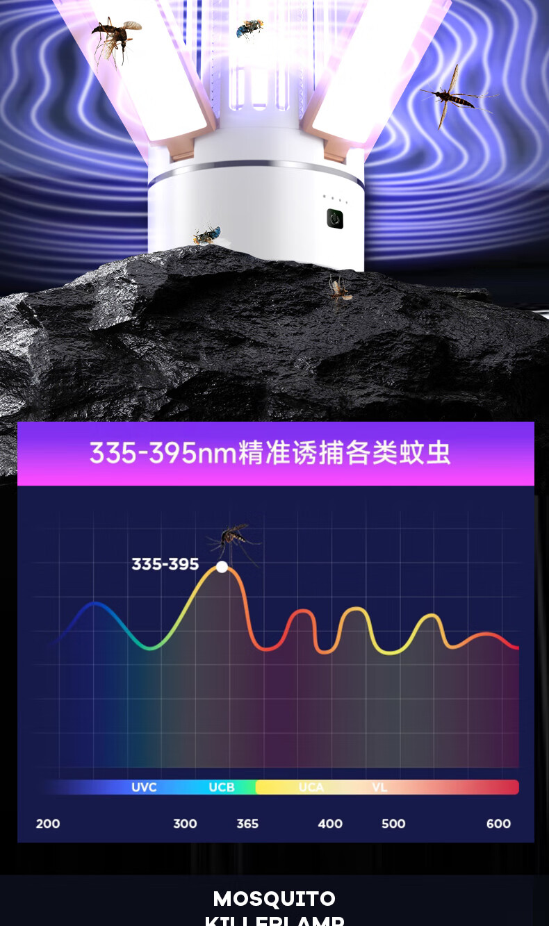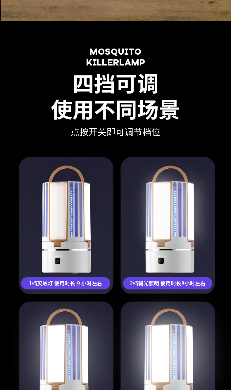 度斯露营灯户外可充电多功能灭蚊灯除蚊营地折叠帐篷可照明悬挂灯 露营室内灭蚊【充电式1200毫安+蓝色款配置】