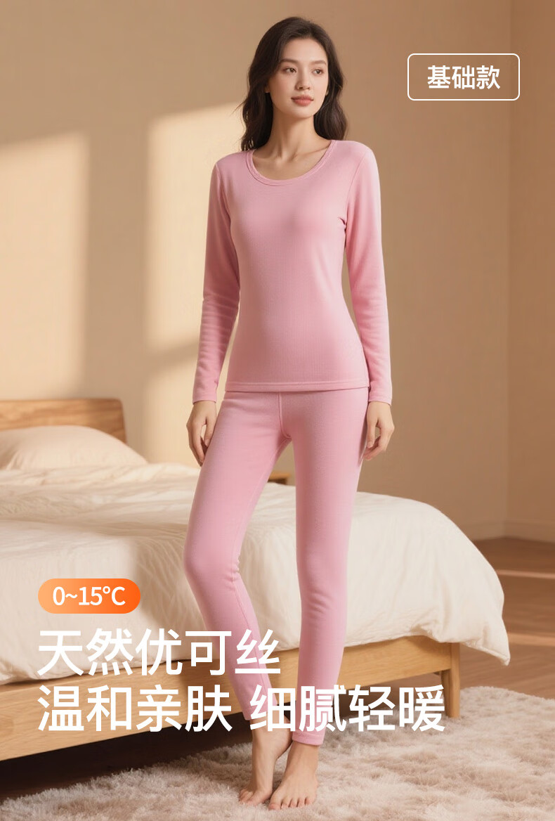 古今(GUJIN)女士抗菌打底棉毛衫裤基础款秋衣秋裤舒适透气保暖内衣情侣套装冬 米杏色(女款) 【上衣+裤子】 XL 男(175/100)建议125~145斤 女(170/95)建议110~150斤