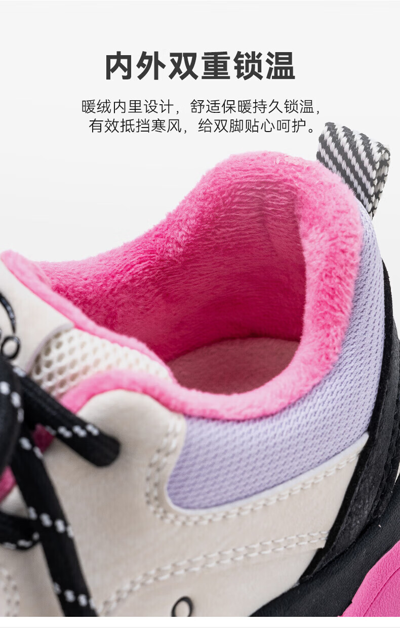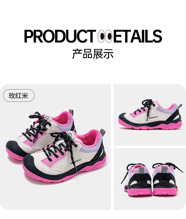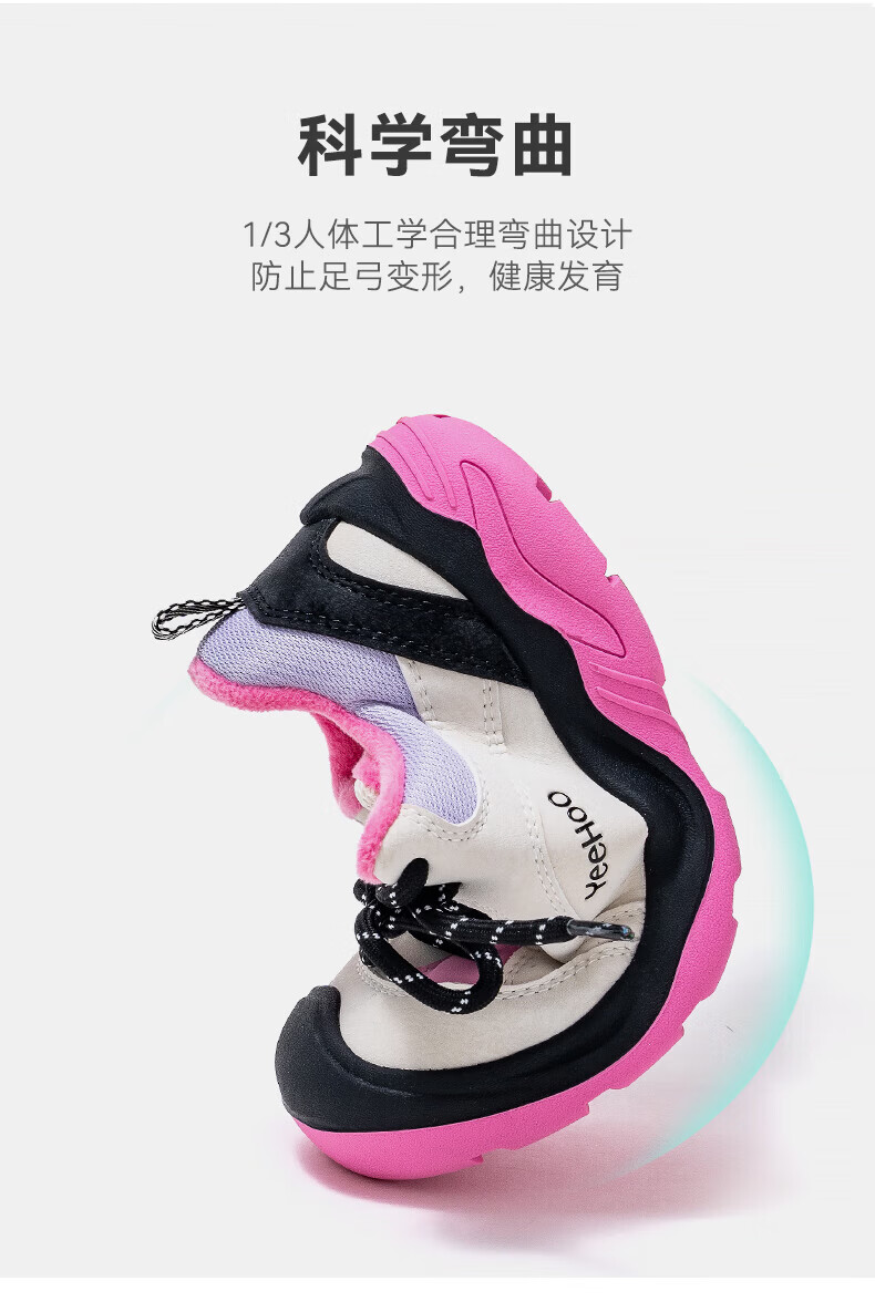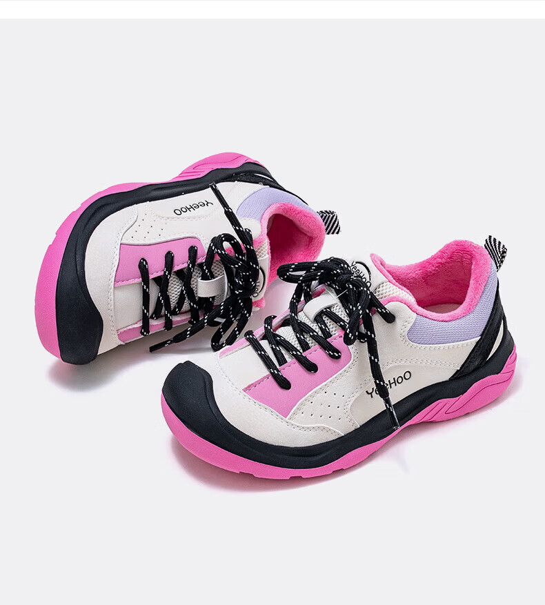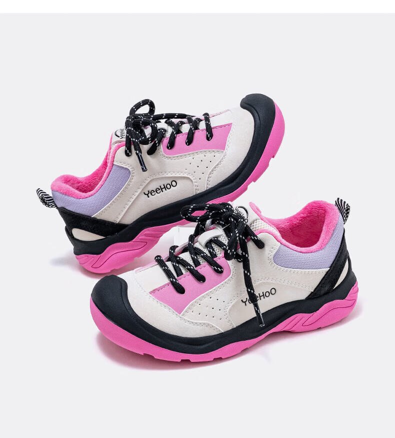 英氏(YEEHOO)冬季新款加绒休闲鞋儿童户外运动棉鞋男女童舒适百搭棉跑步鞋 玫红米 37