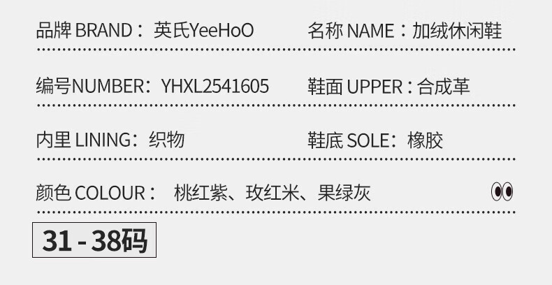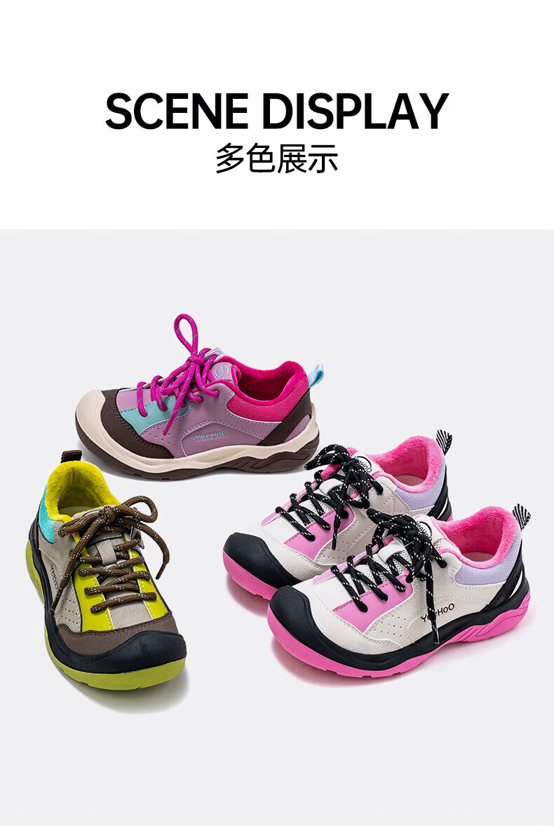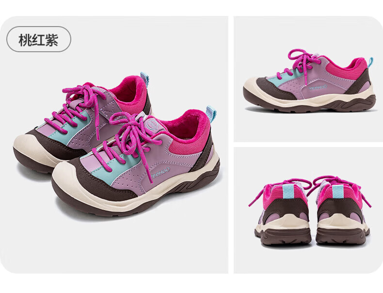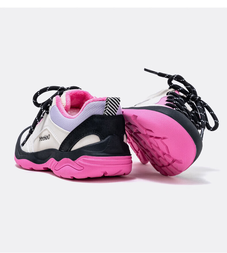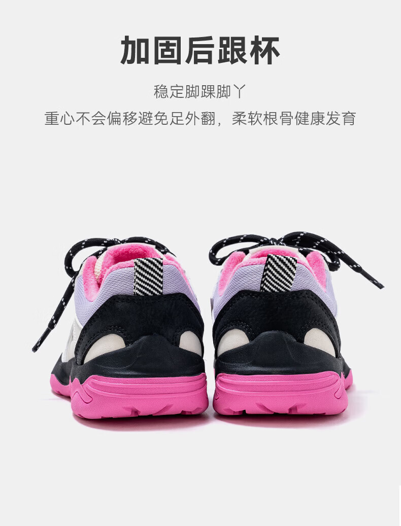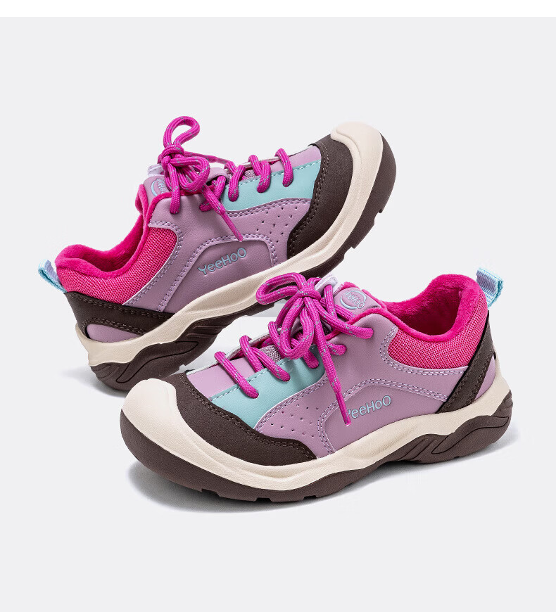 英氏(YEEHOO)冬季新款加绒休闲鞋儿童户外运动棉鞋男女童舒适百搭棉跑步鞋 玫红米 37