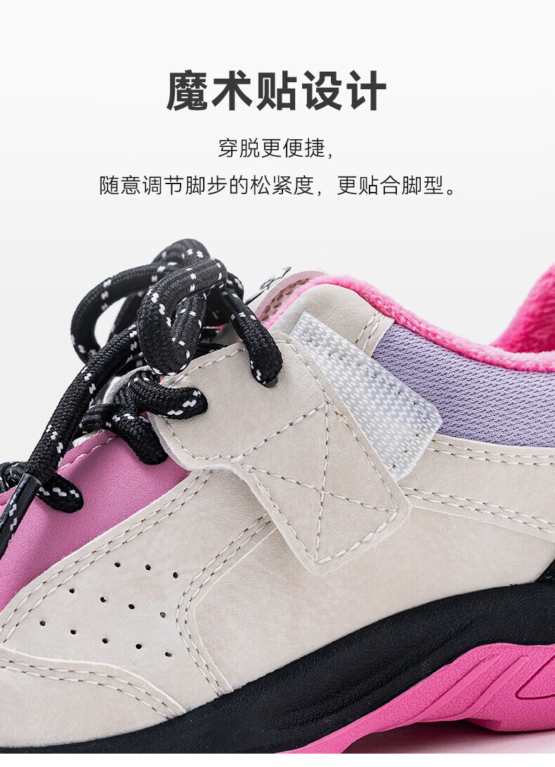 Lee童鞋春秋季儿童运动鞋百搭板鞋魔术贴透气休闲鞋男女童 米白粉 36 【建议脚长225mm】