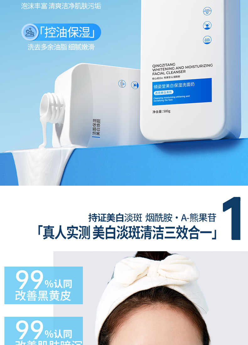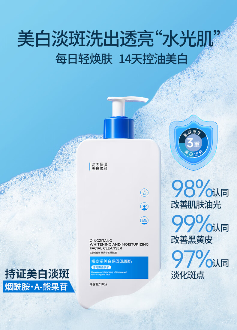 谜草集美白洗面奶控油深层清洁收缩毛孔祛痘女男士淡斑提亮肤色正品官方 500ml*1瓶轻度黄皮推荐