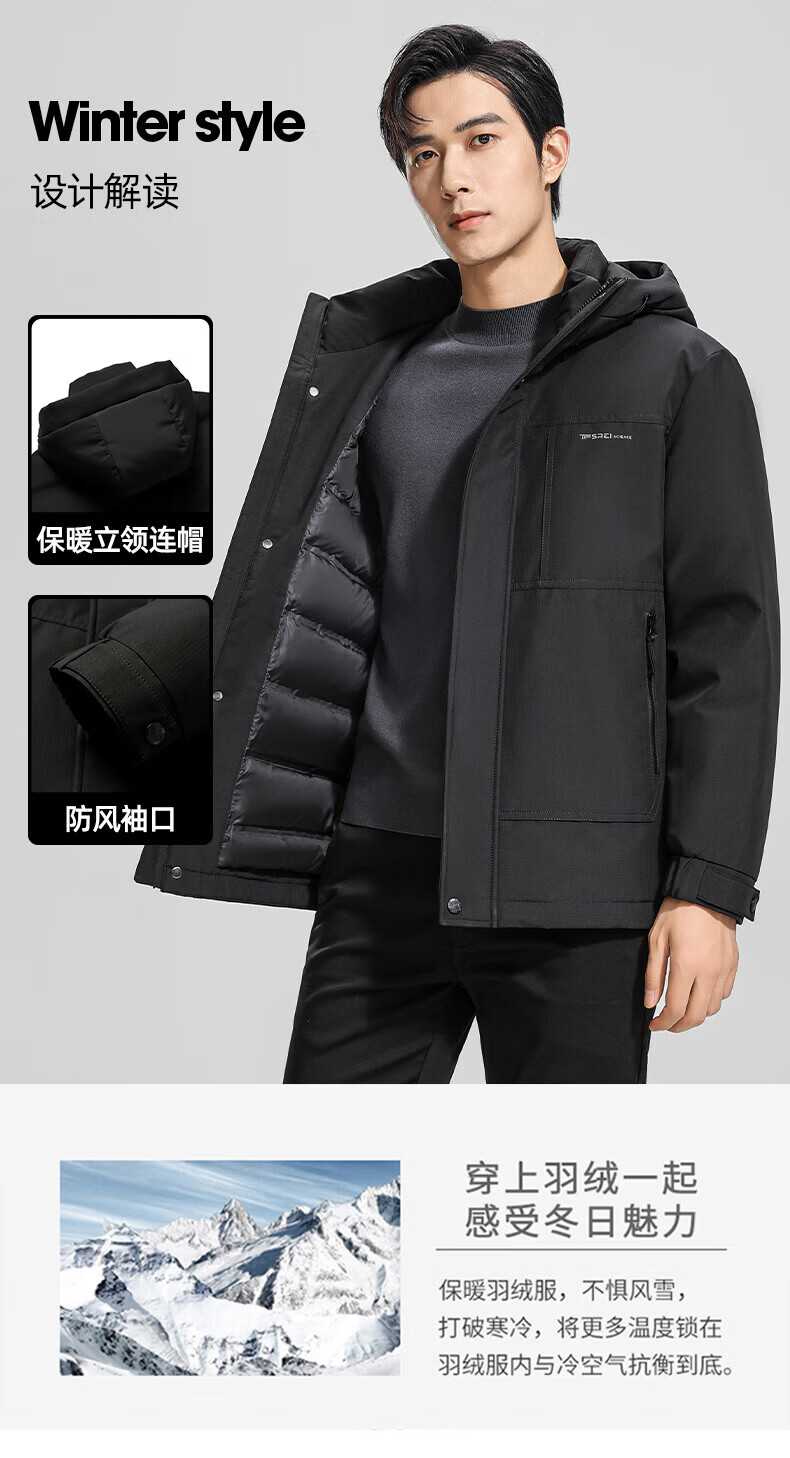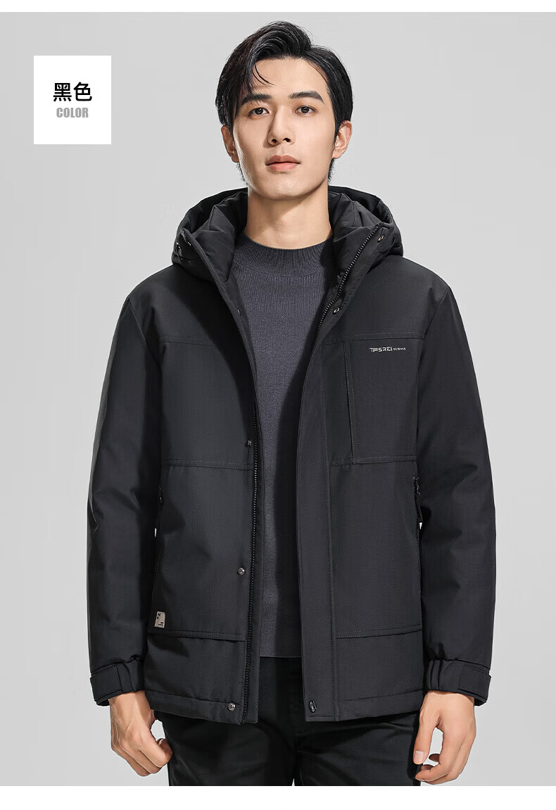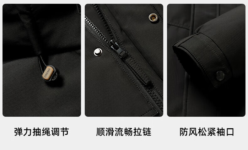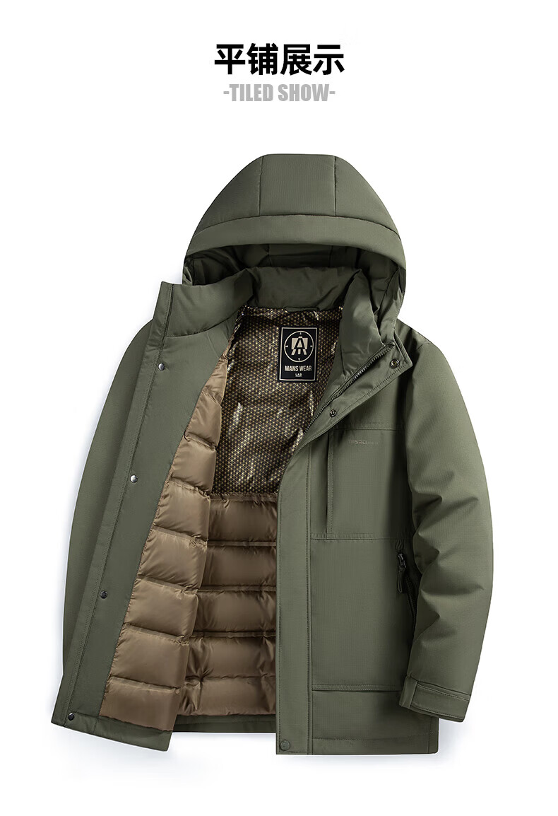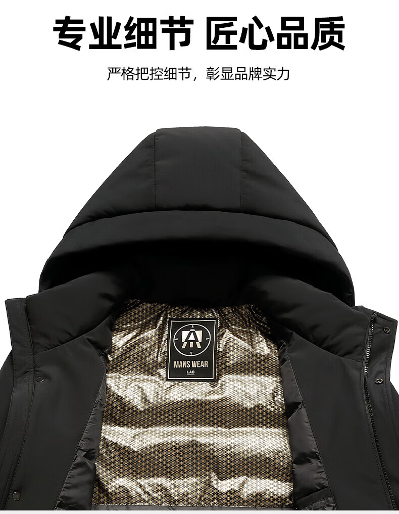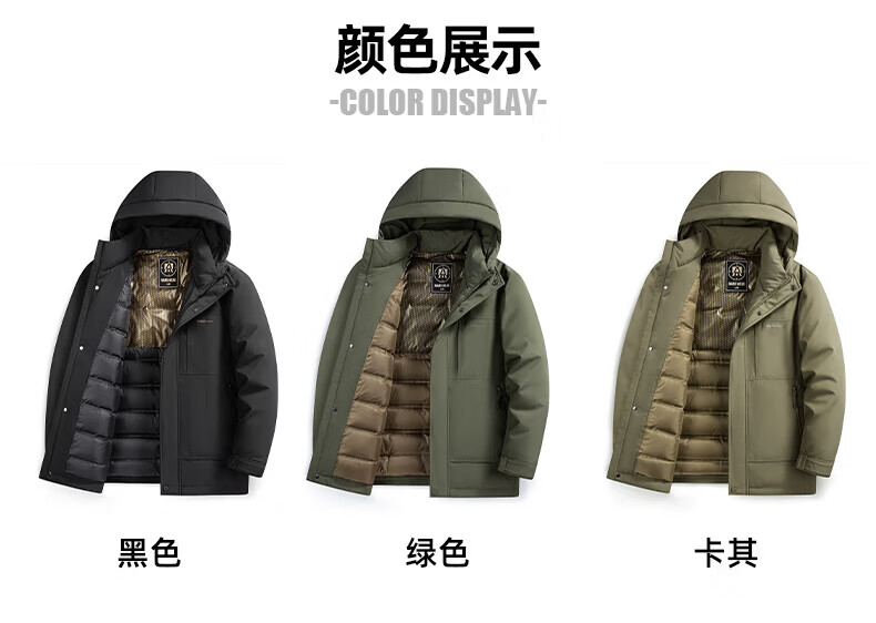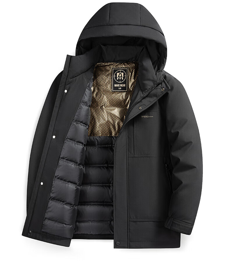恒源祥中老年羽绒服男加厚中长款中年爸爸可脱卸内胆老人冬装外套 黑色无毛 M 【体重90-110斤】