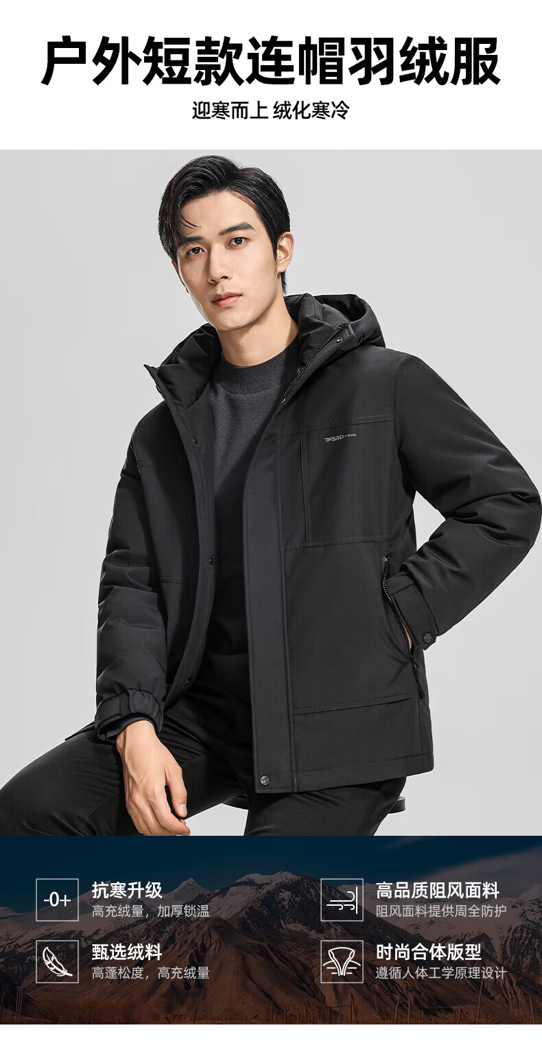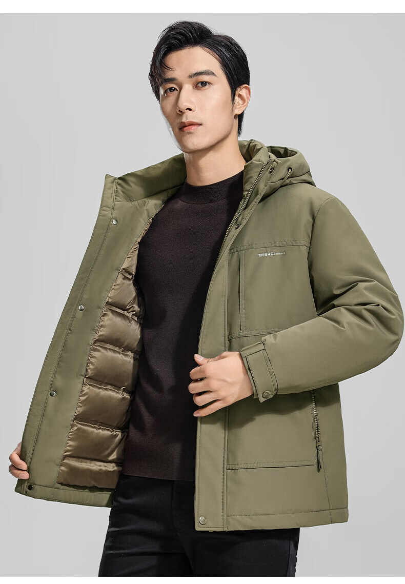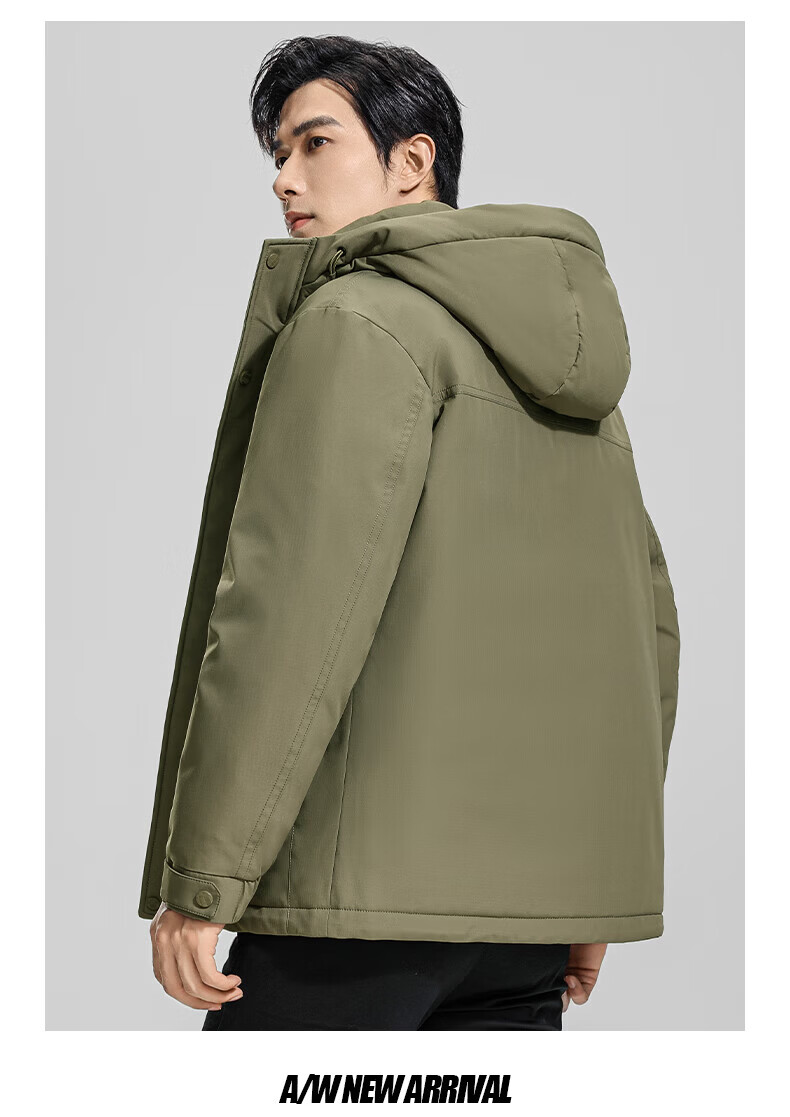 鸭鸭(YAYA)羽绒服男短款连帽宽松厚款保暖中青年2025冬季新年户外工装外套 卡其 2XL 185(建议155-170斤)