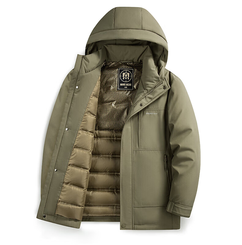 恒源祥冬季新款可脱卸内胆中年男士鹅绒羽绒服外套爸爸中长款派克服 灰色 190/3XL(170-185斤)