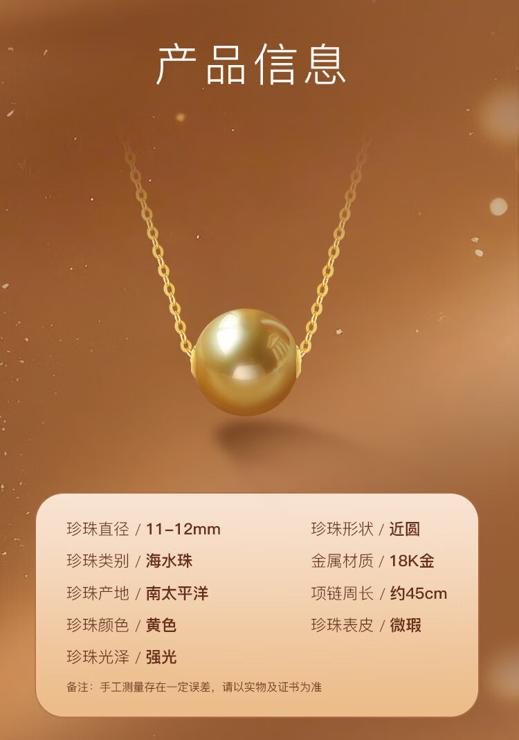 珍珠皇后 18K金链南洋海水金珠路路通吊坠项链女优雅通勤生日礼物送女朋友 【11-12mm】+18K金O字链