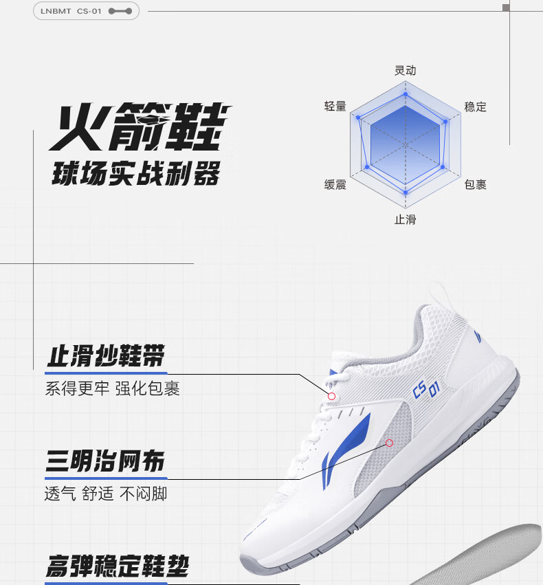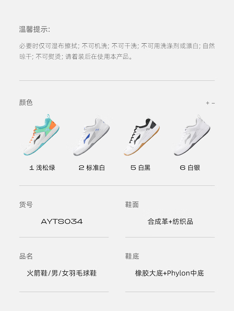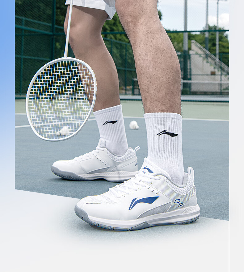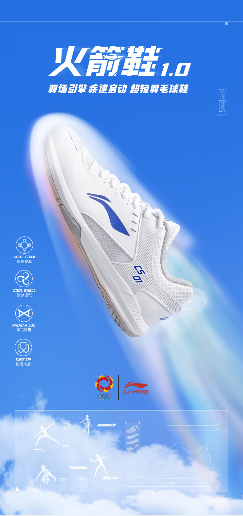 李宁羽毛球鞋男女款乒乓球火箭家族火箭鞋专业减震防滑比赛训练运动鞋 【火箭1.0】标准白 41 (255mm)