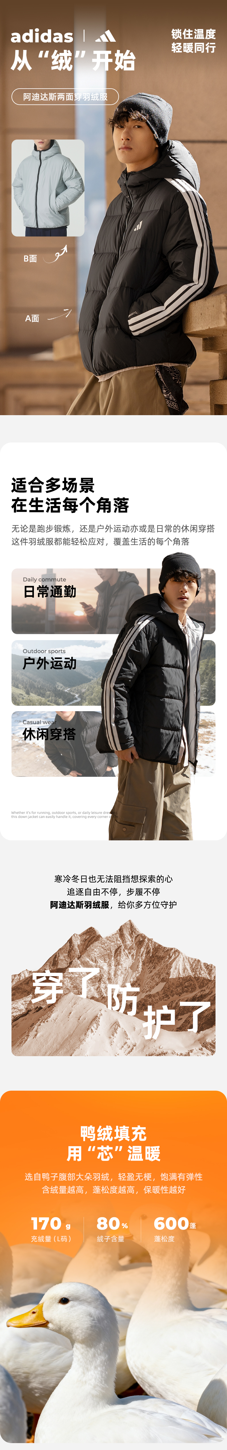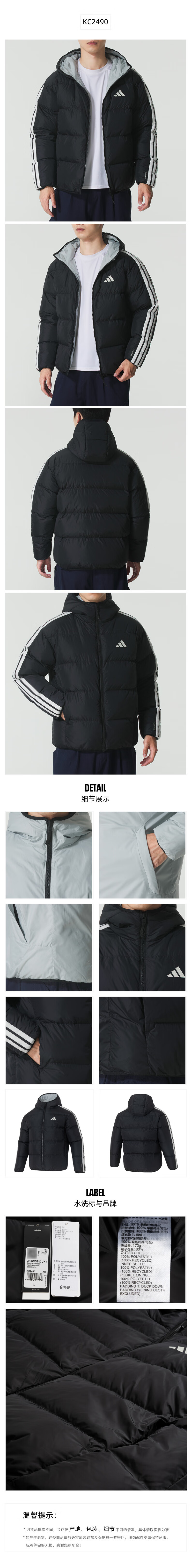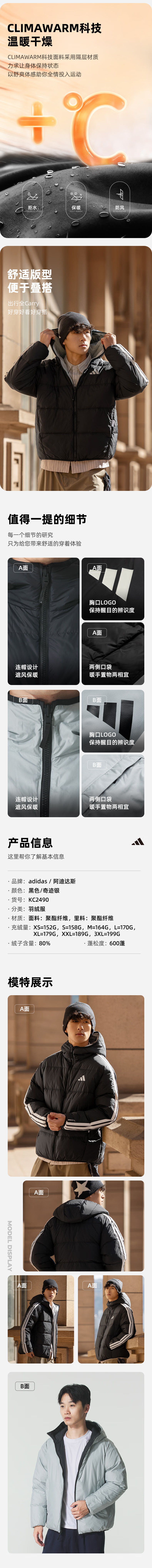 阿迪达斯(adidas)羽绒服男 冬季新款暖芯防风加厚保暖600蓬80鸭绒短款连帽羽绒夹克 KC2490 双面穿/情侣款 L
