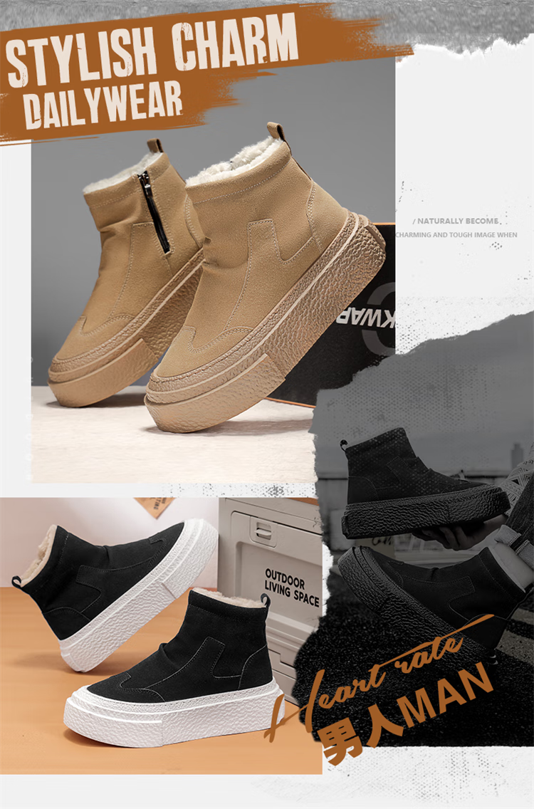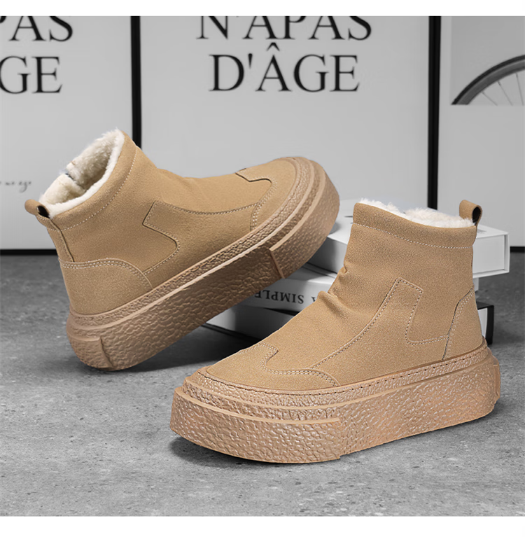星期六加绒保暖雪地靴2025冬季新款短筒女靴厚底增高毛绒马丁靴防滑棉鞋 驼色 【超暖毛绒】跟高3.5cm 38