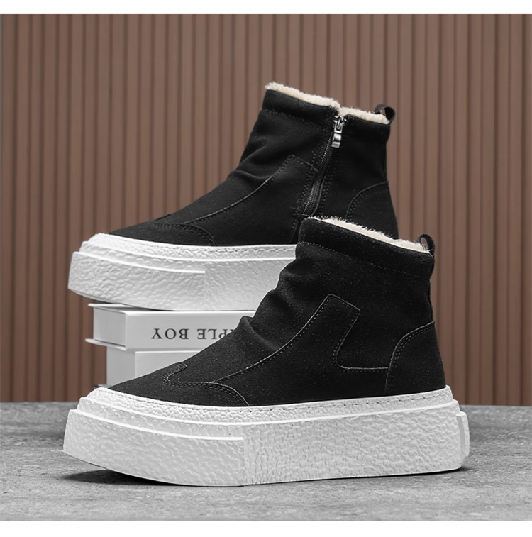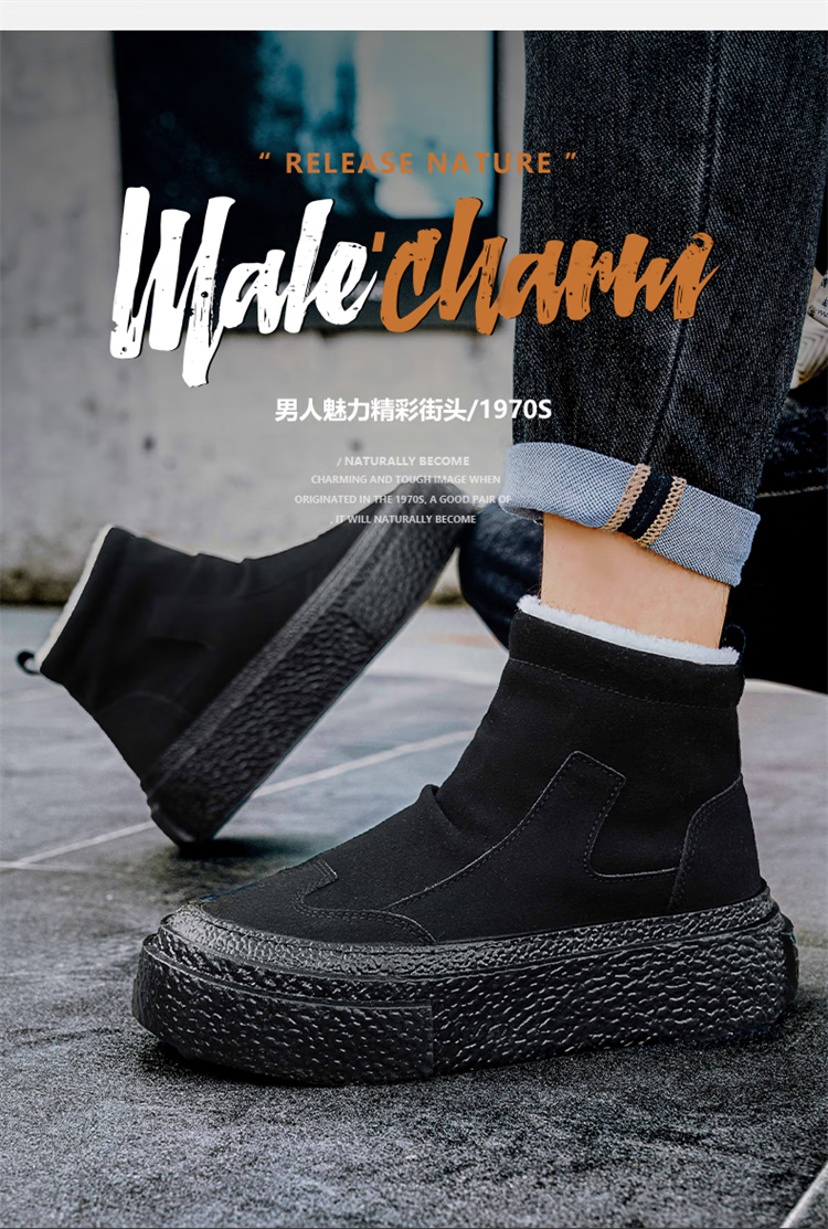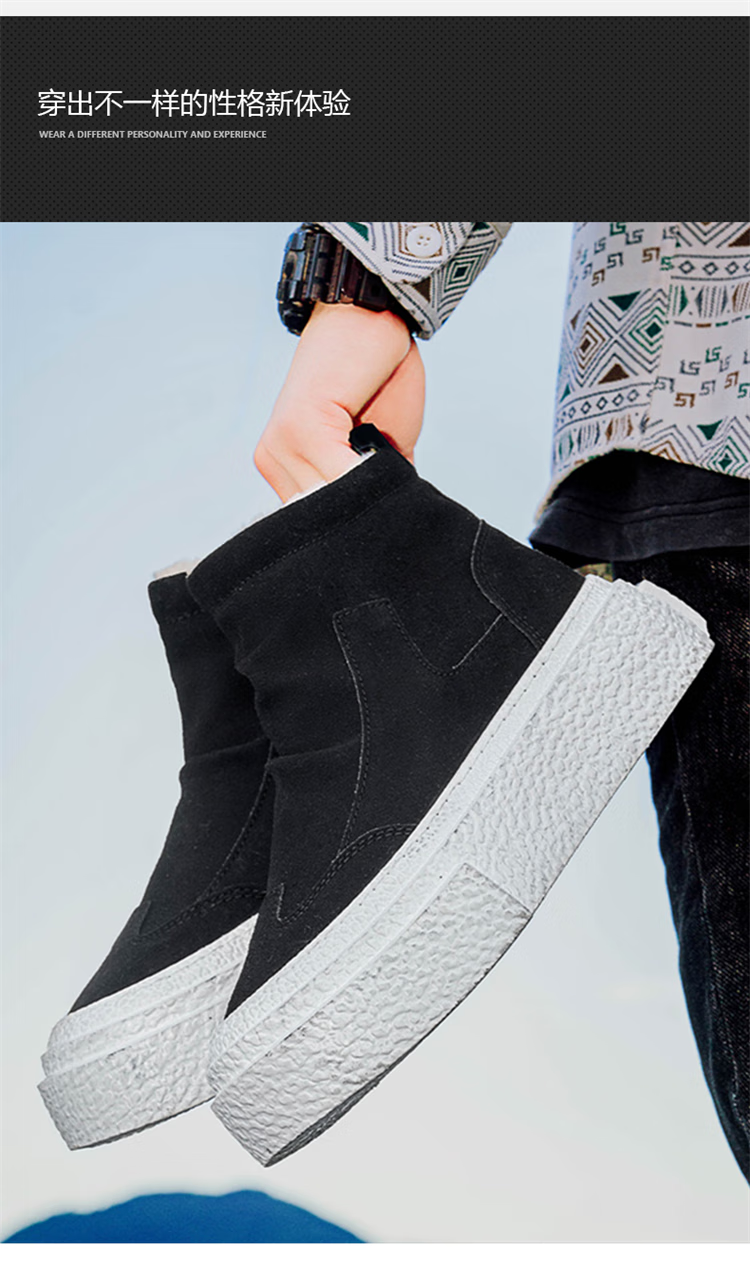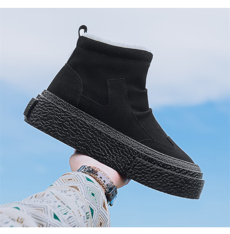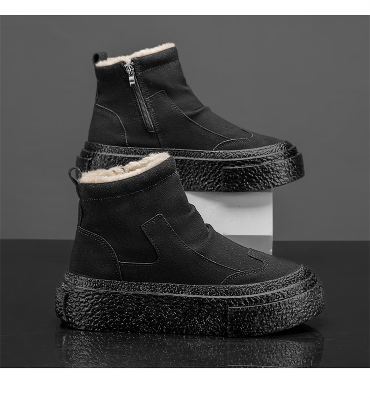 稻草人(MEXICAN)雪地靴男冬季2026新款加绒加厚保暖东北户外皮毛一体防寒面包棉鞋 全黑|升级款 39