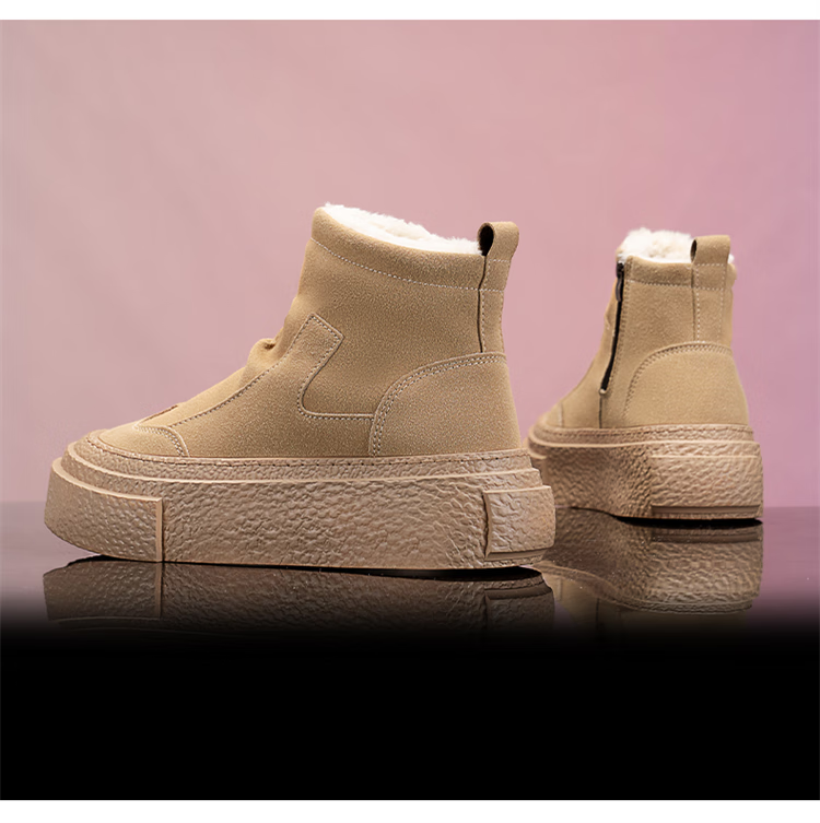 星期六真皮厚底雪地靴女款2025新款冬季加绒保暖毛毛棉鞋厚底防寒棉短靴 驼色 【加绒加厚】跟高3cm 38