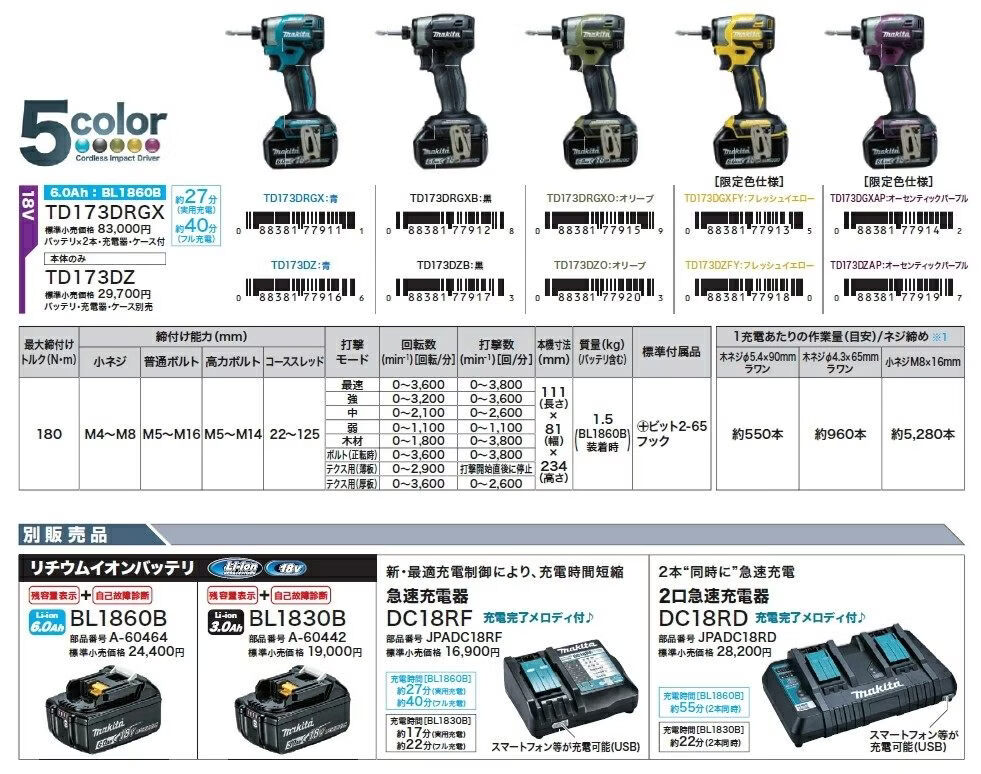 MAKITA牧田DTD173起子机20周年限定款18V锂电无刷大扭矩电钻螺丝刀 DTD173ZPR赤焰红 裸机
