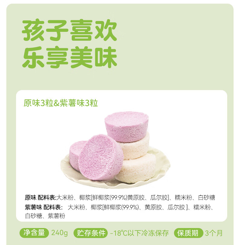 佑儿圆大米绵绵糕240g蓝莓味孩子早餐零食6粒装 独立无麸质生产线 原味3*+紫薯味*3(6粒装)