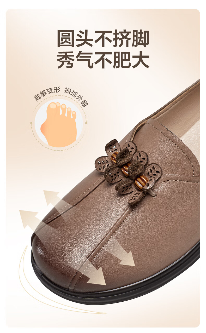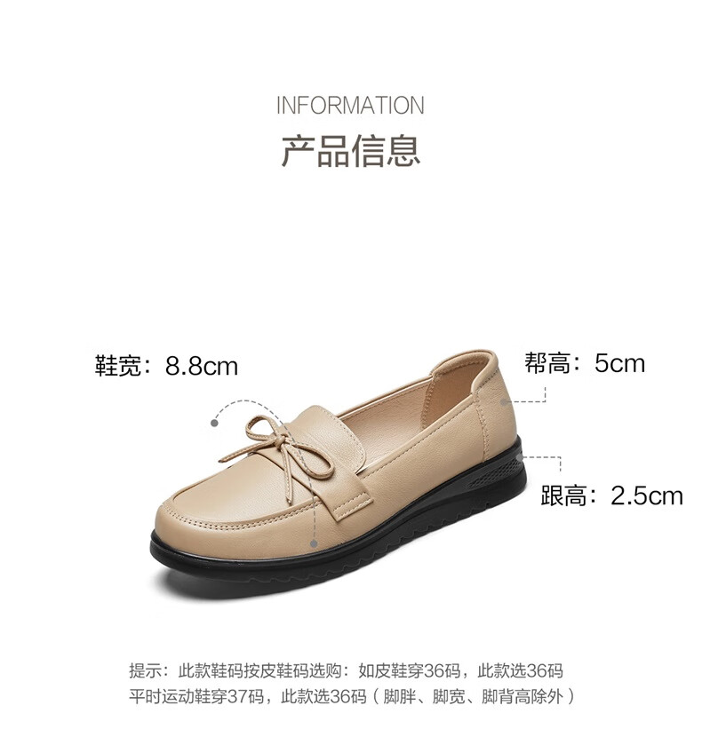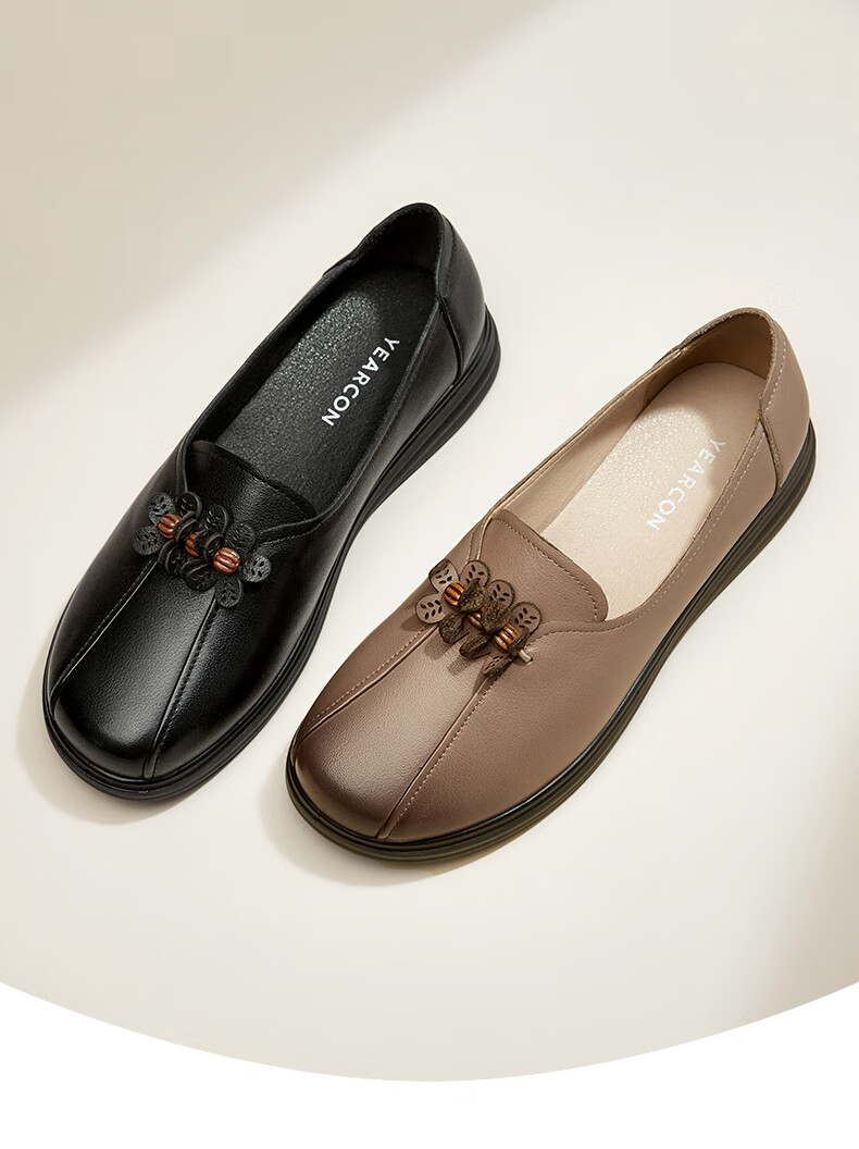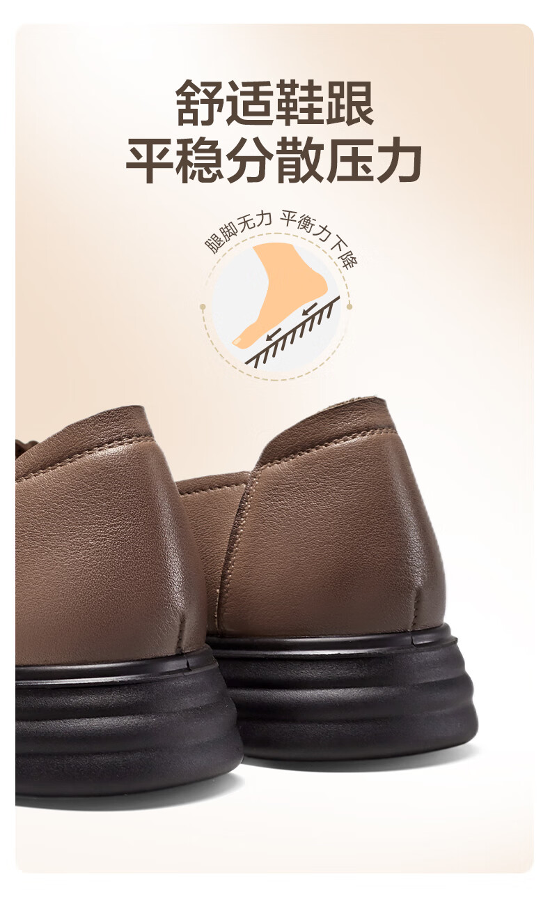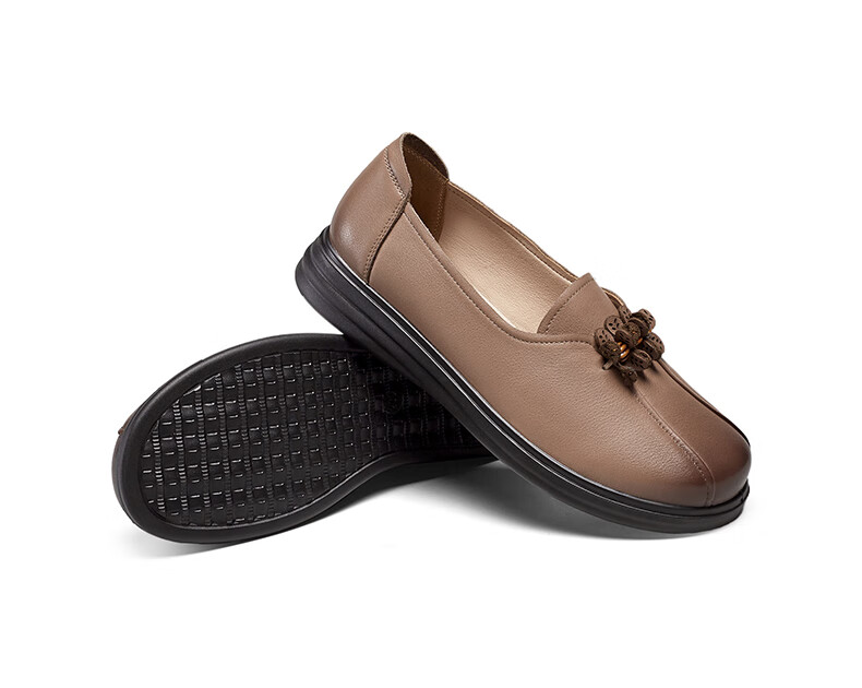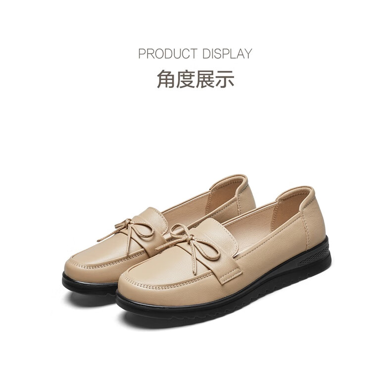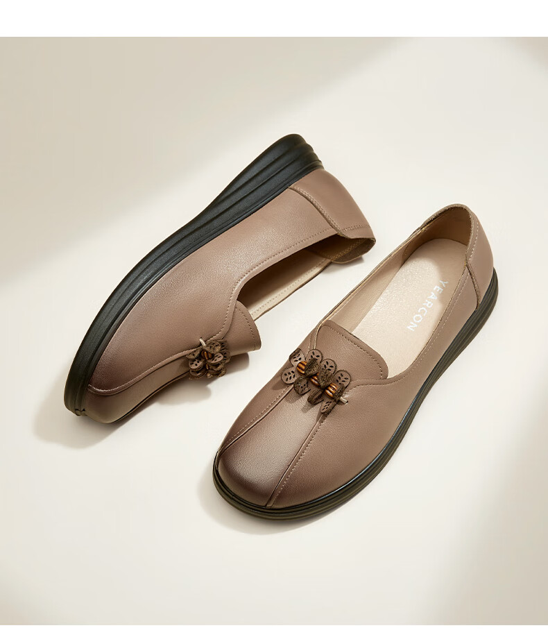 意尔康皮鞋女套脚中年妈妈鞋单鞋软底豆豆鞋女 29383W 豆沙 36