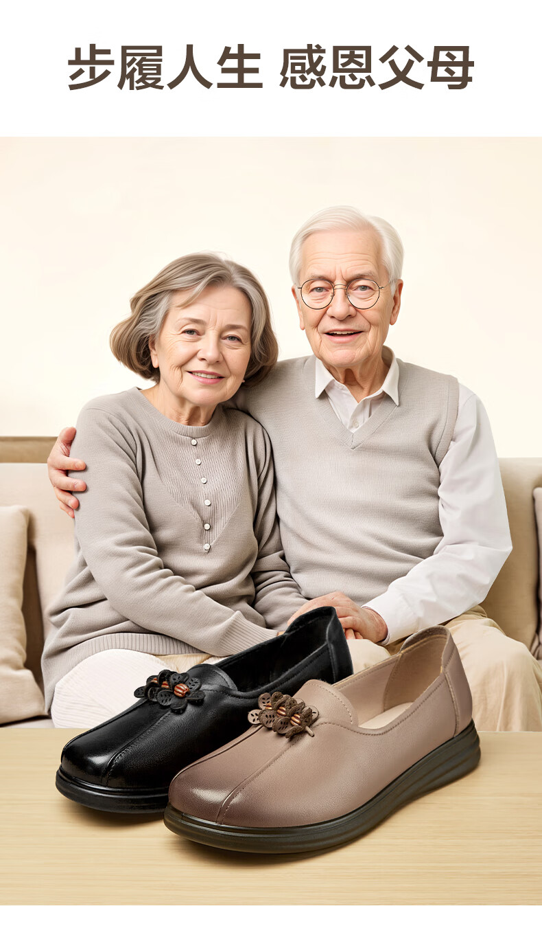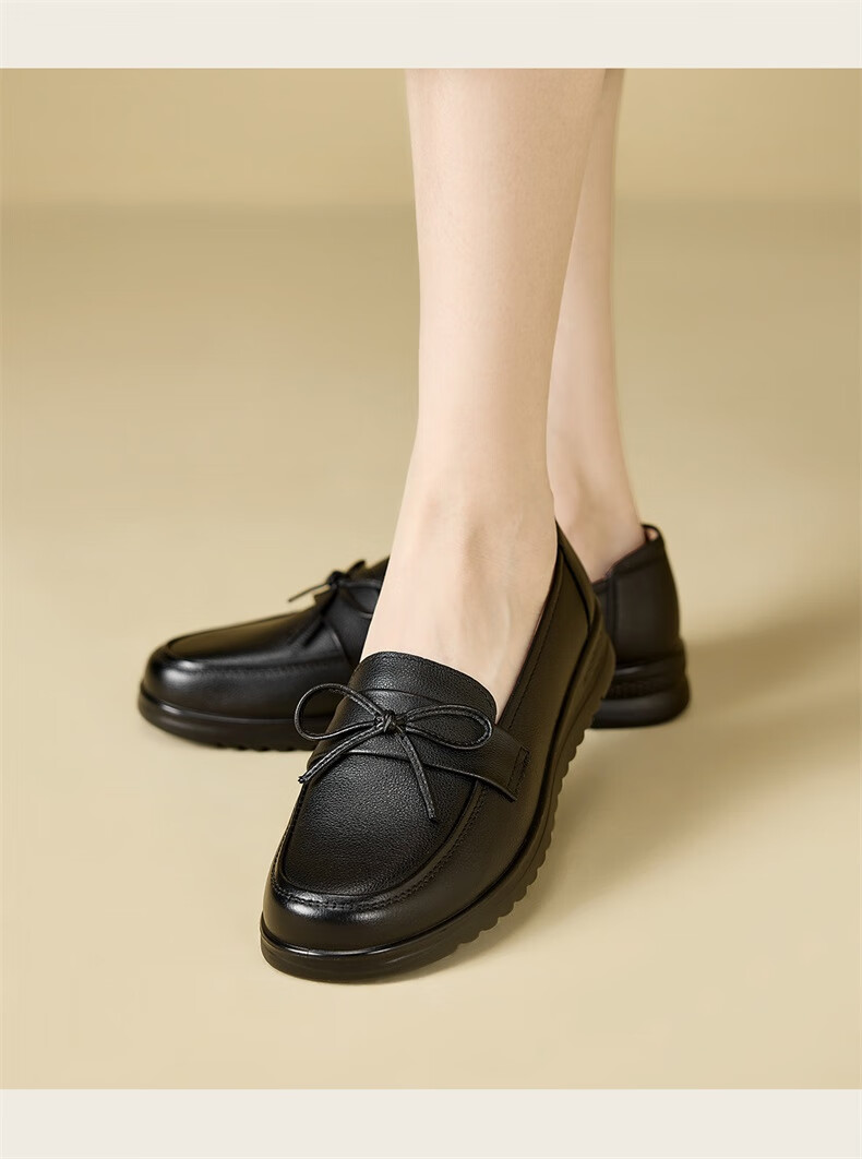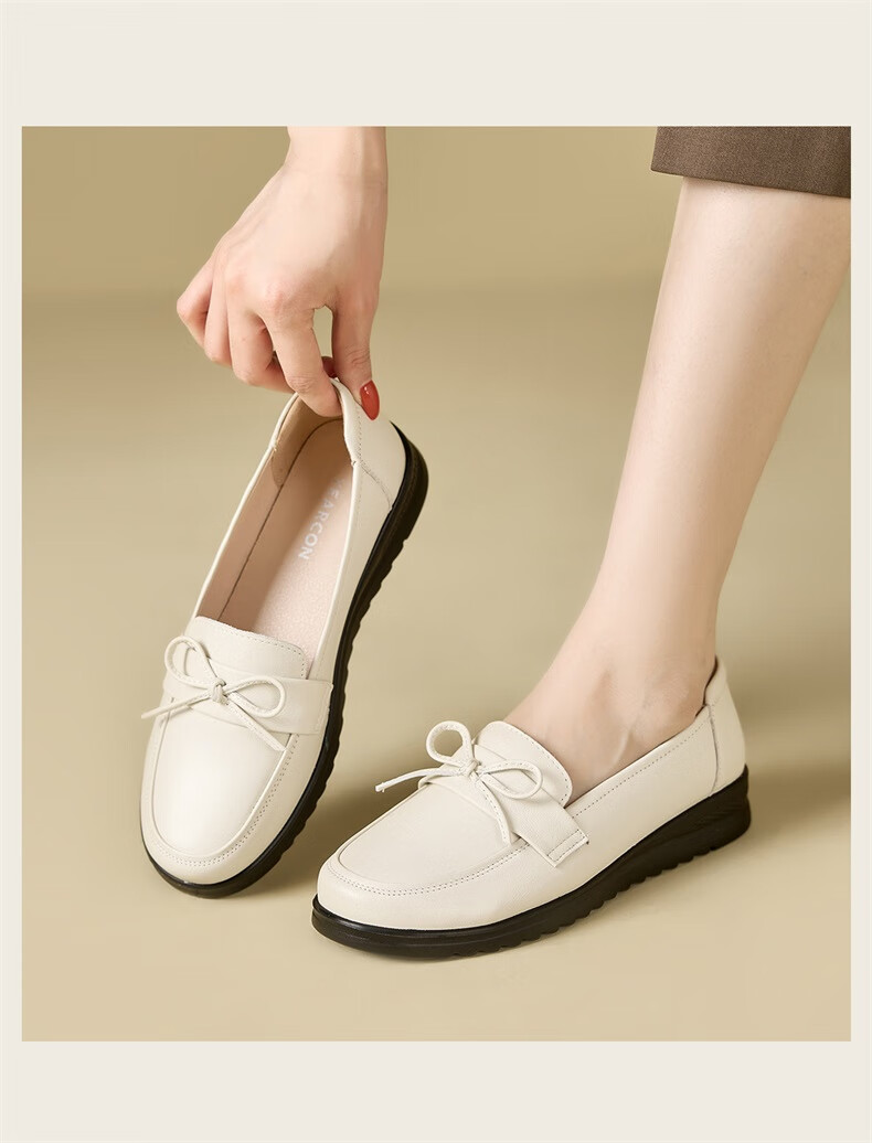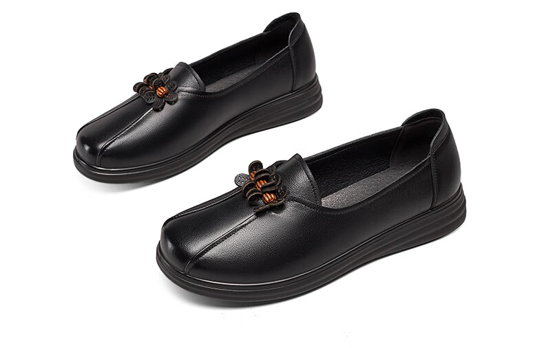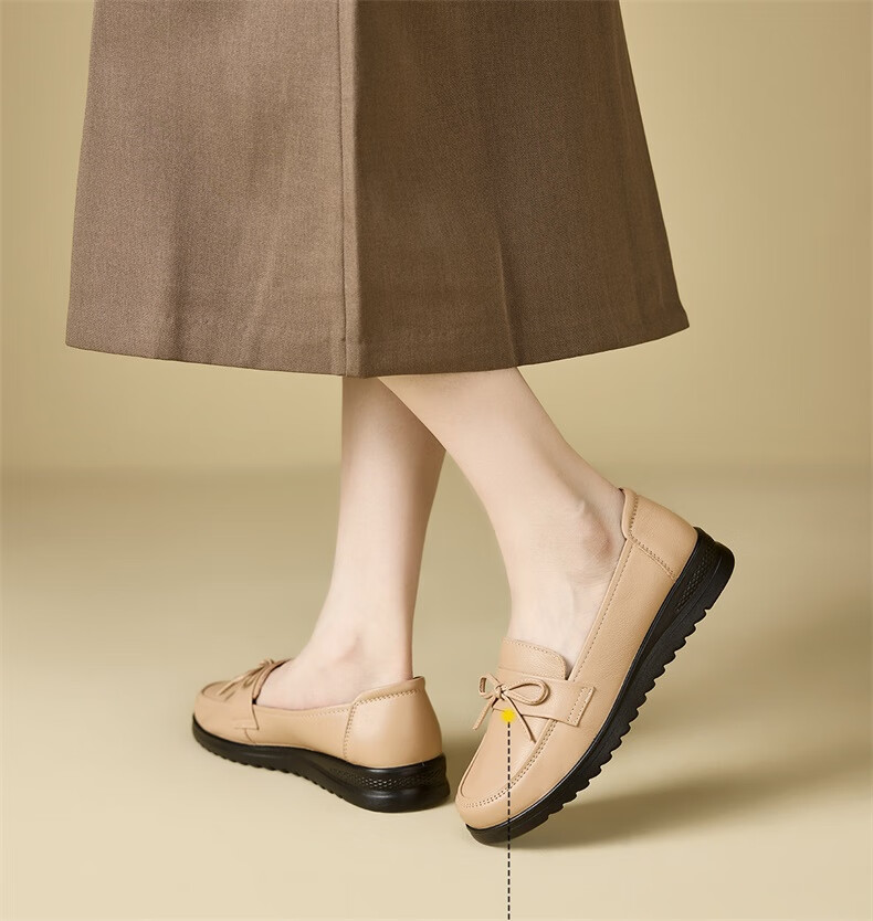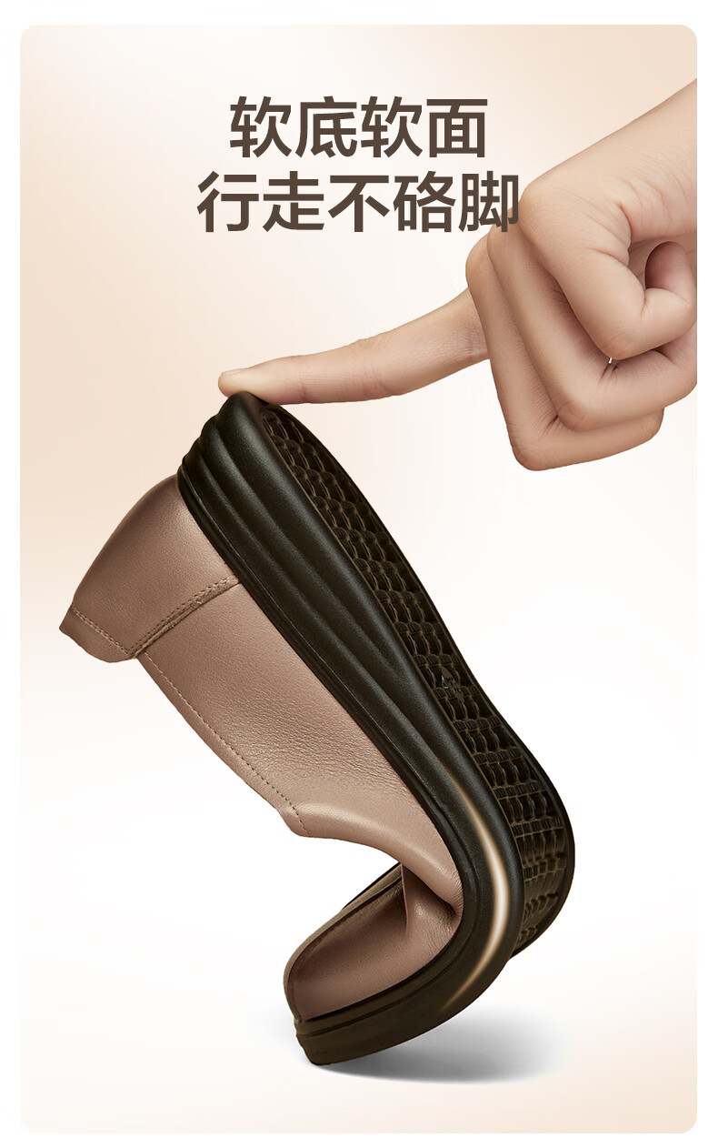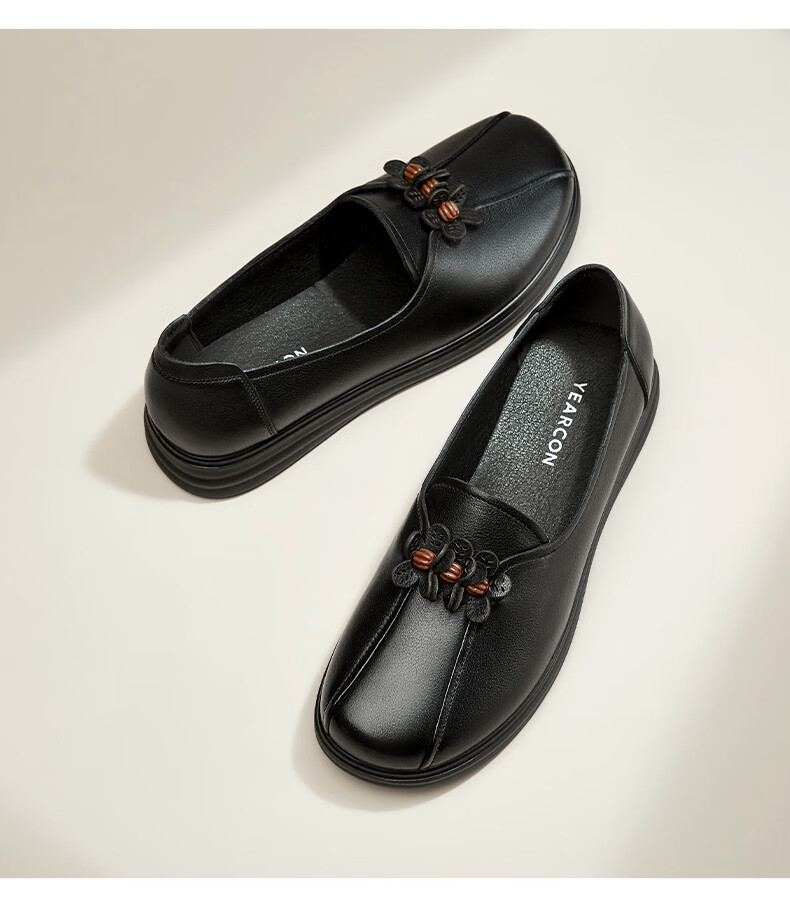 意尔康皮鞋女套脚中年妈妈鞋单鞋软底豆豆鞋女 29383W 豆沙 36