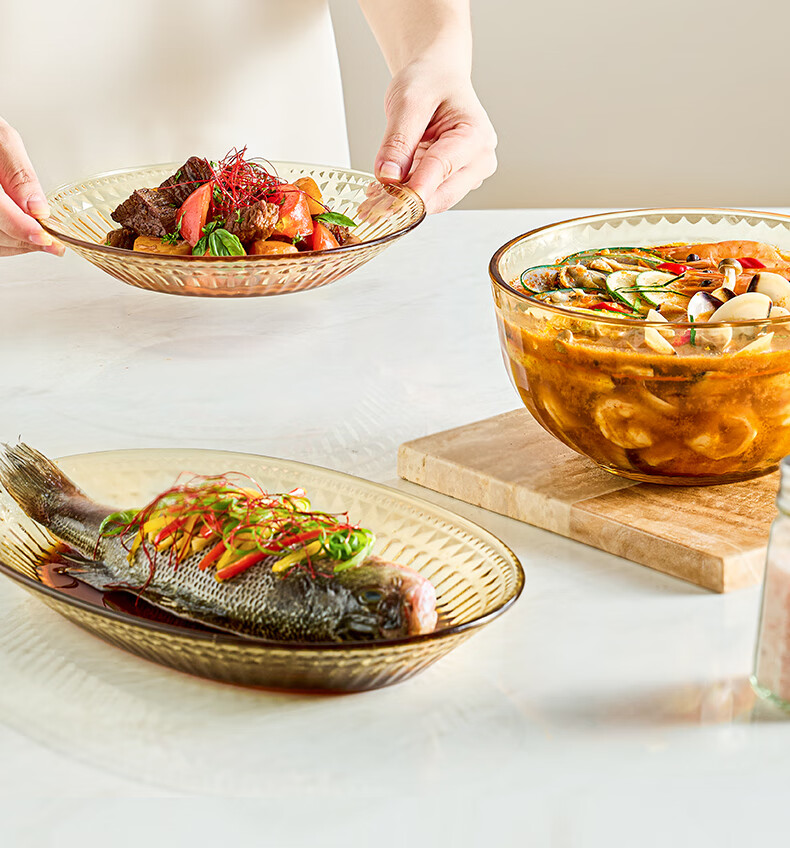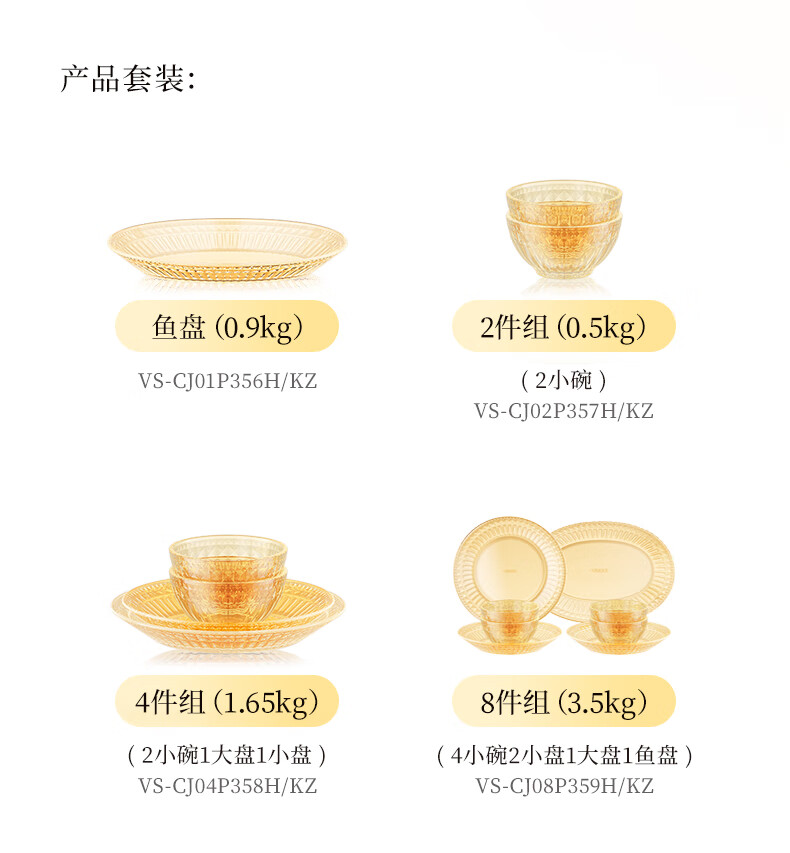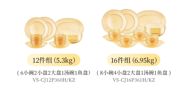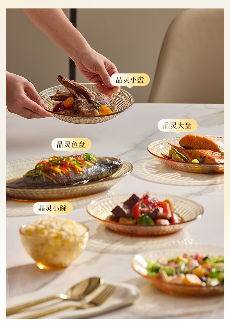 康宁(VISIONS)康宁8人食晶灵餐具8小碗4大盘2小盘1汤碗1鱼盘高硼硅耐热玻璃
