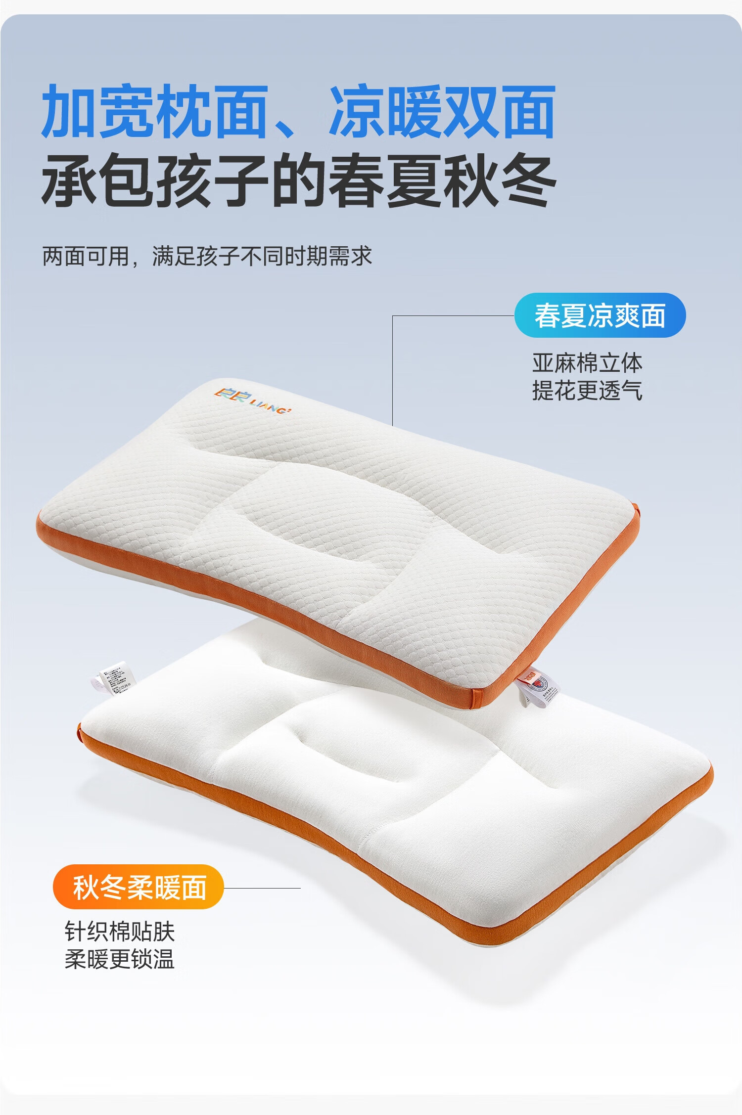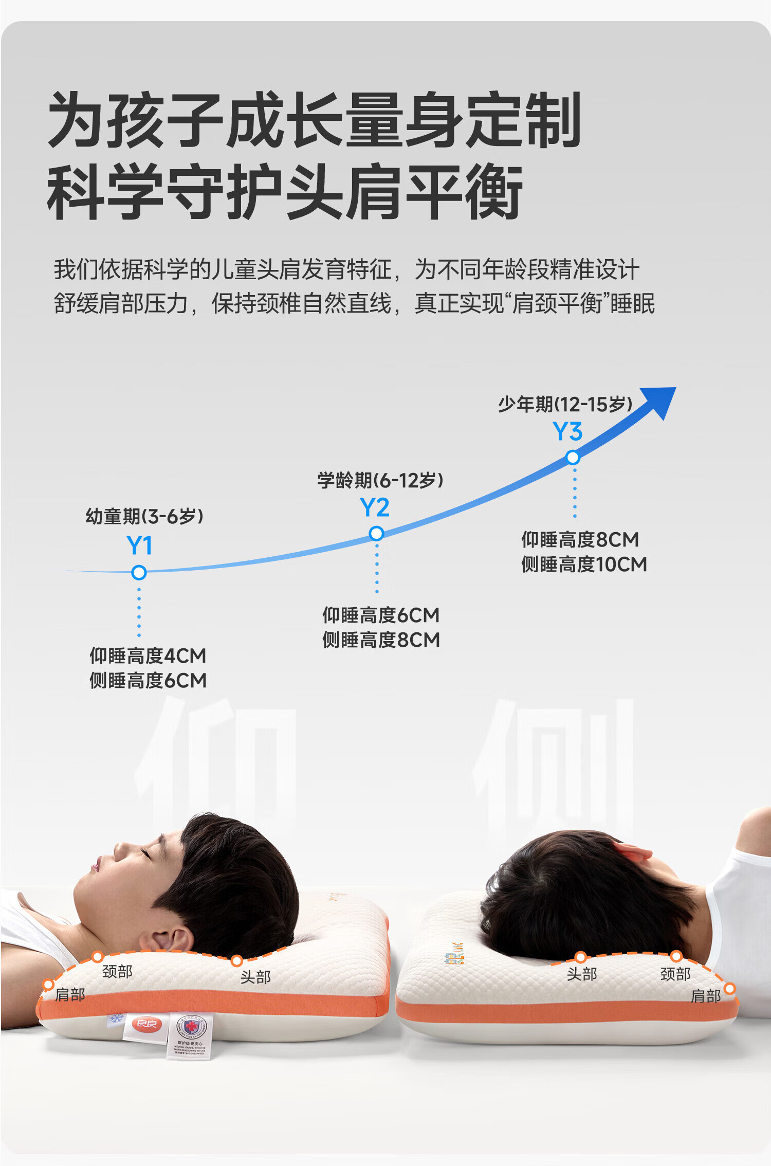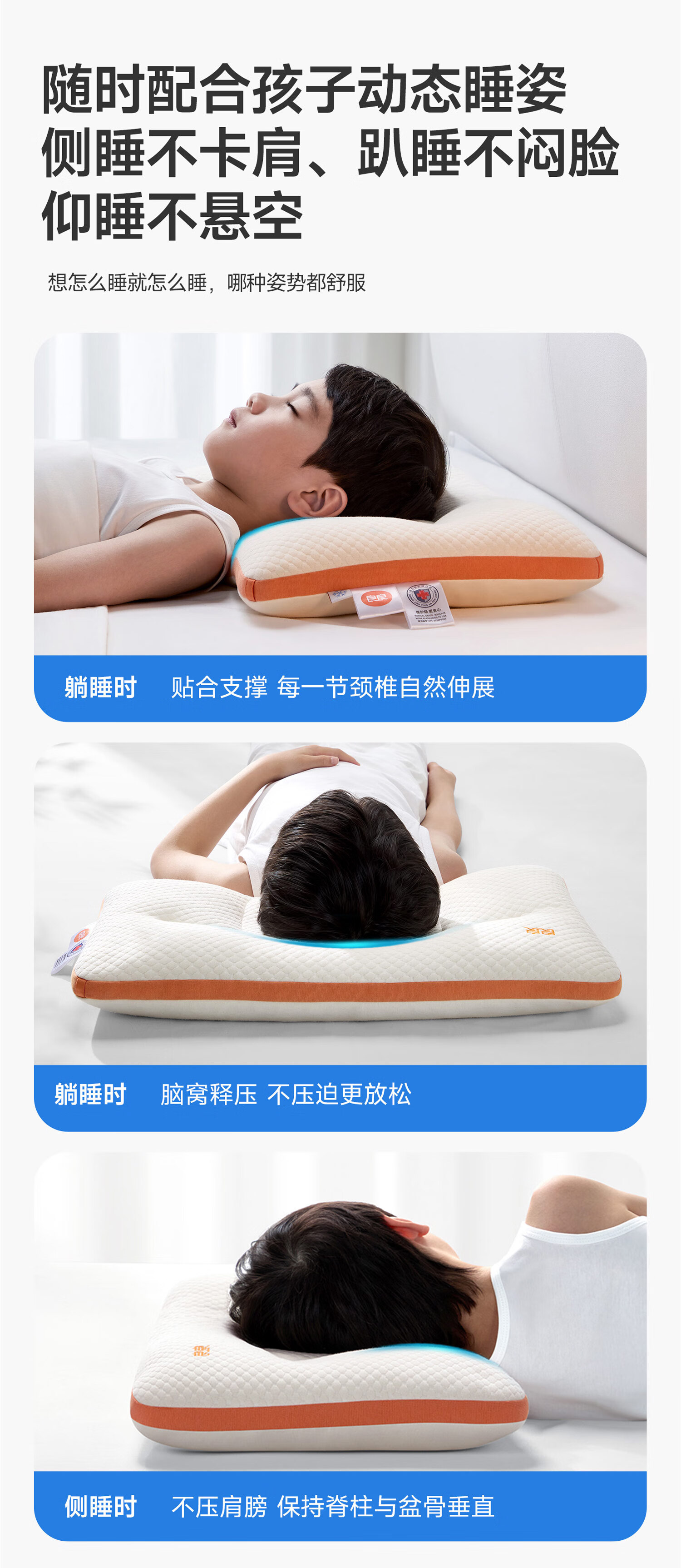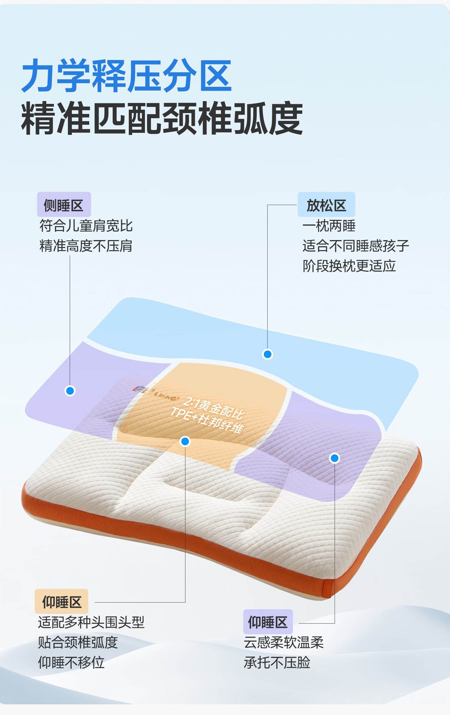 良良儿童枕头6-12岁护颈椎学生枕头四季通用可水洗 65*40cm