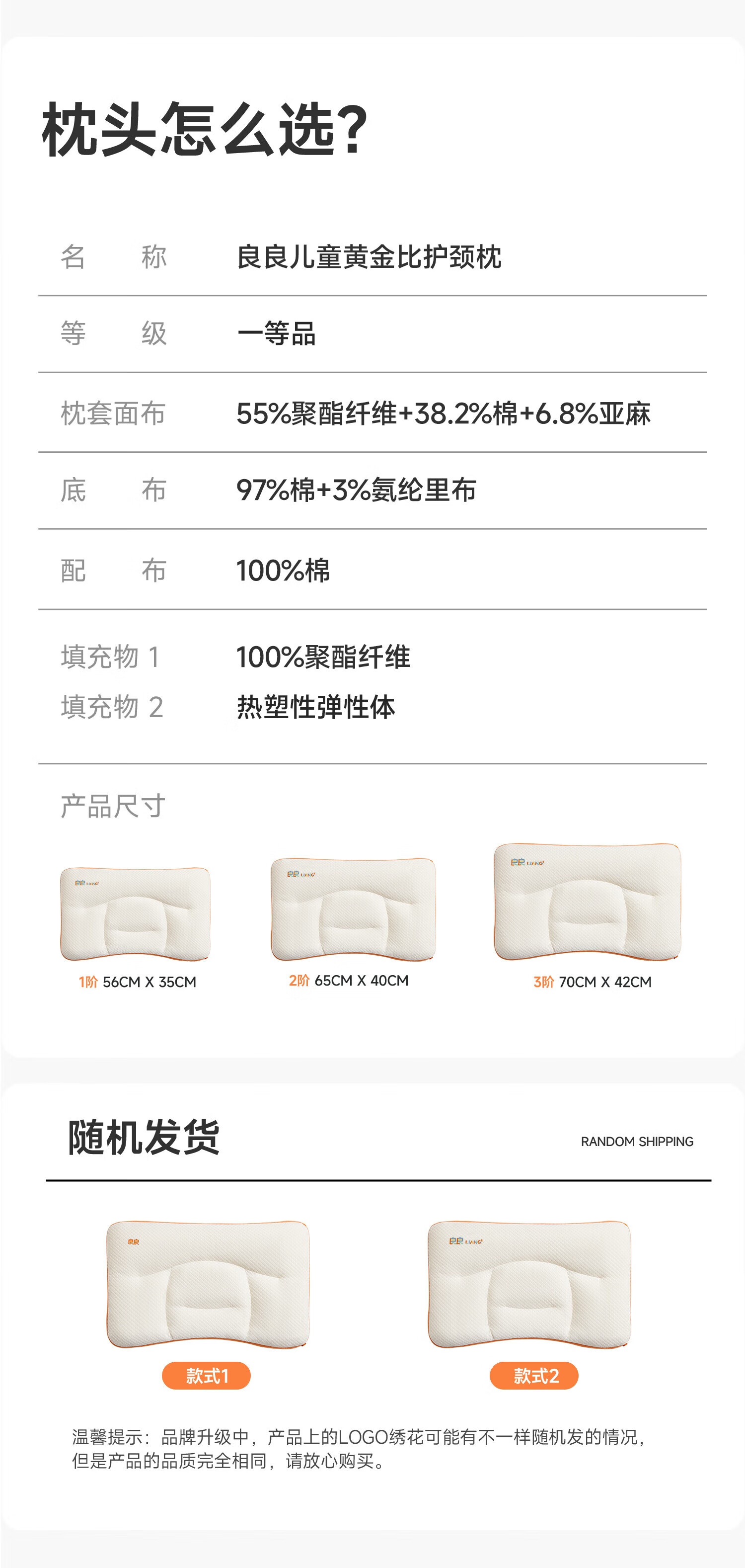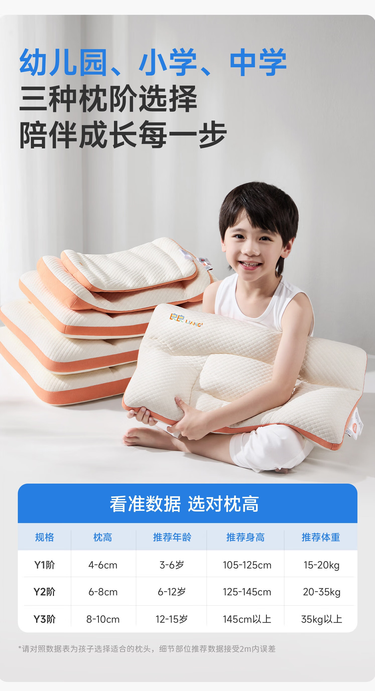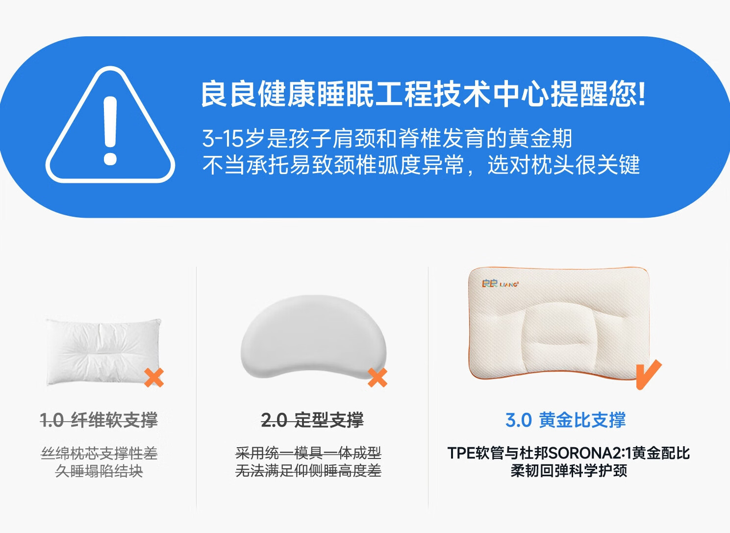 良良儿童枕头6-12岁护颈椎学生枕头四季通用可水洗 65*40cm