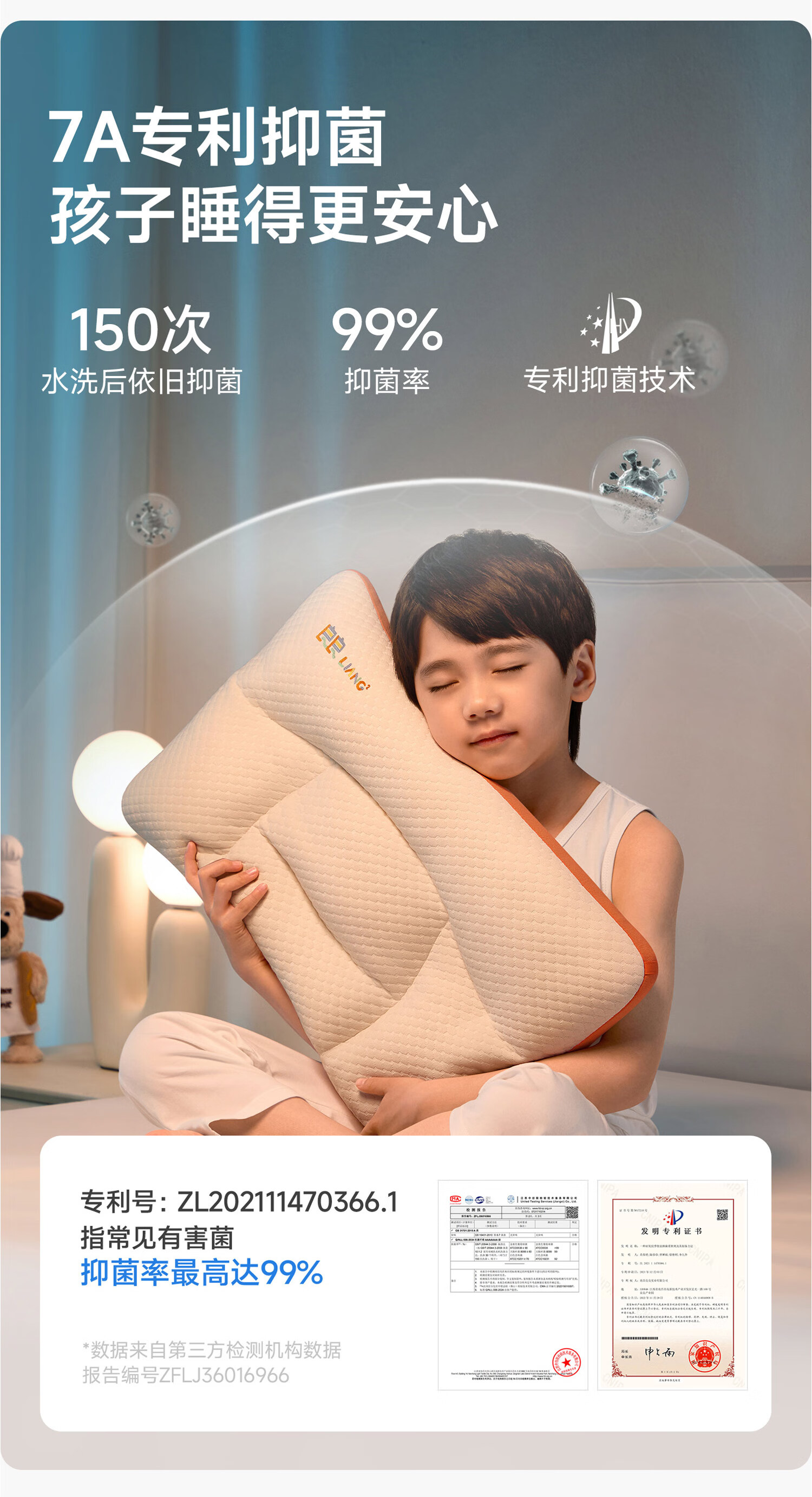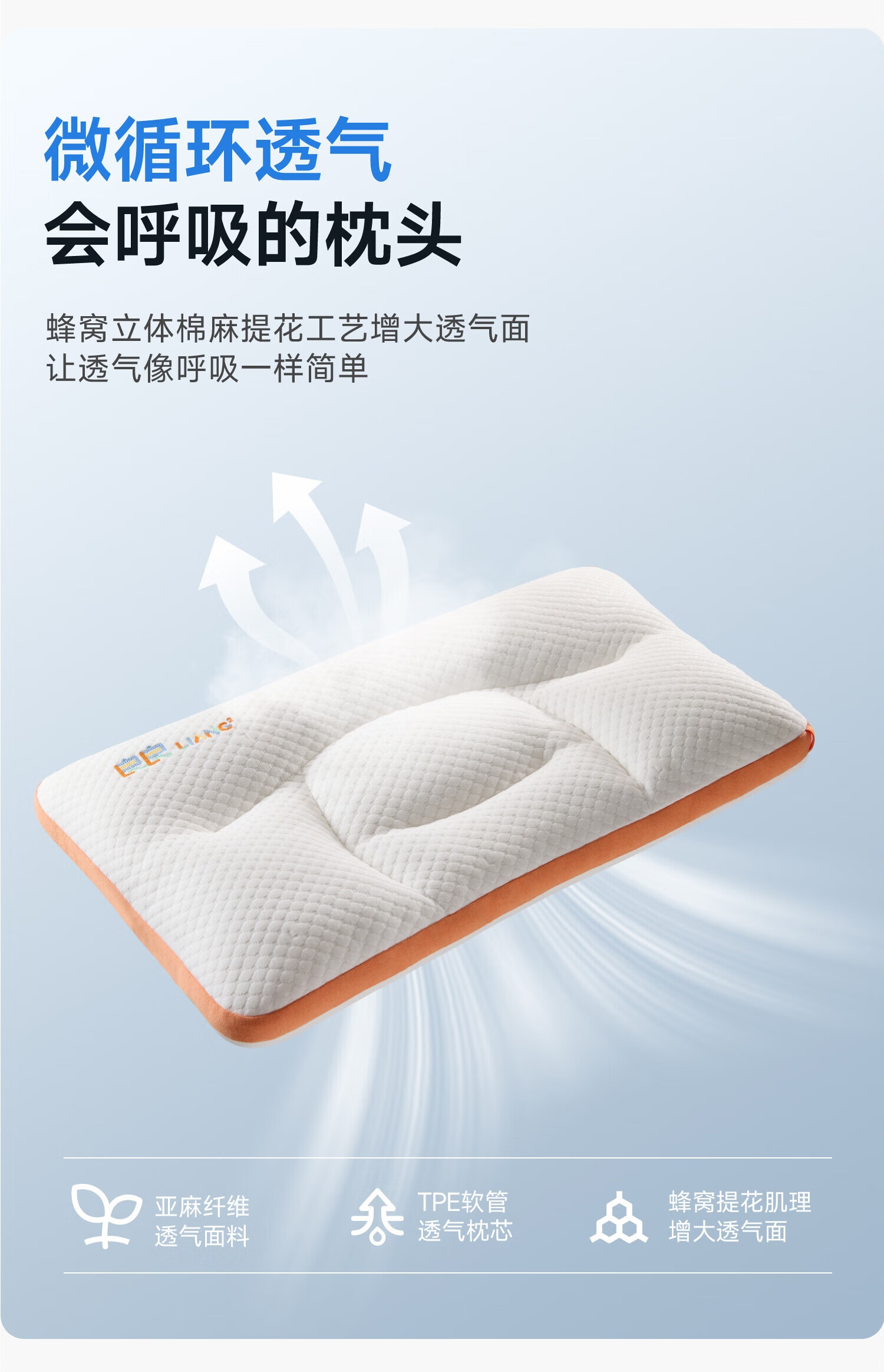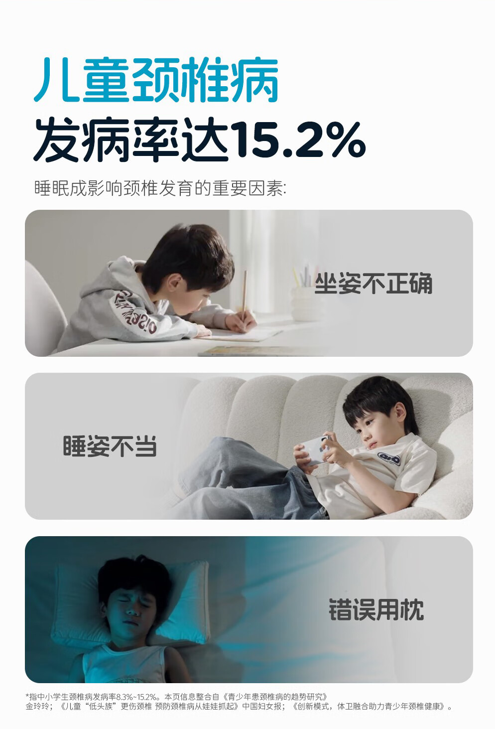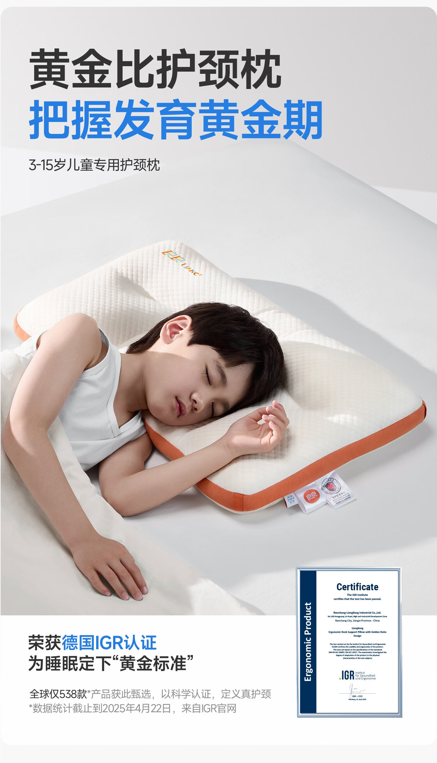 良良儿童枕头6-12岁护颈椎学生枕头四季通用可水洗 65*40cm