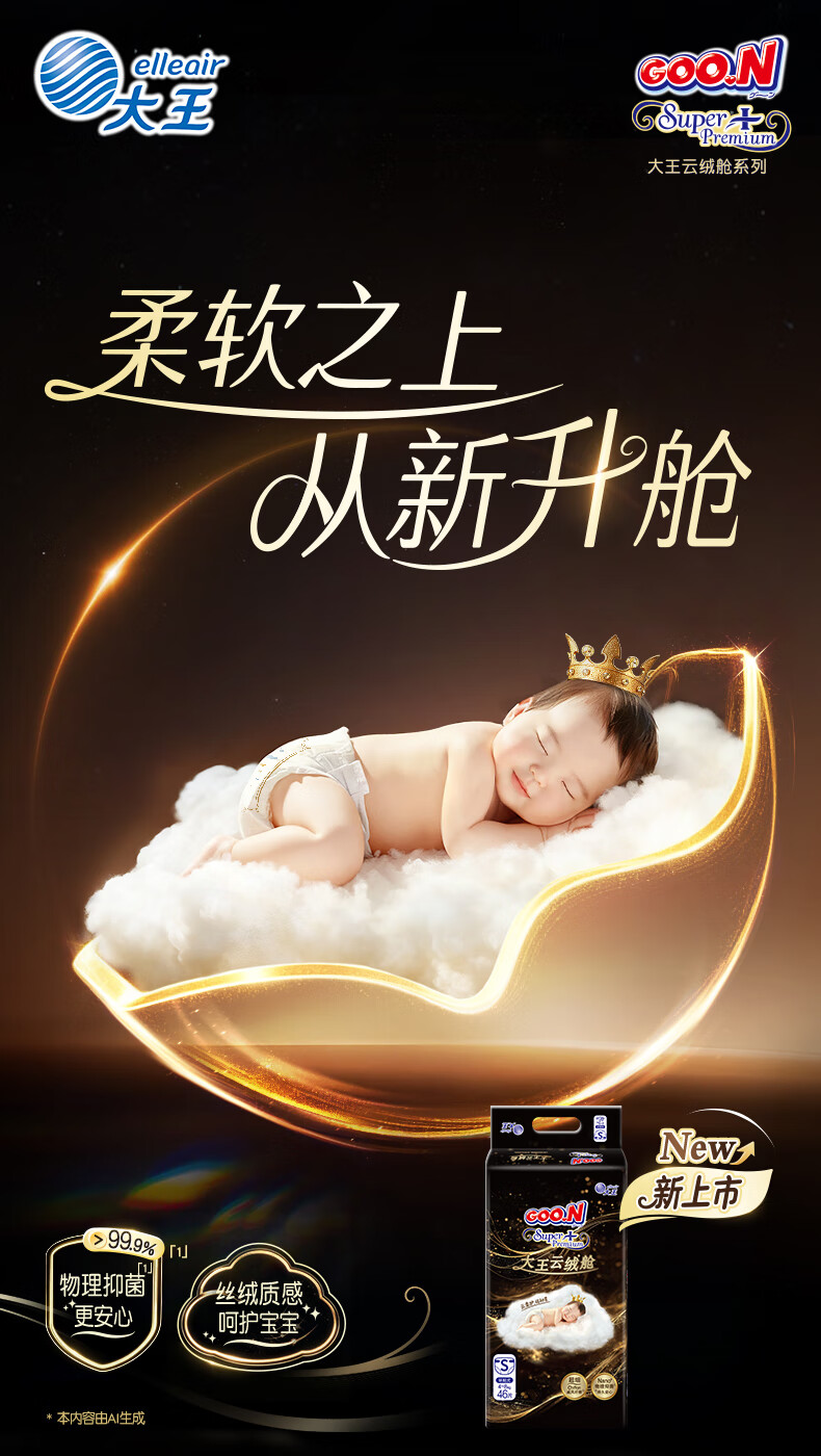 大王(GOO.N)云绒舱纸尿裤 NB54片(≤5kg)新生儿尿不湿 柔软抑菌