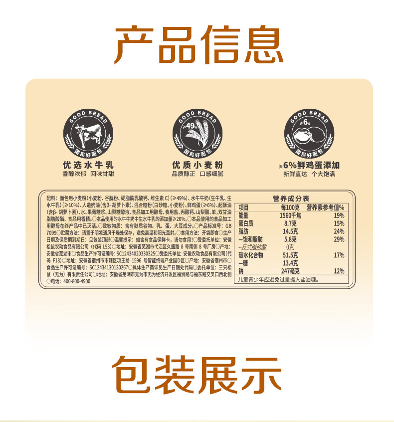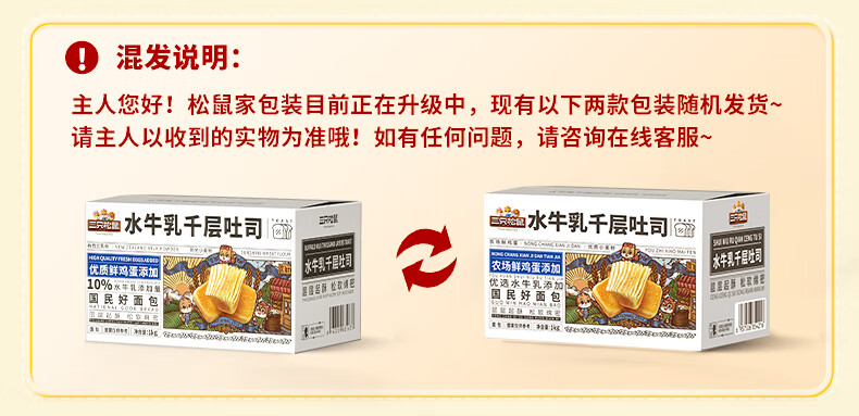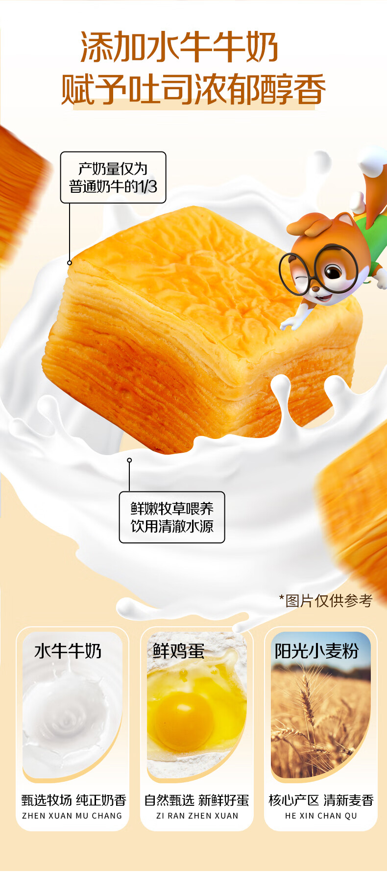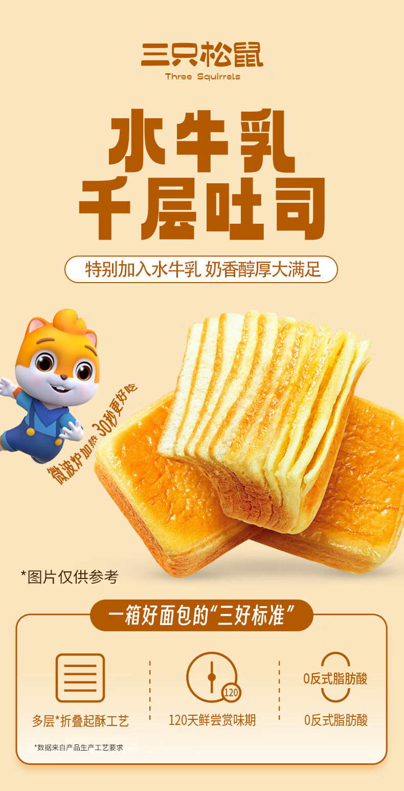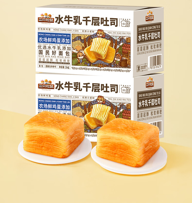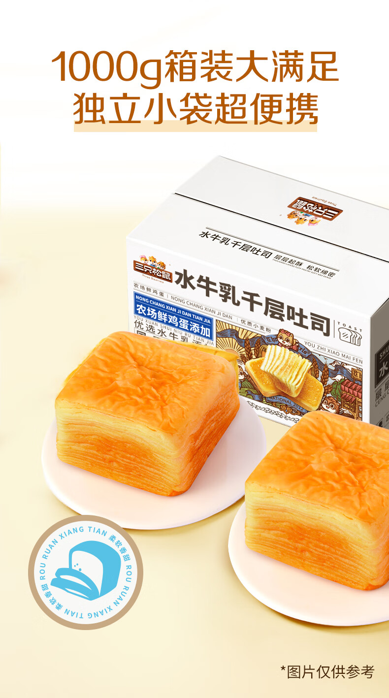 三只松鼠水牛乳千层吐司1000g 厚切面包早餐休闲零食手撕代餐饱腹点心