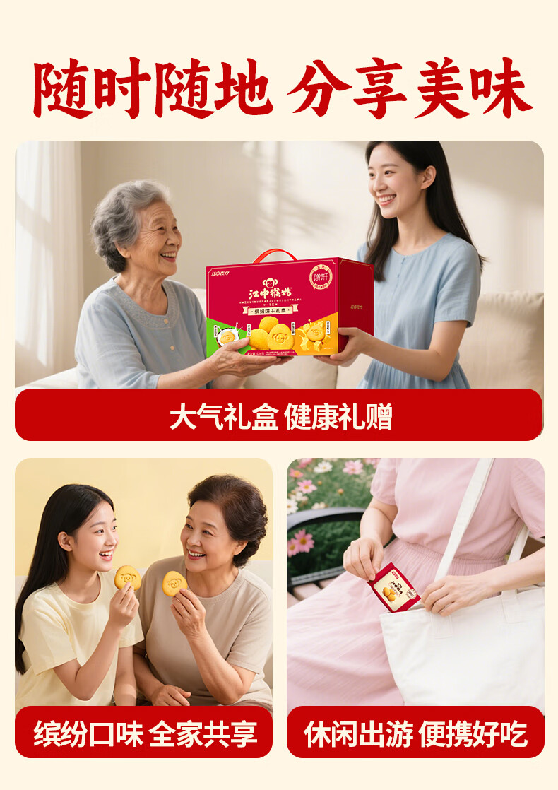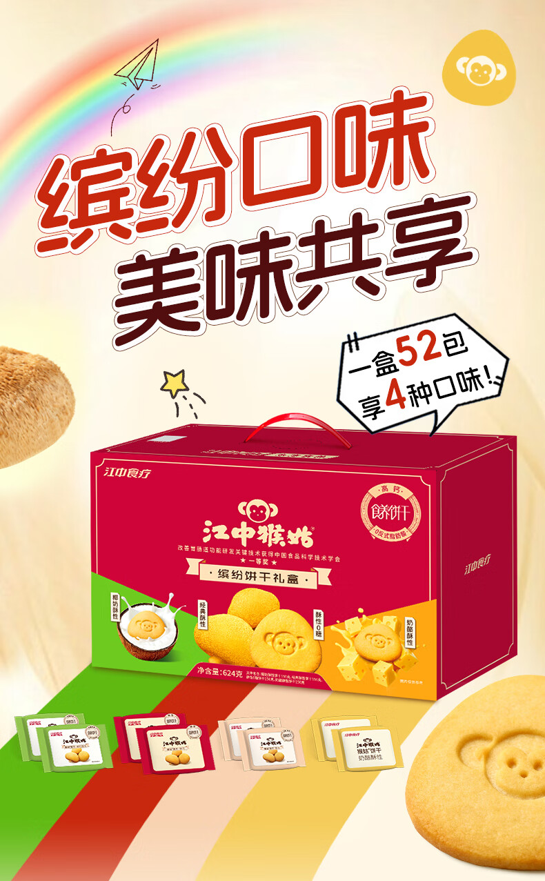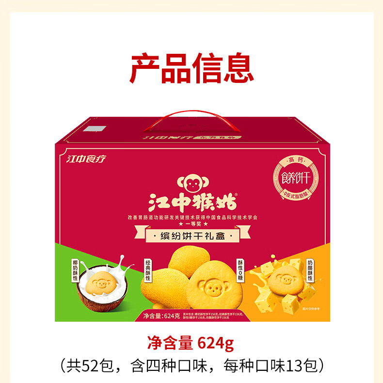 江中猴姑养胃缤纷酥性礼盒624g送礼年货礼盒营养高钙早餐休闲零食团购