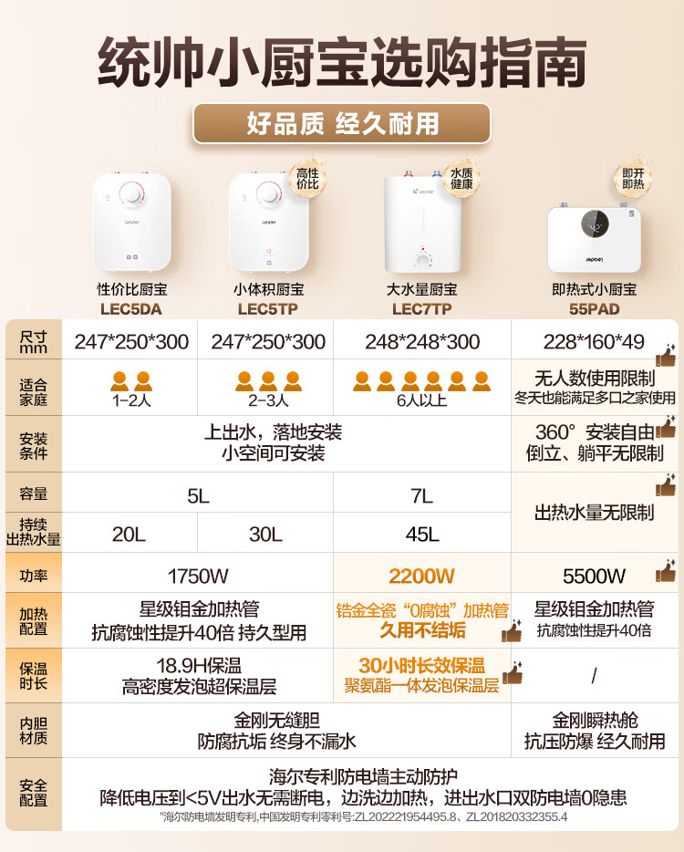 海尔出品统帅5升小厨宝台下电热水器京东自营国家补贴1750W一级能效家用厨房小型储水节能热水宝LEC5TP