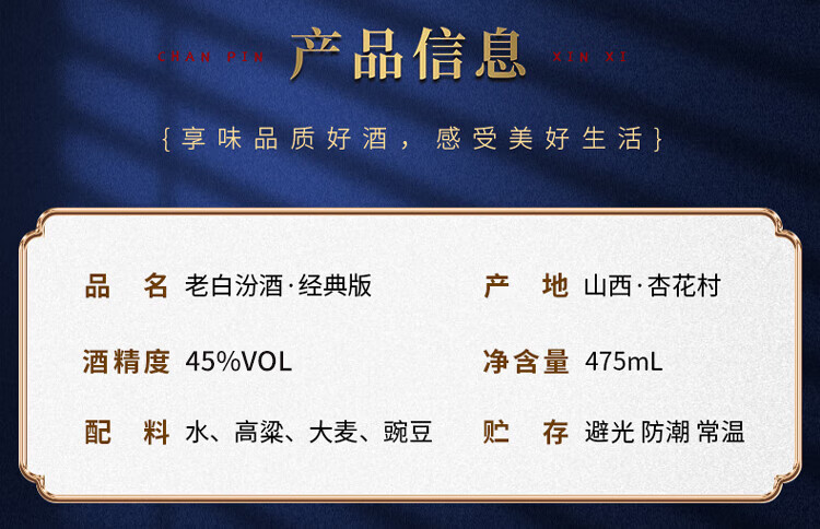 汾酒 老白汾10 清香型白酒 45度 475ml 单瓶装 宴请自饮(升级版)