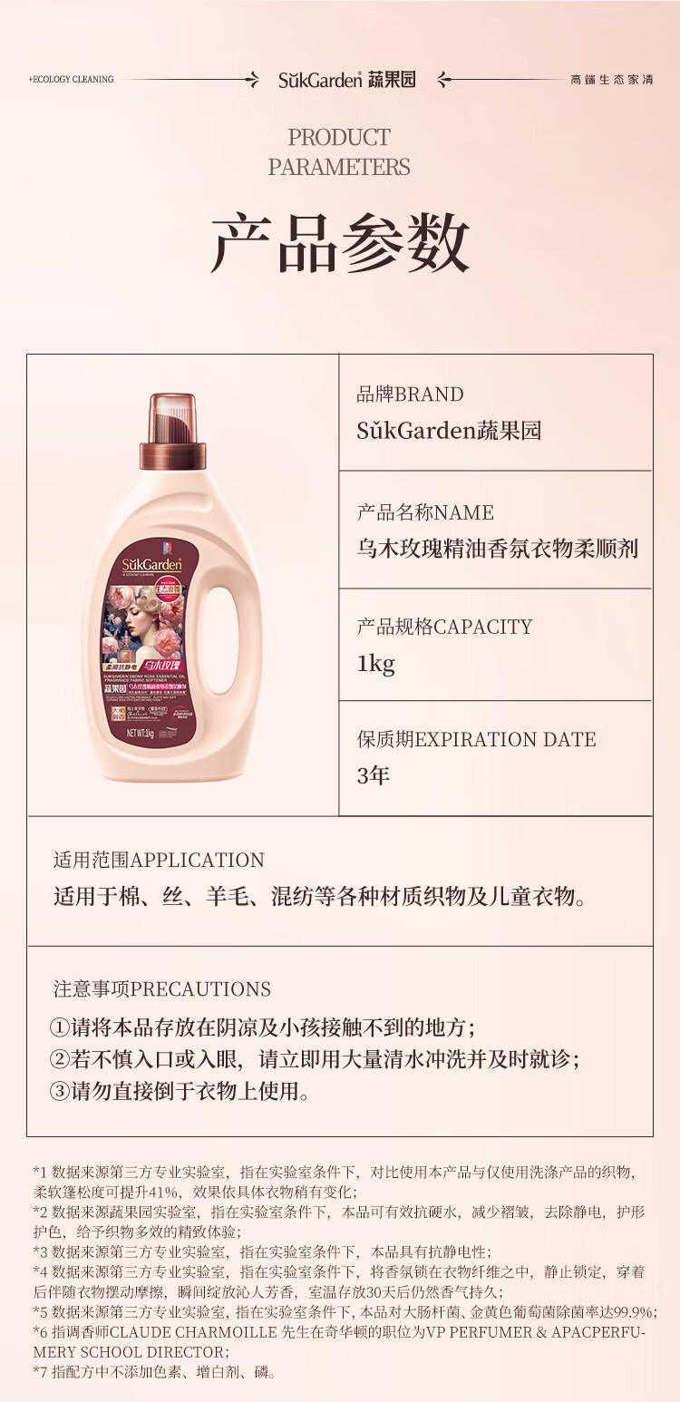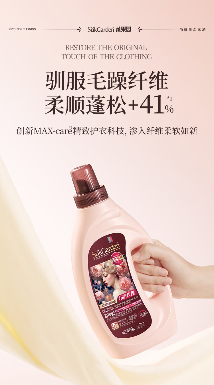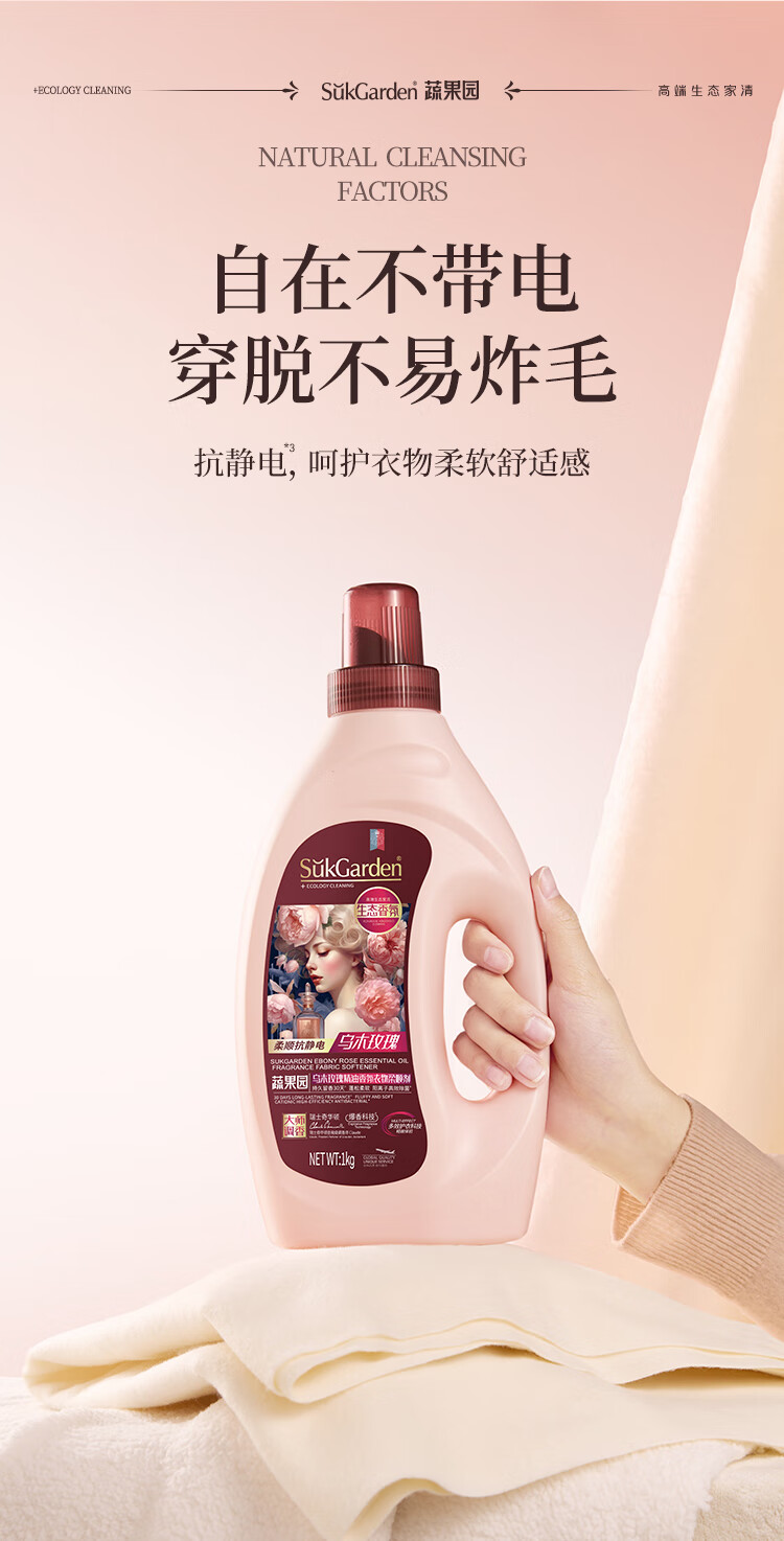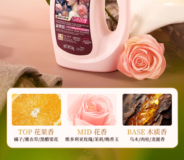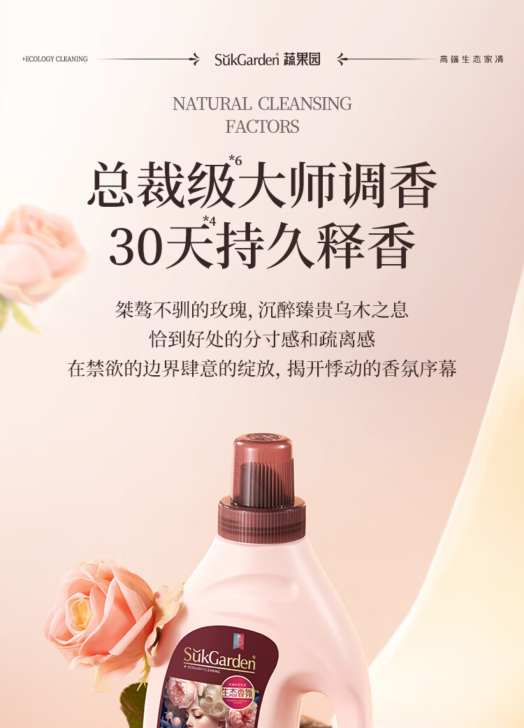 蔬果园衣物柔顺剂大师香氛柔顺护理剂乌木玫瑰2斤持久留香防静电亲肤