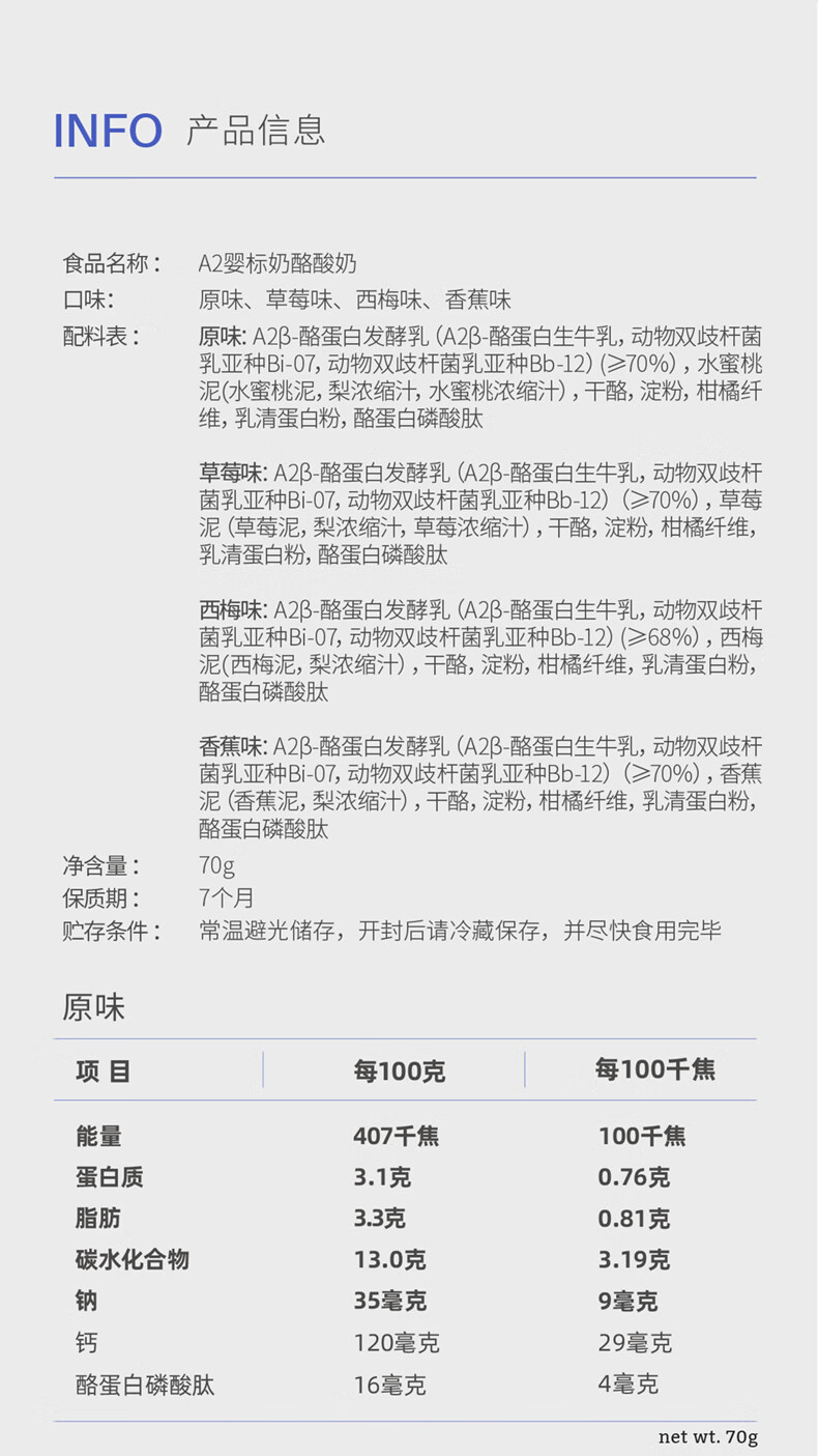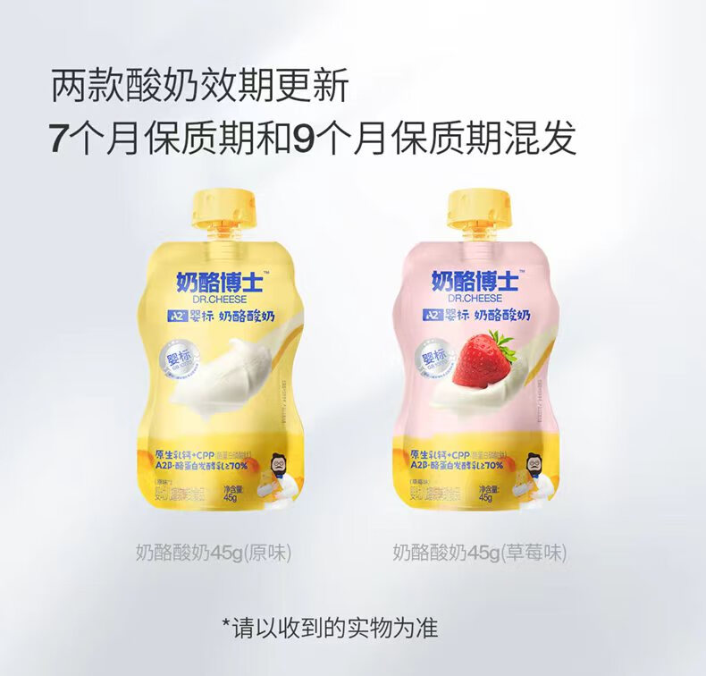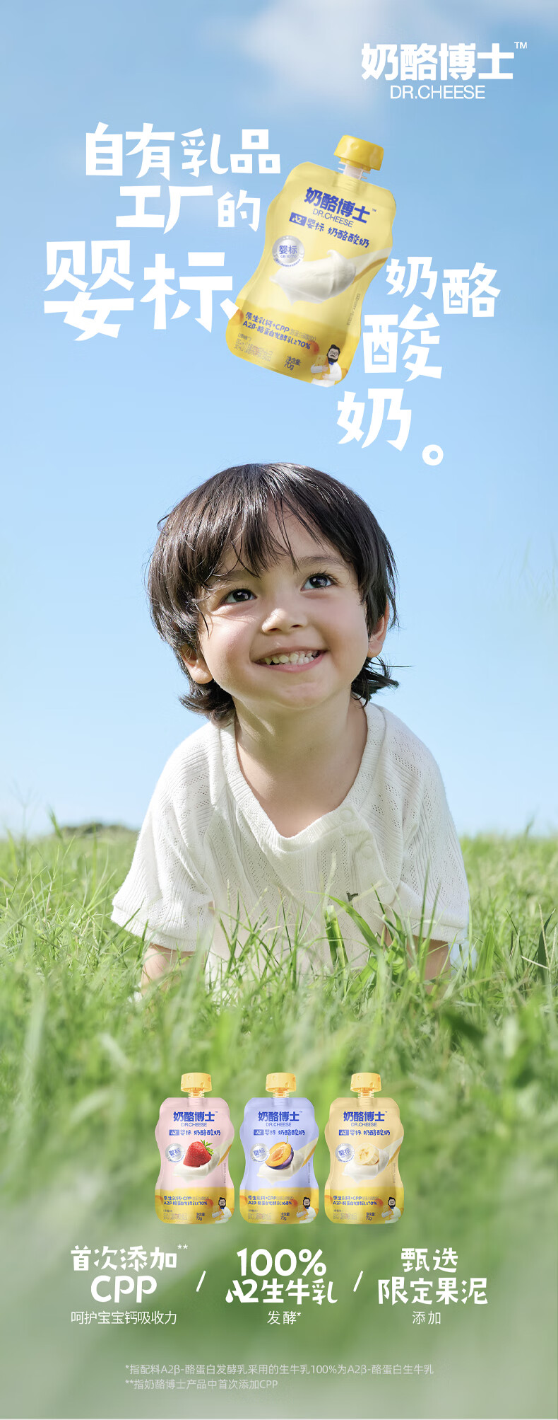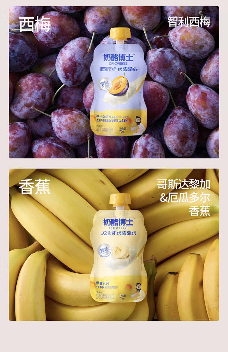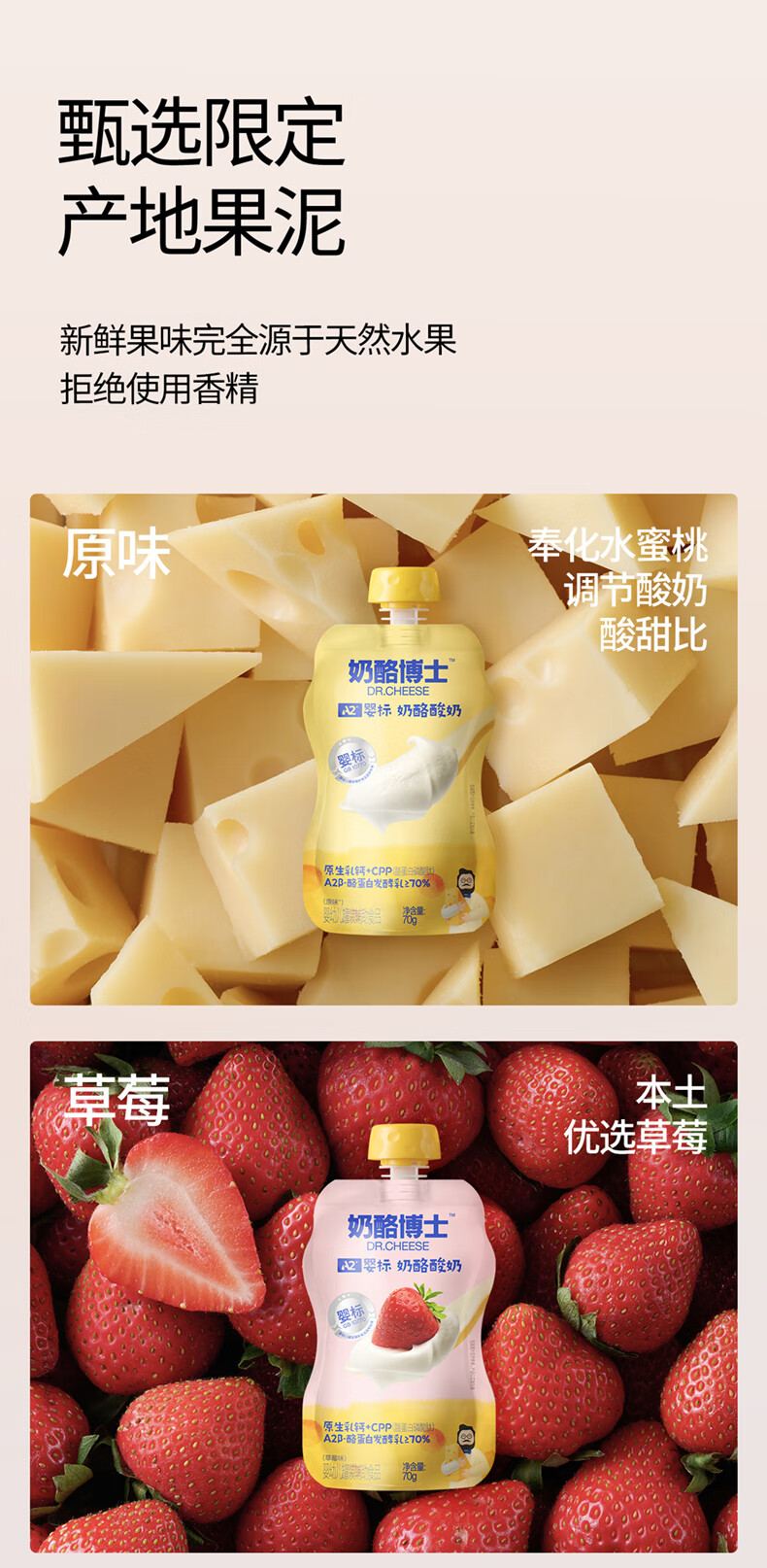 奶酪博士A2婴标奶酪宝宝酸奶0蔗糖真果泥原生营养常温 原味70g+草莓45g*2